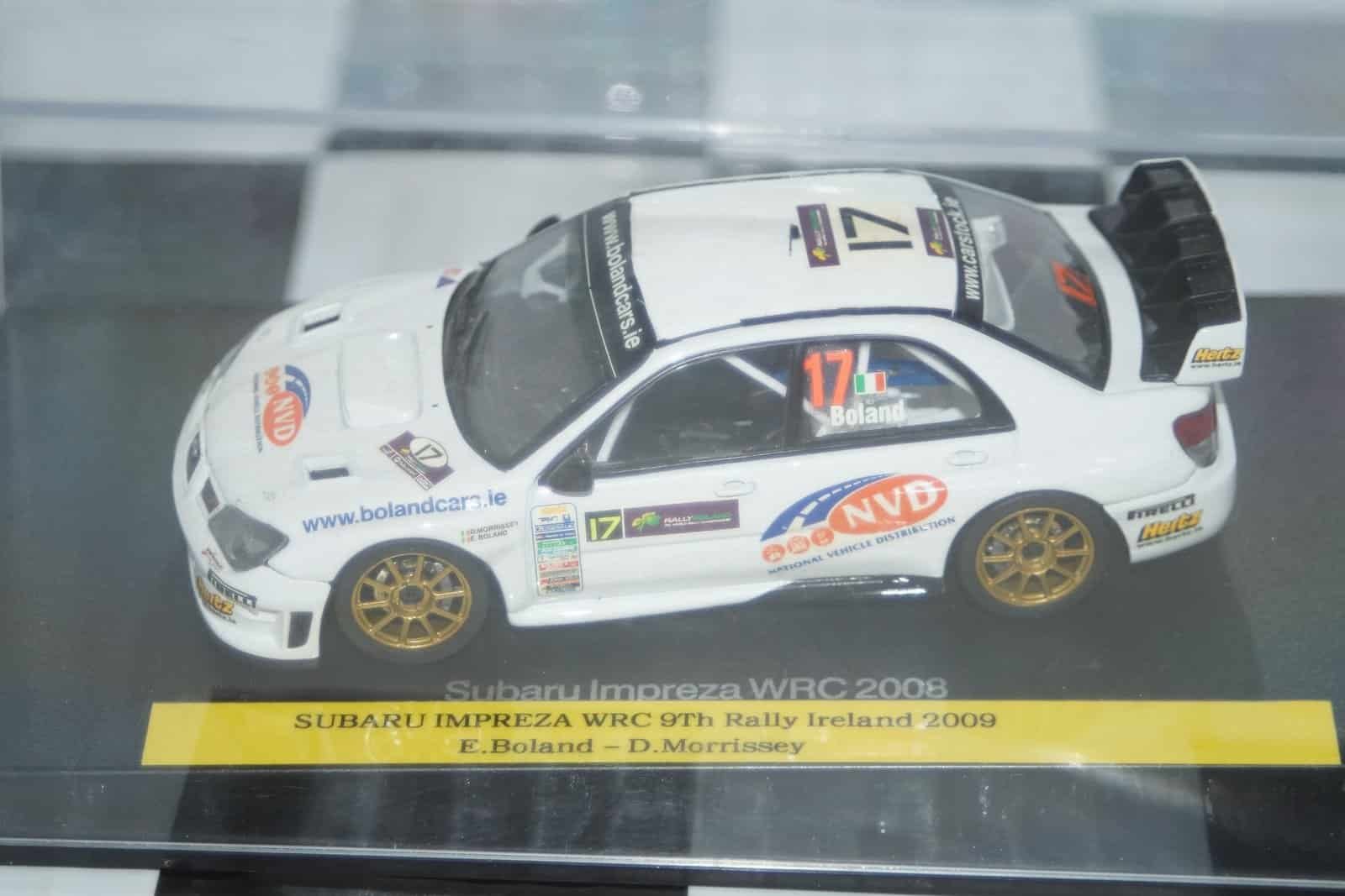 This Model Car is a collectors replica of a Subaru Impreza WRC 9th Rally Ireland Code 3 #17 2009 Boland/Morrissey