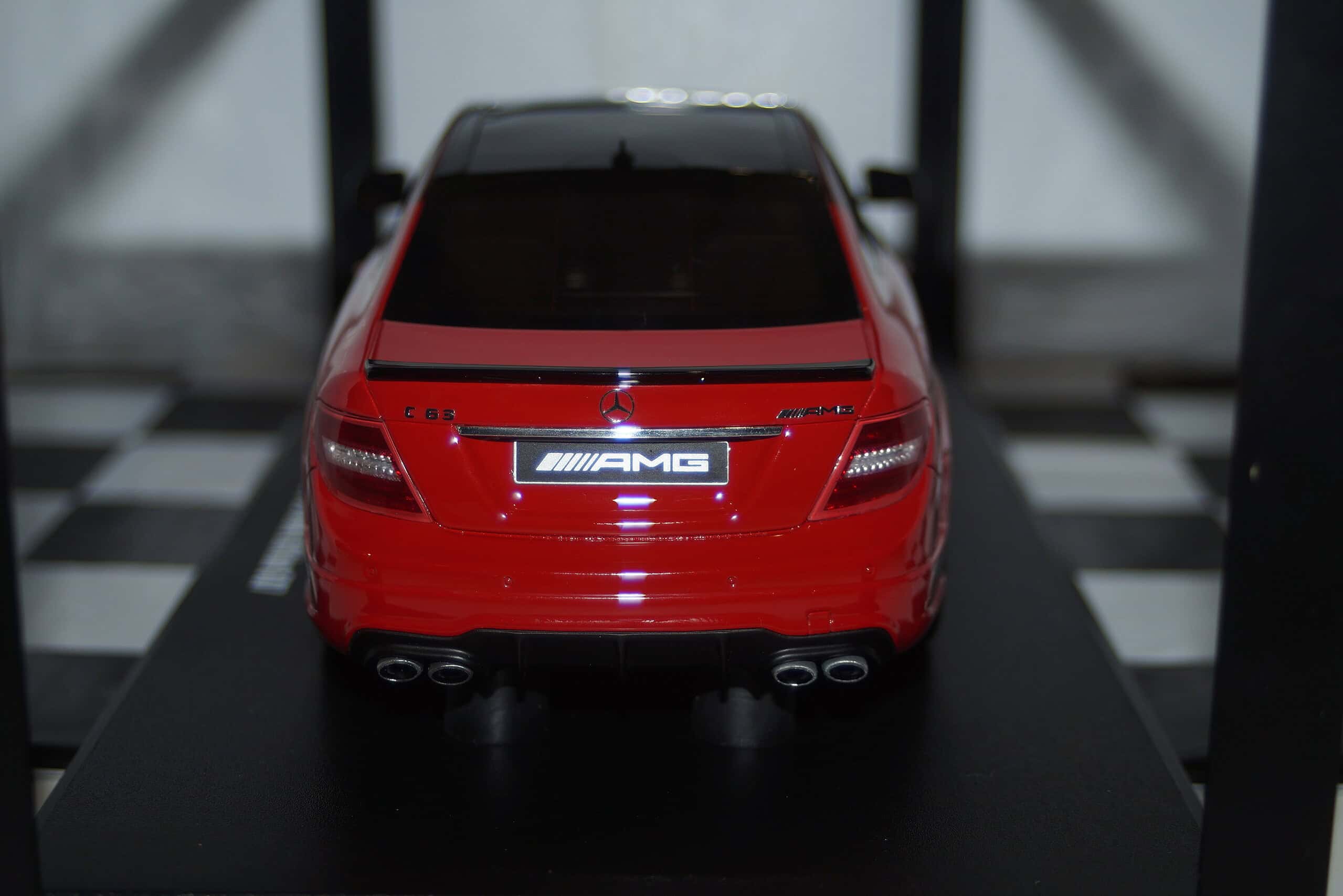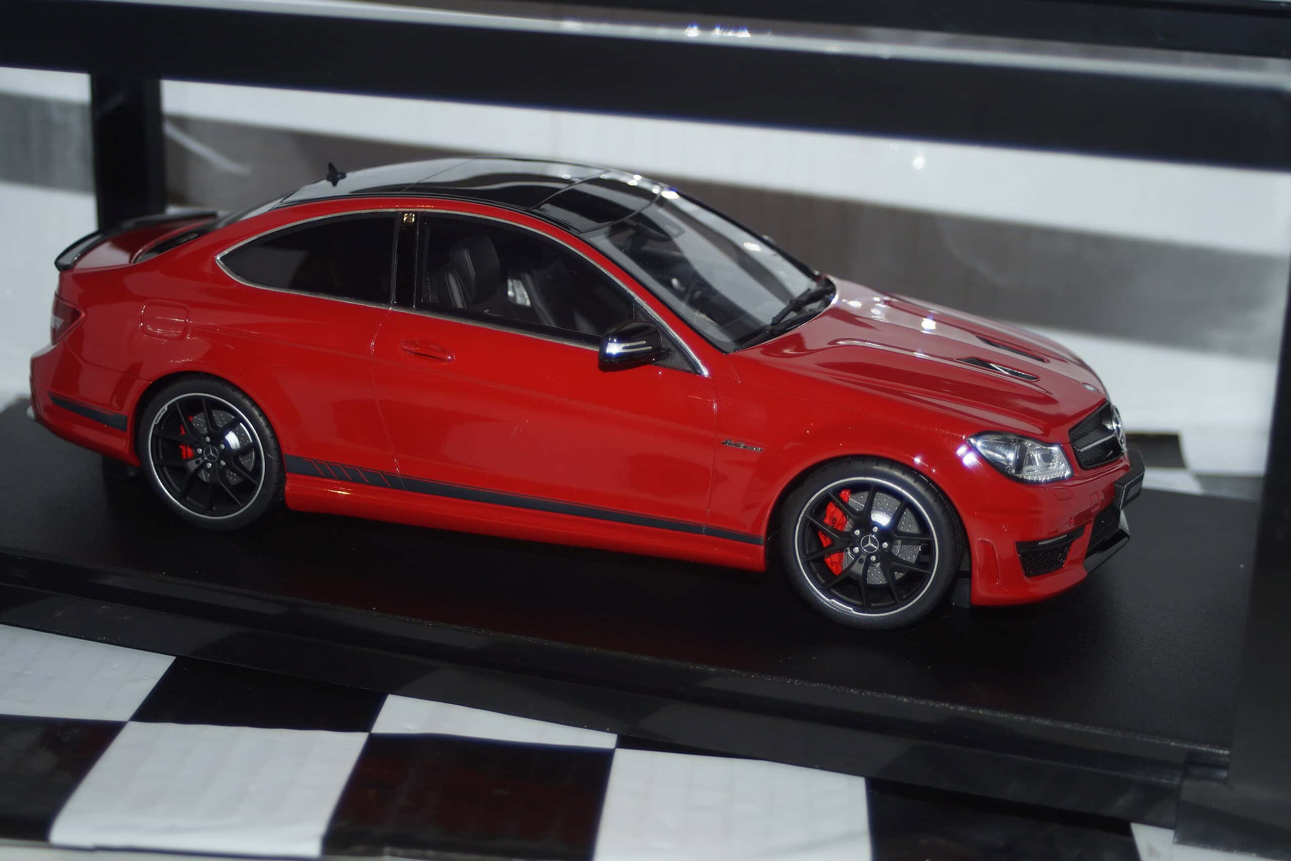 This Model Car is a collectors replica of Mercedes Mercedes – Benz C 63 AMG Edition 507 in Red with black roof