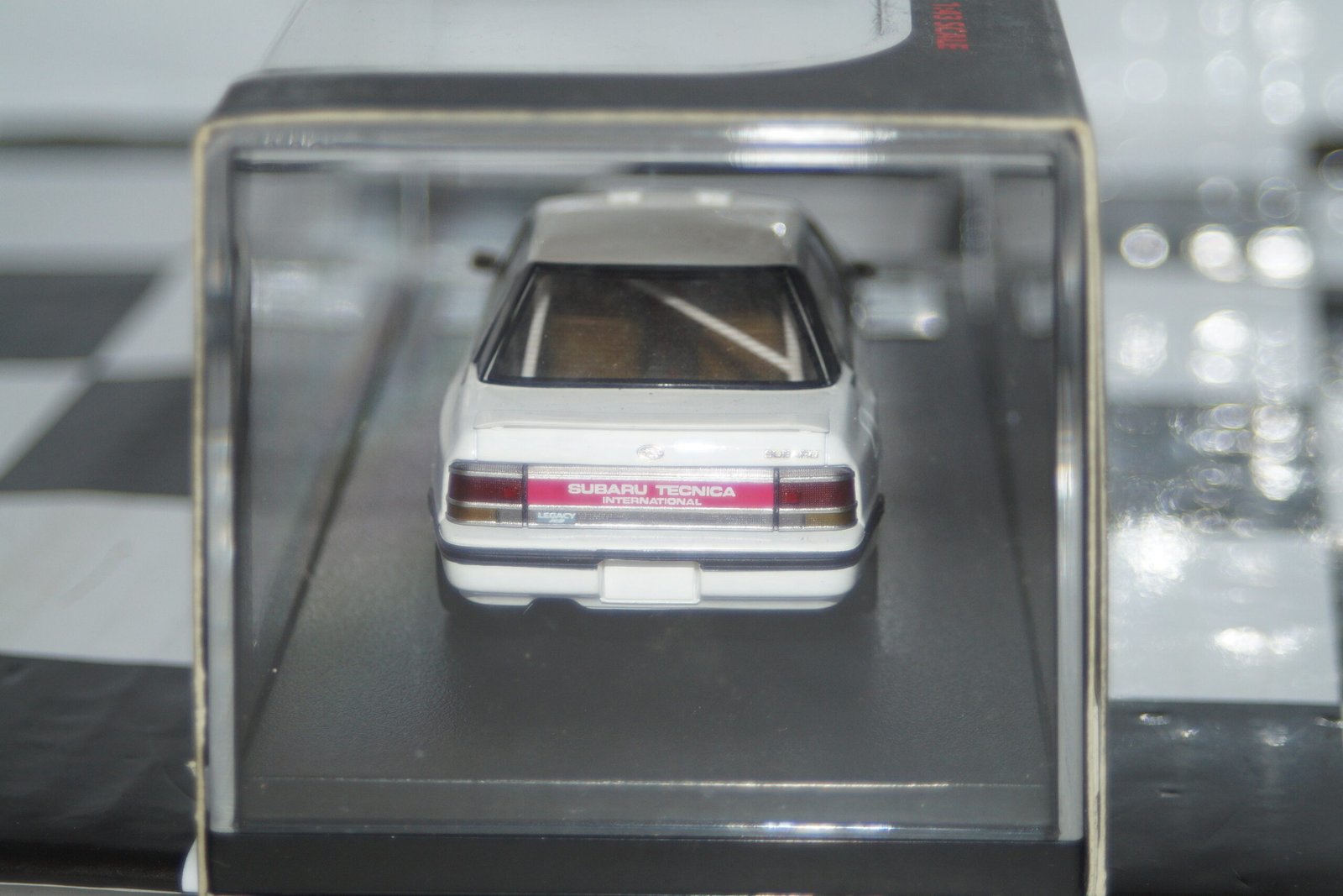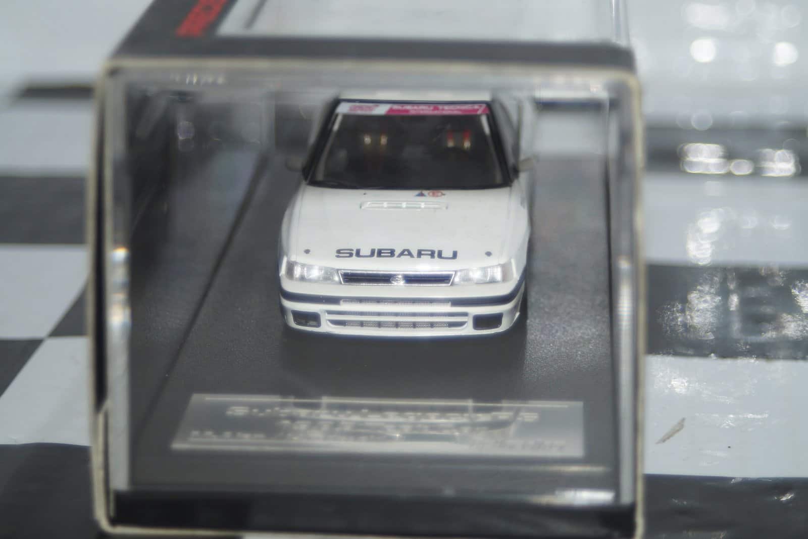 This Model Car is a collectors replica of Subaru Legacy RS Test Car 1989 in white and driven by M.Alen