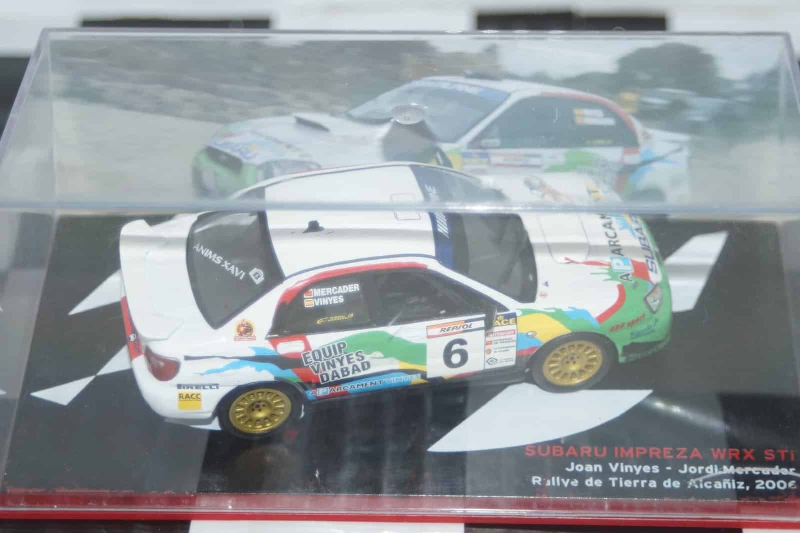 This Model Car is a collectors replica of a Subaru Impreza WRX STi 1993 Rally of Tierra de Alcaniz 2006 #6 and driven by J.Vinyes and J.Mercader