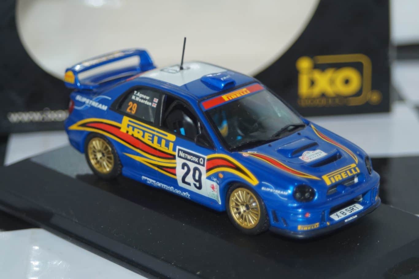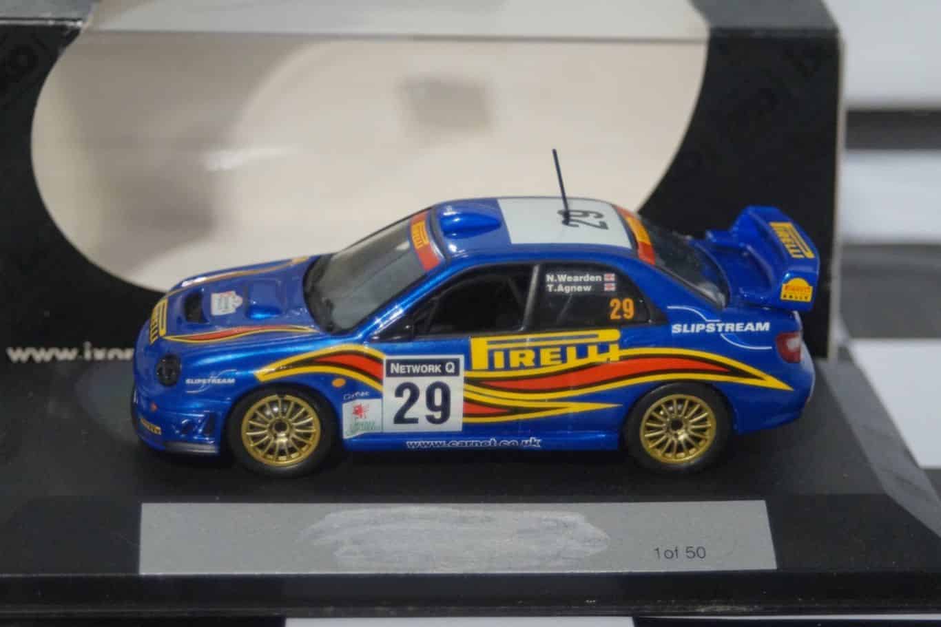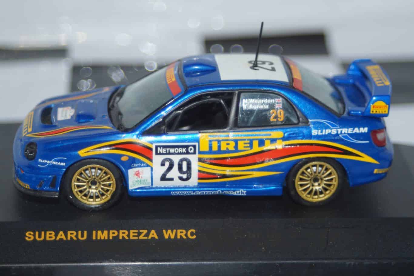 This Model Car is a collectors replica of a Subaru Impreza driven in the 2001 Network Q Rally driven by N.Wearden/T.Agnew