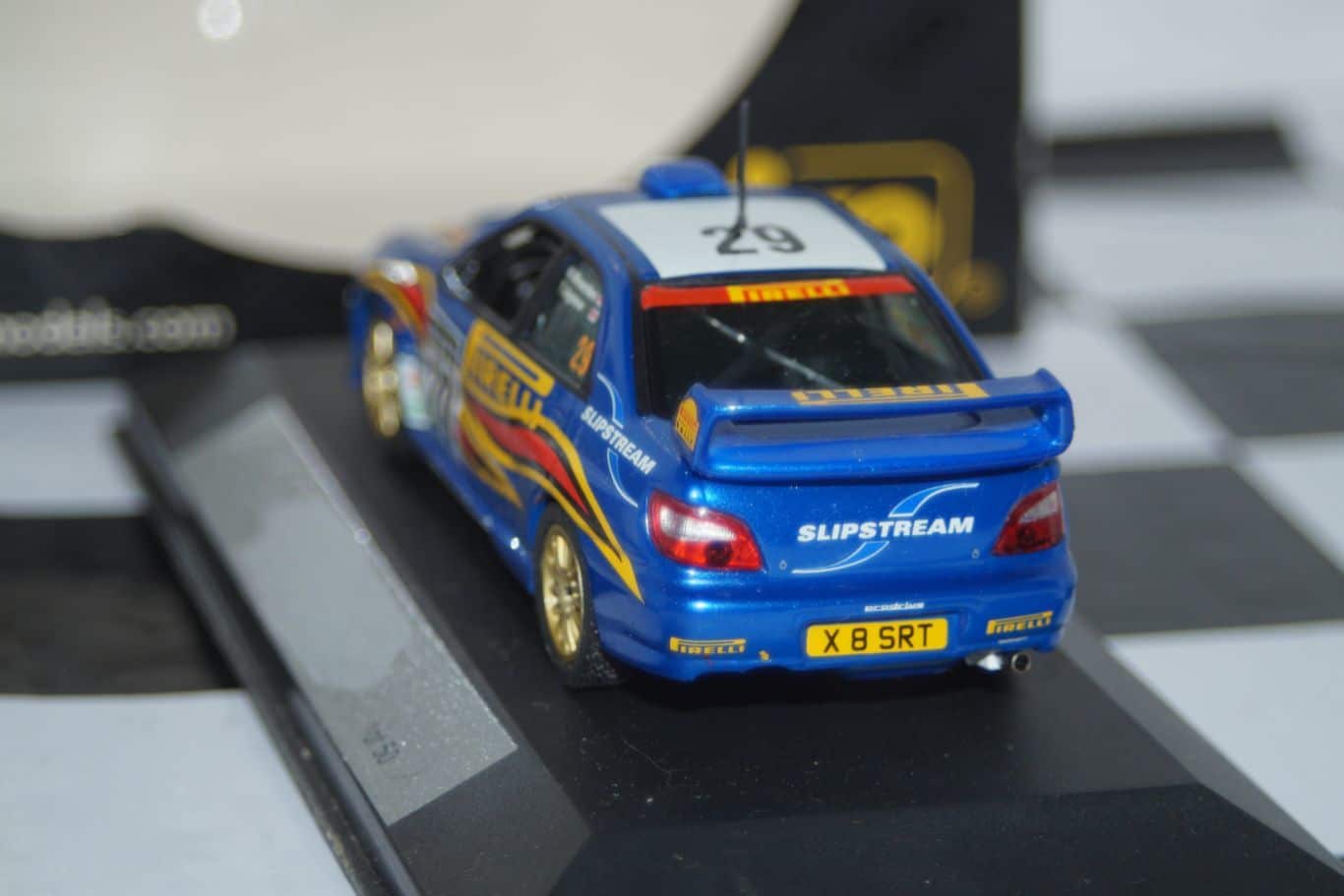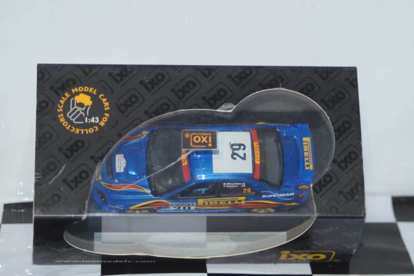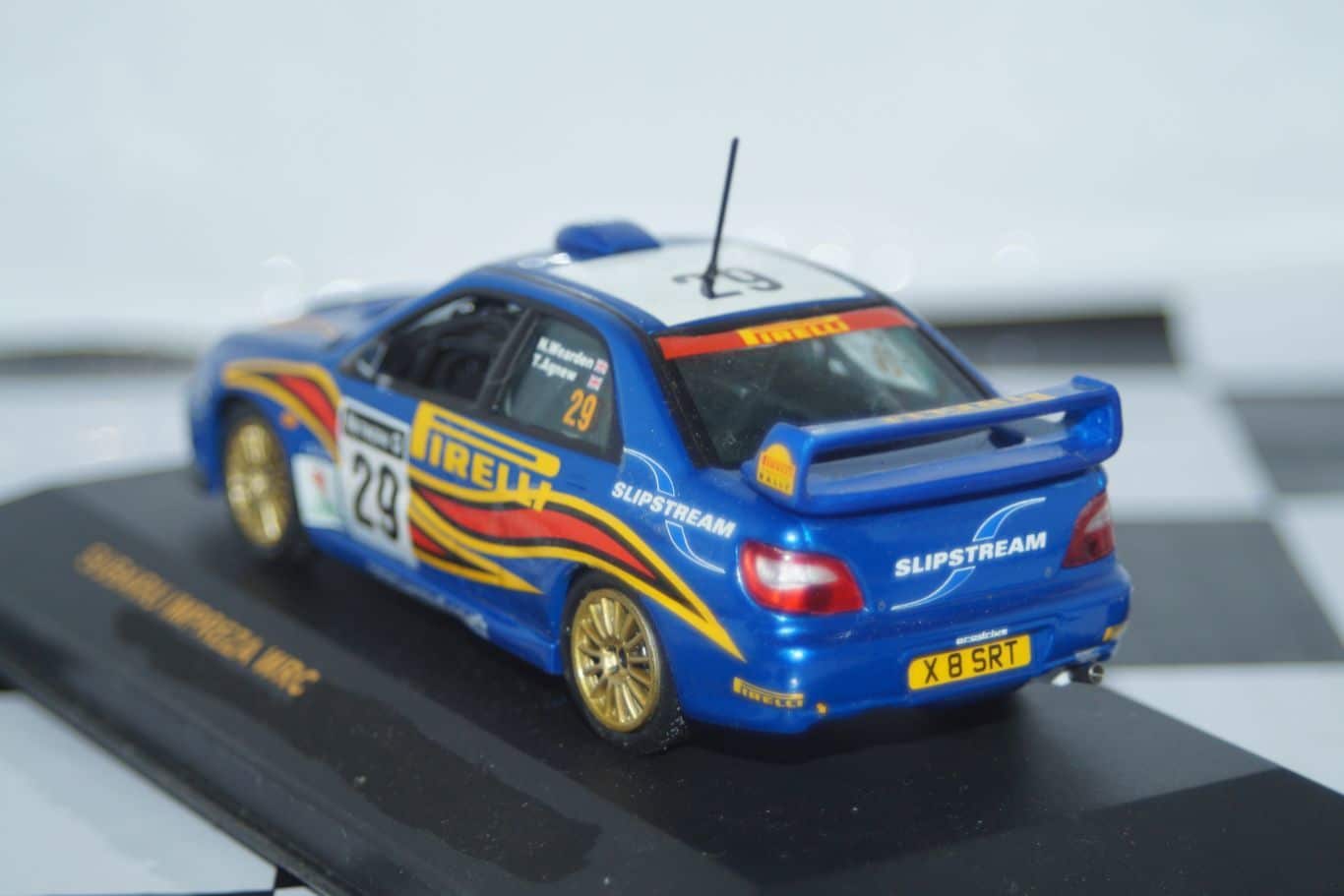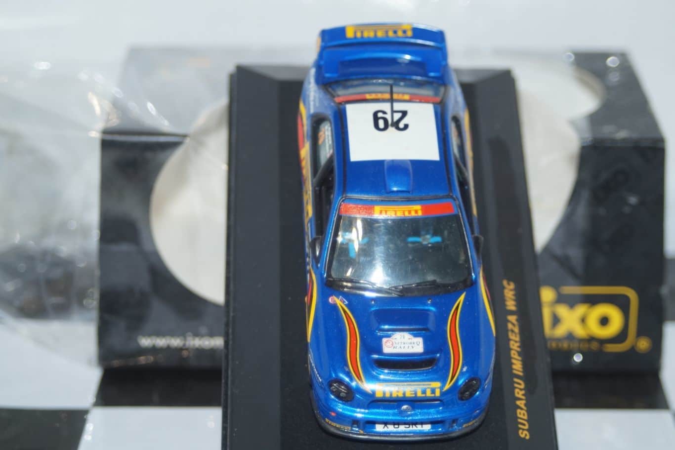 This Model Car is a collectors replica of a Subaru Impreza driven in the 2001 Network Q Rally driven by N.Wearden/T.Agnew