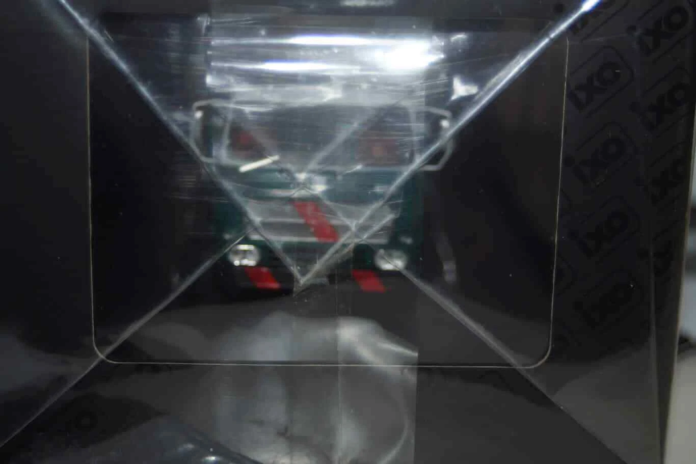 This Model car comes on a black plinth in a Picture Window Box with Printed outer card Sleeve .