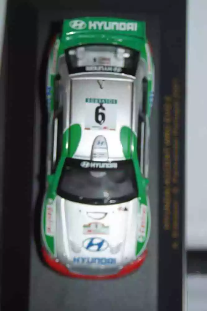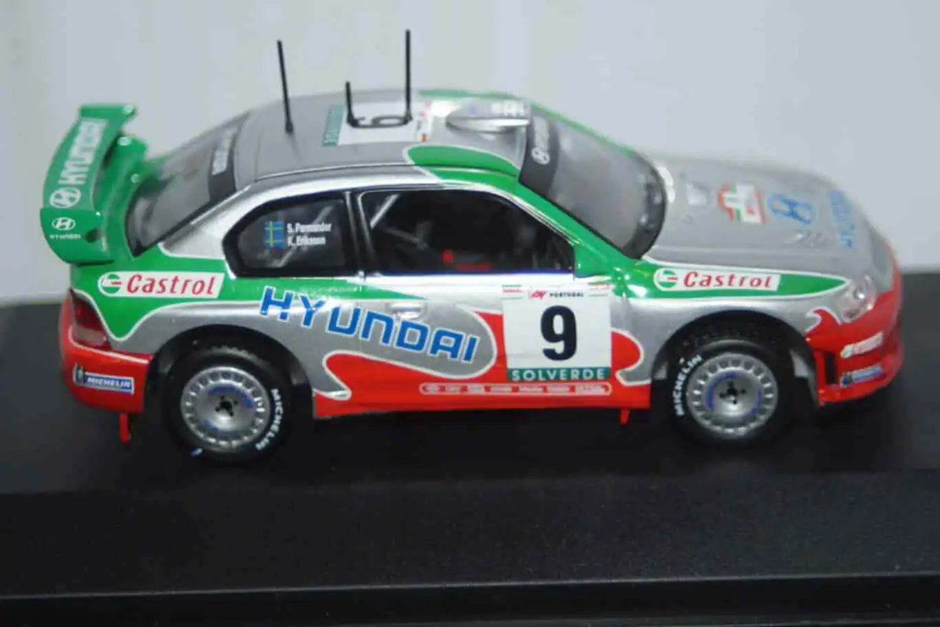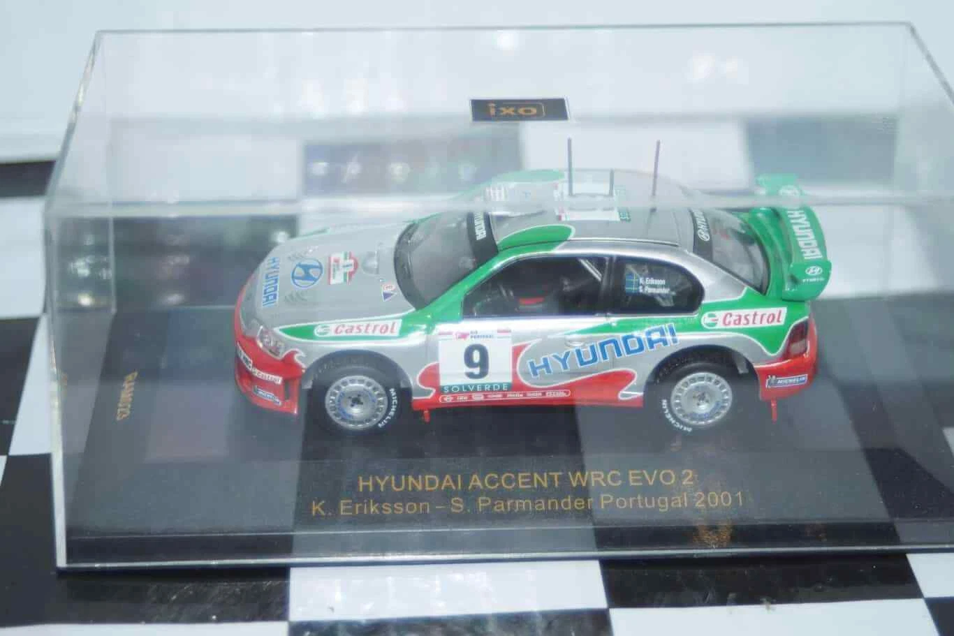 This Model Car is a collectors replica of a Hyundai Accent WRC EVO 2 PORTUGAL 2001 #9 Rally by K.Eriksson / S.Parmander