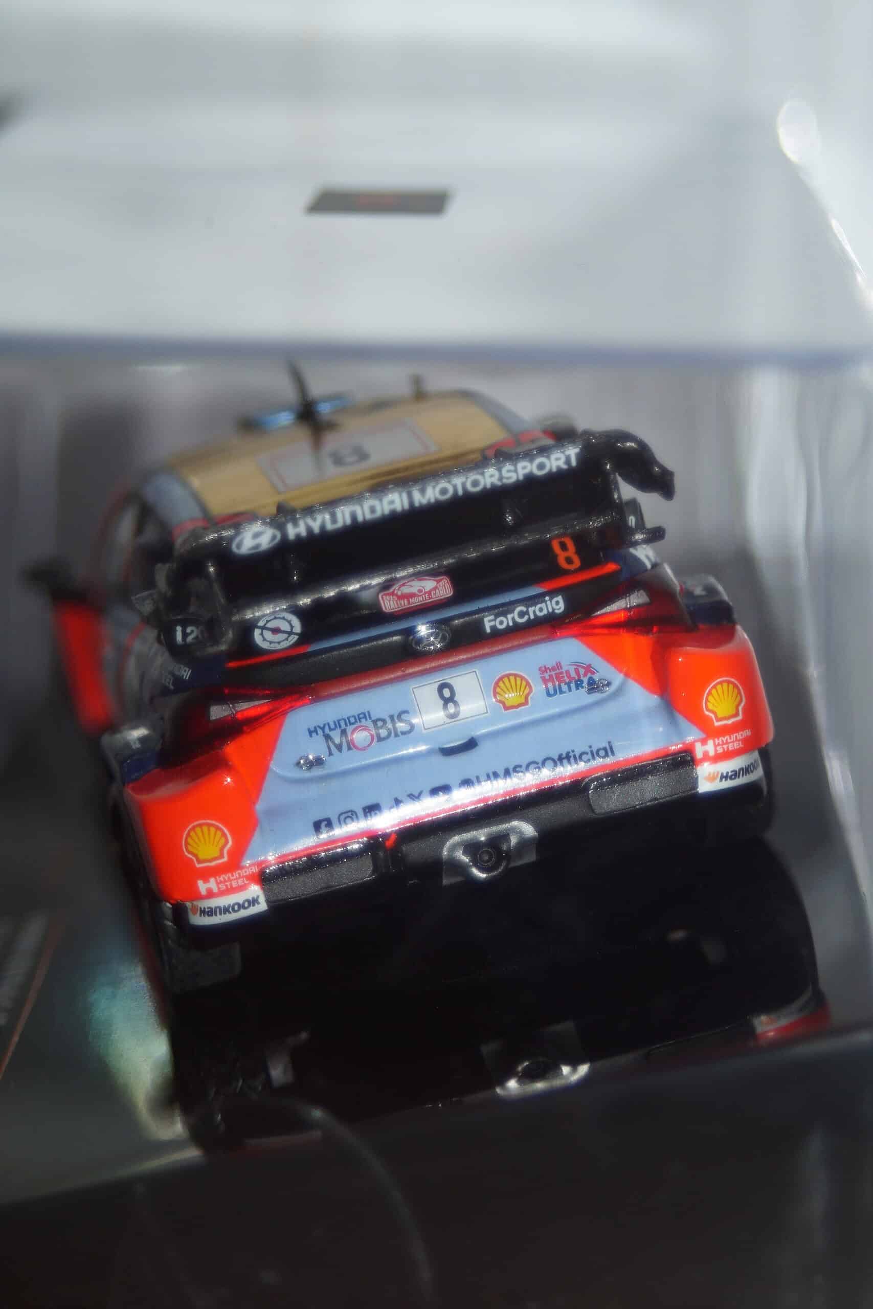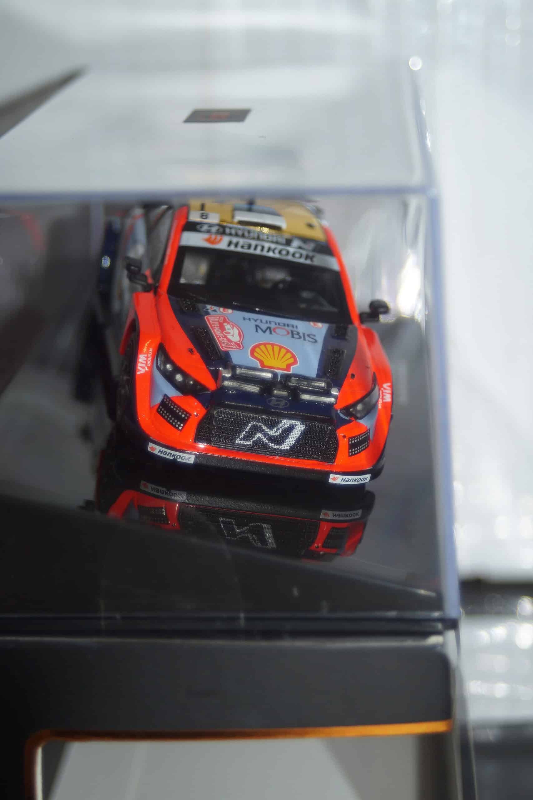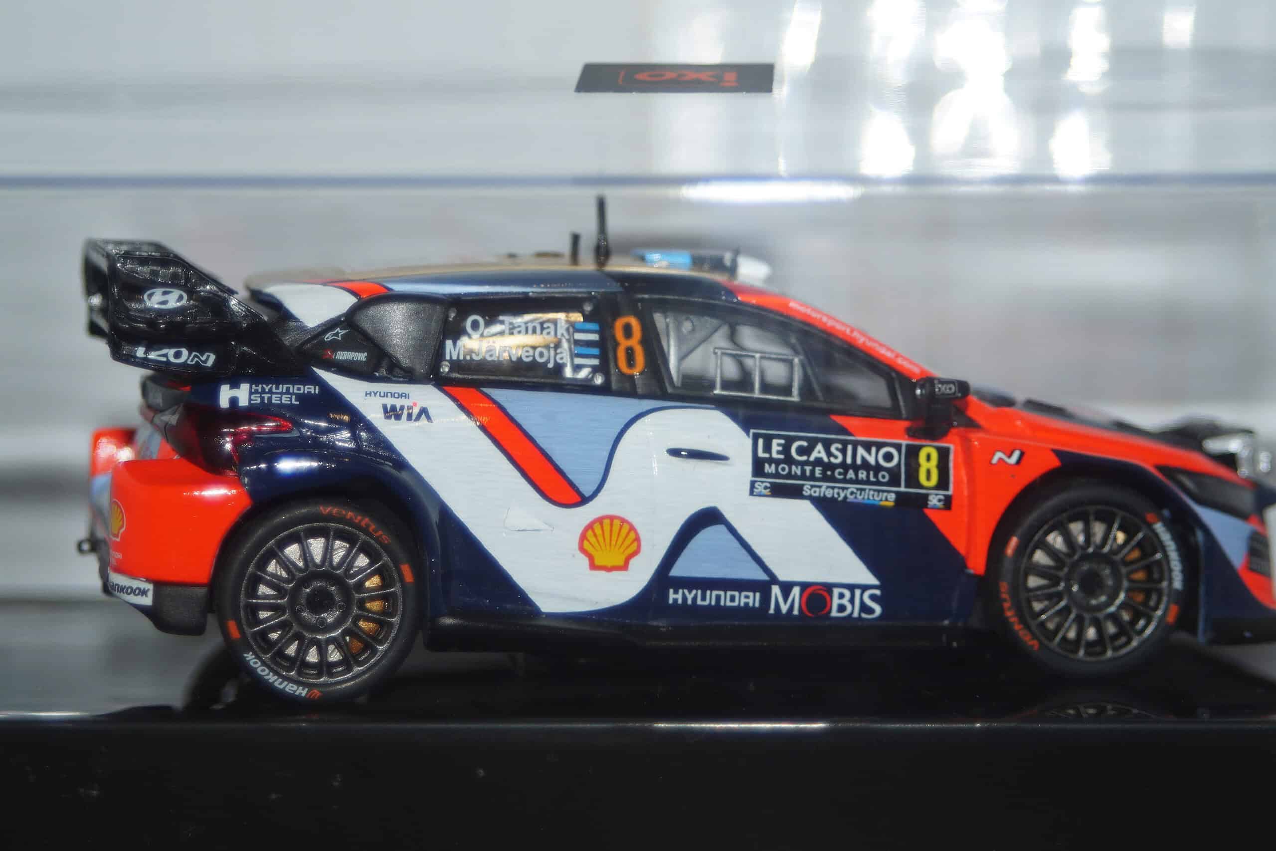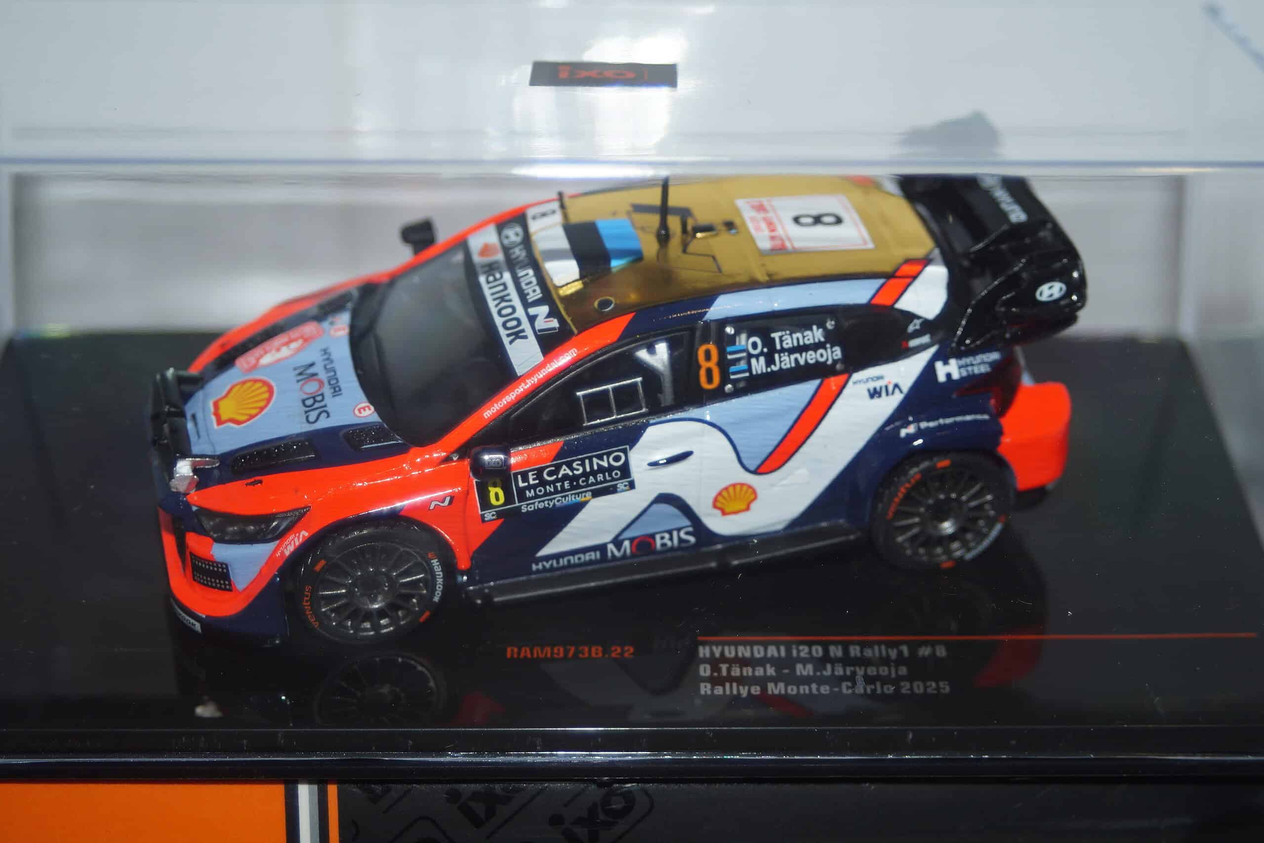 This model car is a collectors replica of a Hyundai i20 N Rally 1 Monte Carlo Rally 2025 #8 and driven by O.Tanak/M.Jarveoja