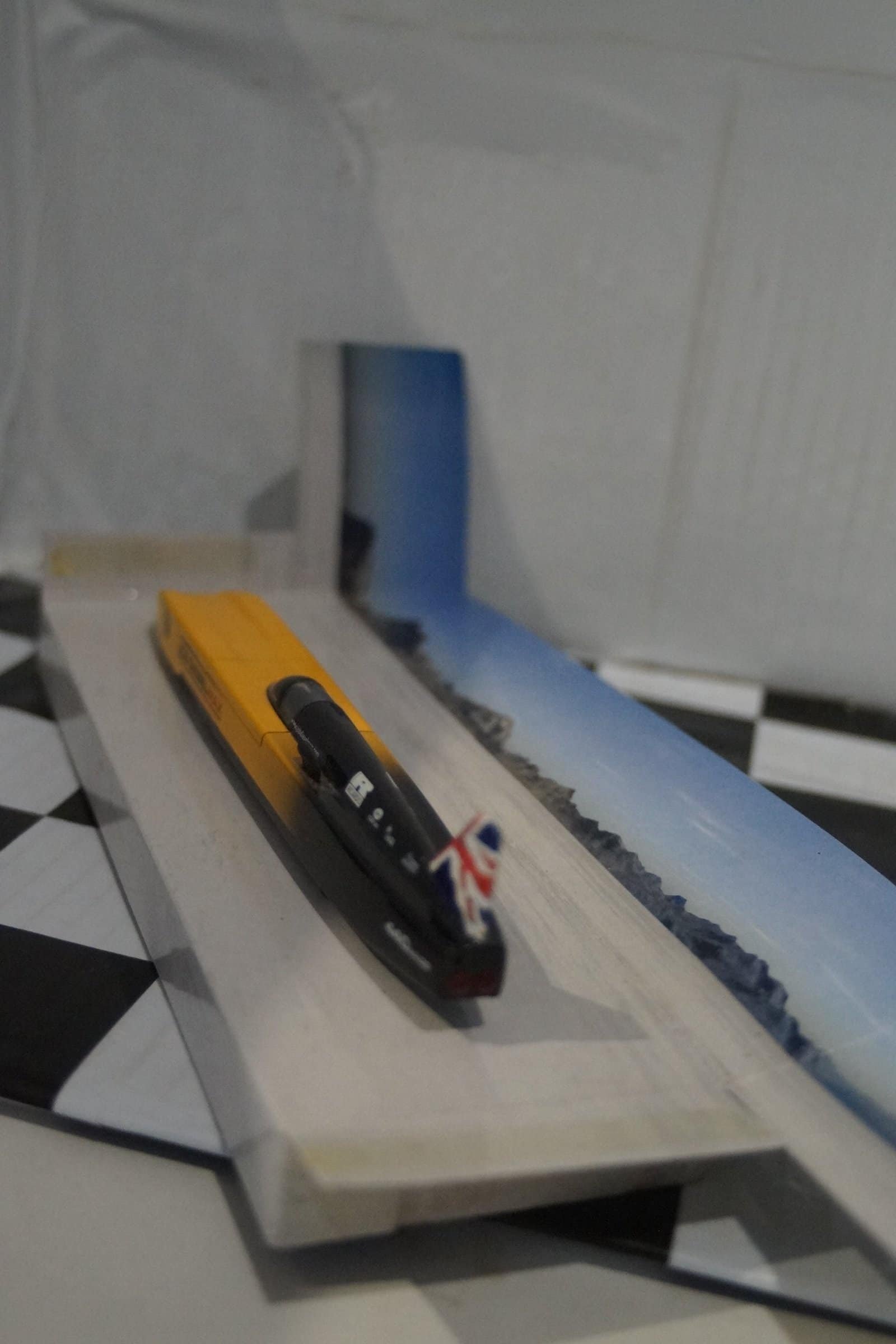 This Model car comes on a Grey Cardboard Base in a Printed outer card box .