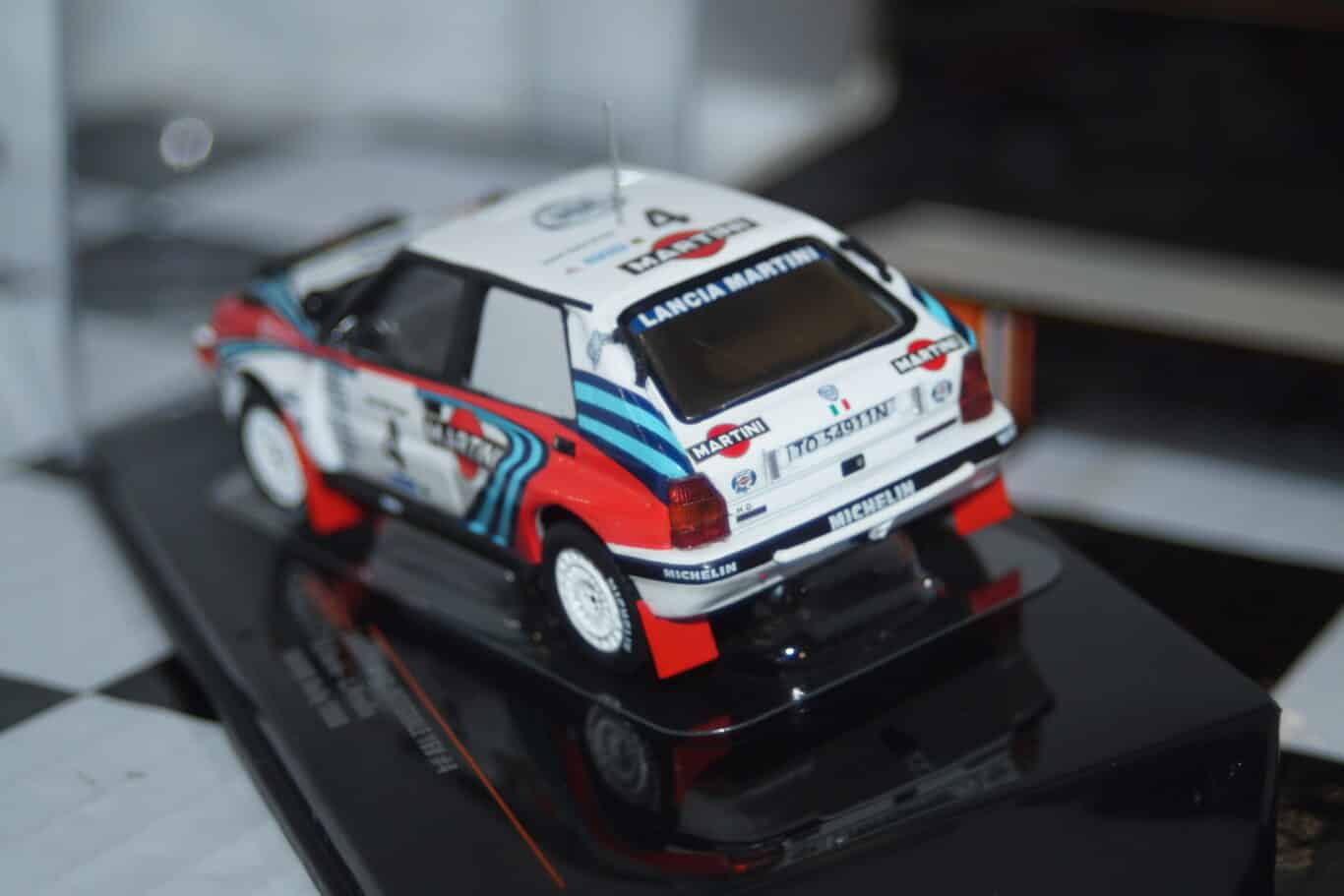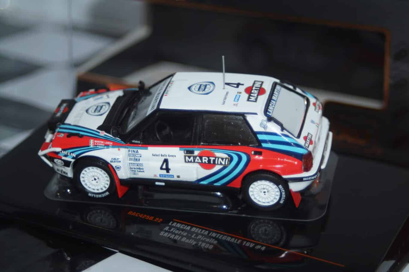 This Model Car is a collectors replica of a Lancia Delta Intergrale #4 driven at the 1990 Safari by A.Fiorio