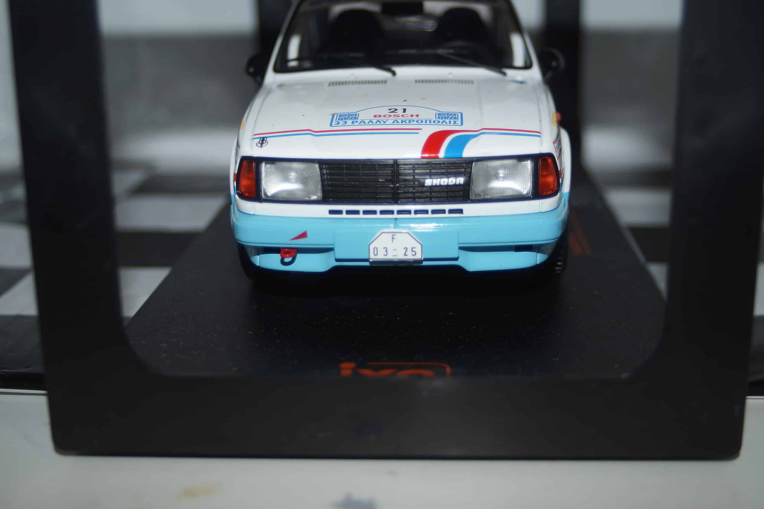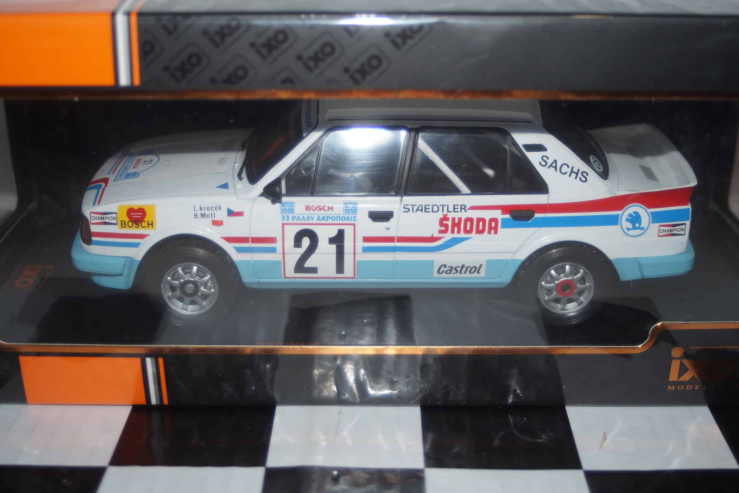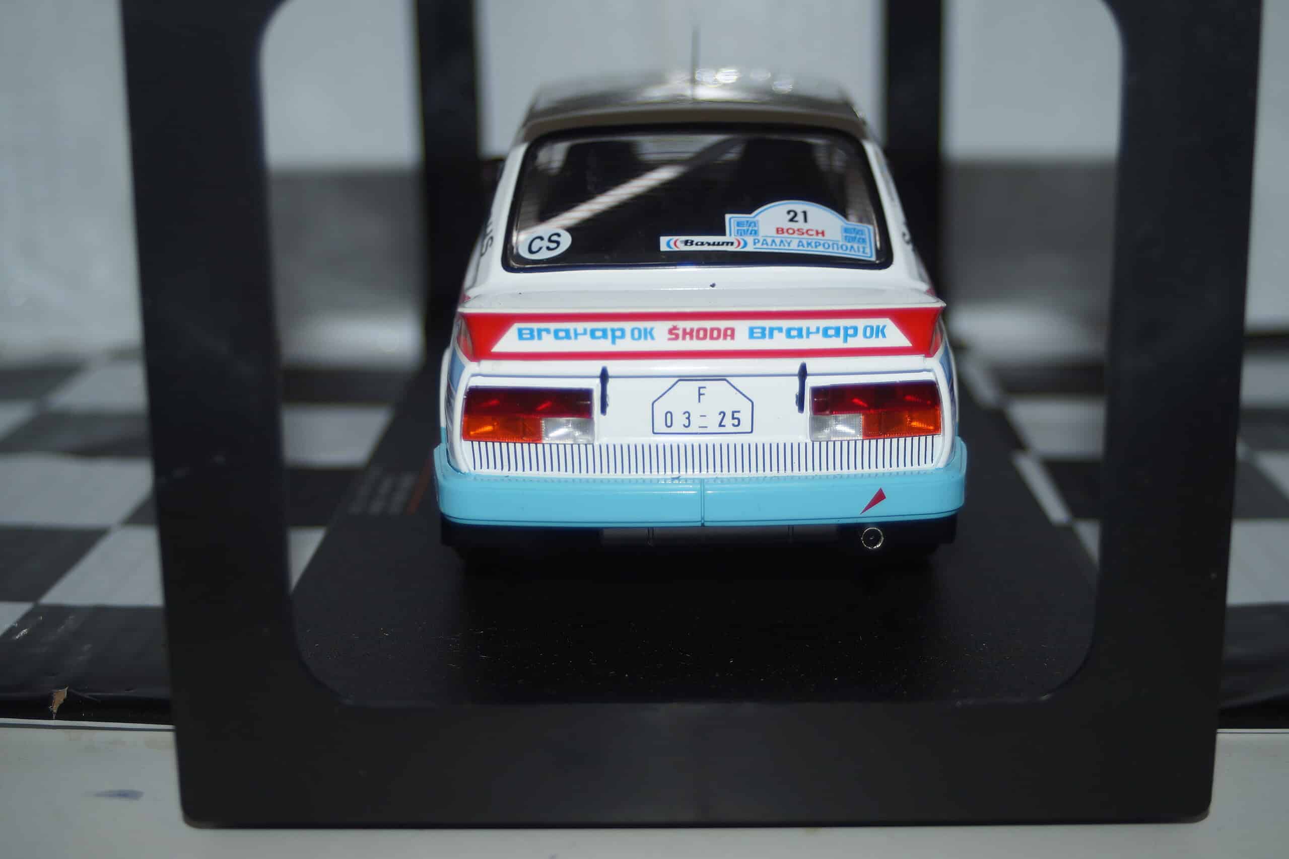 This model car is a collectors replica of a Skoda 130LR Rally Acropolis #21 1986 Driven by L.Krecek / B.Moti