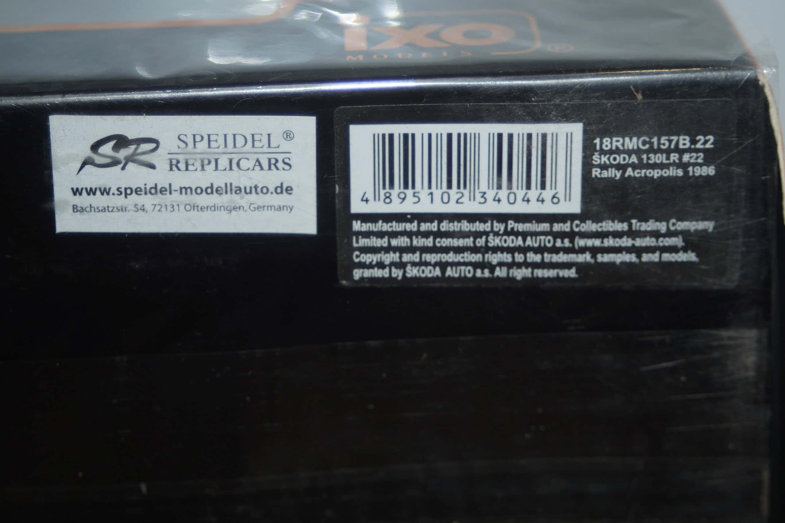 IXO Skoda 130LR Rally Acropolis #22 S.Kvaizar 1986 1:18 REF 18RMC157B.22