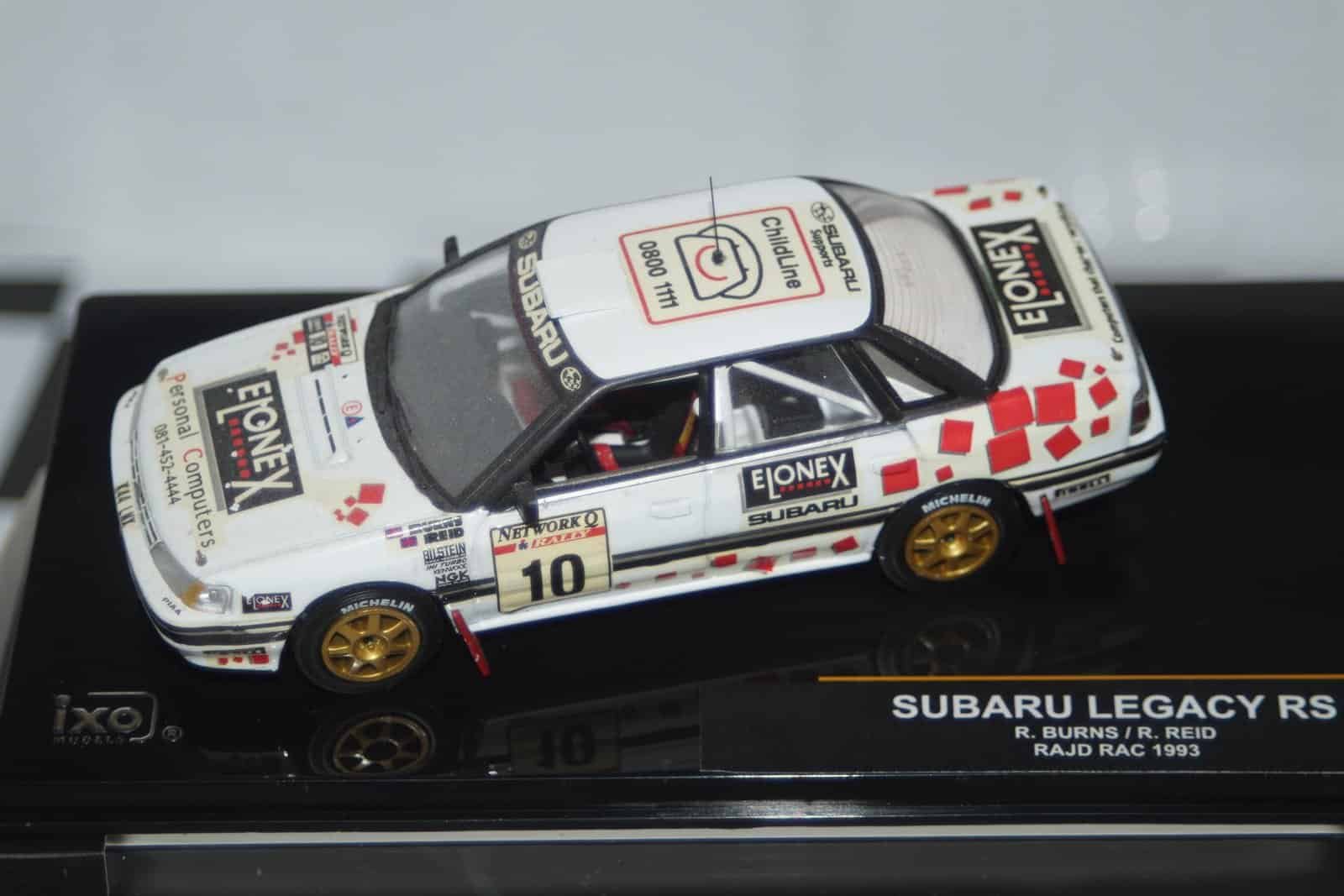 This Model Car is a collectors replica of a Subaru Legacy RS CODE 3 #10 RAJD RAC 1993 driven by R.Burns / R.Reid