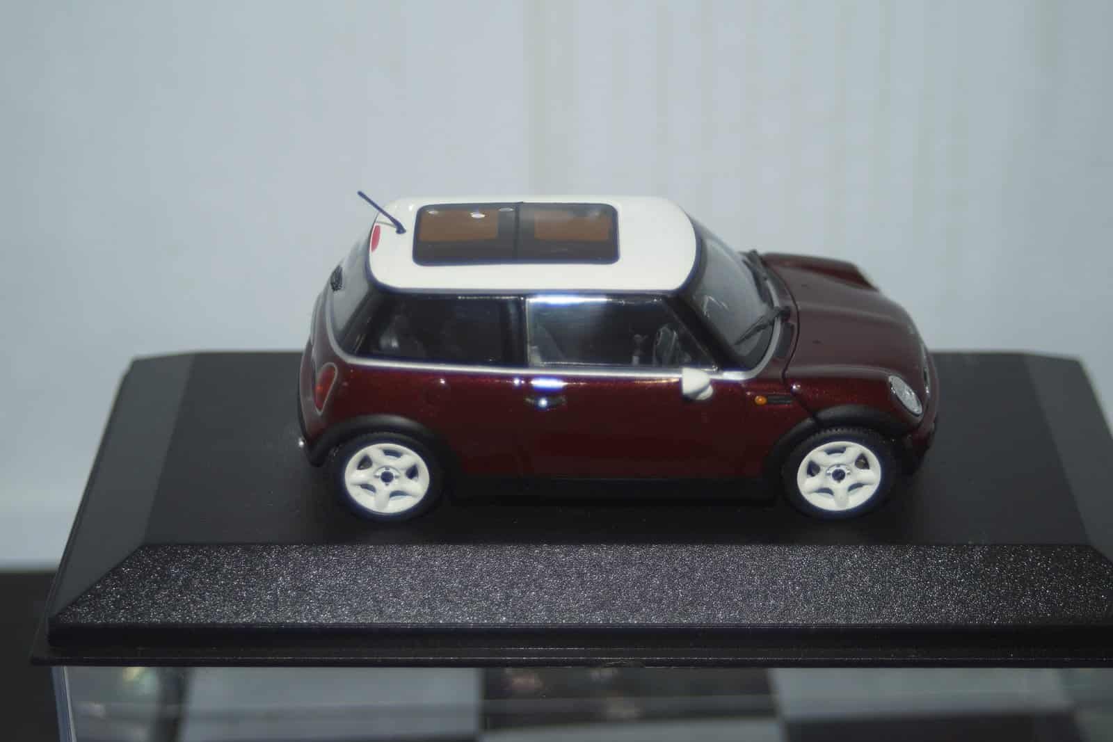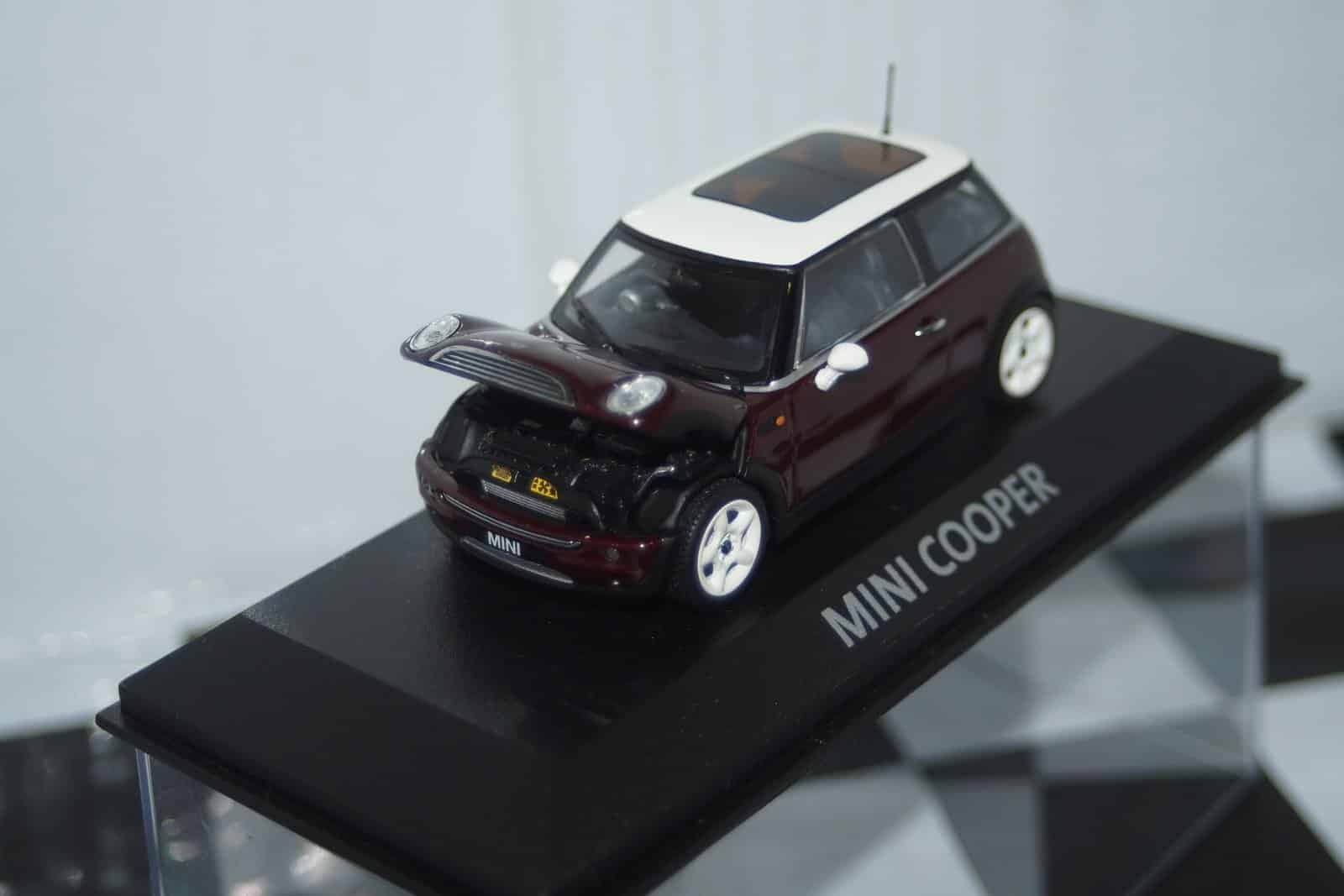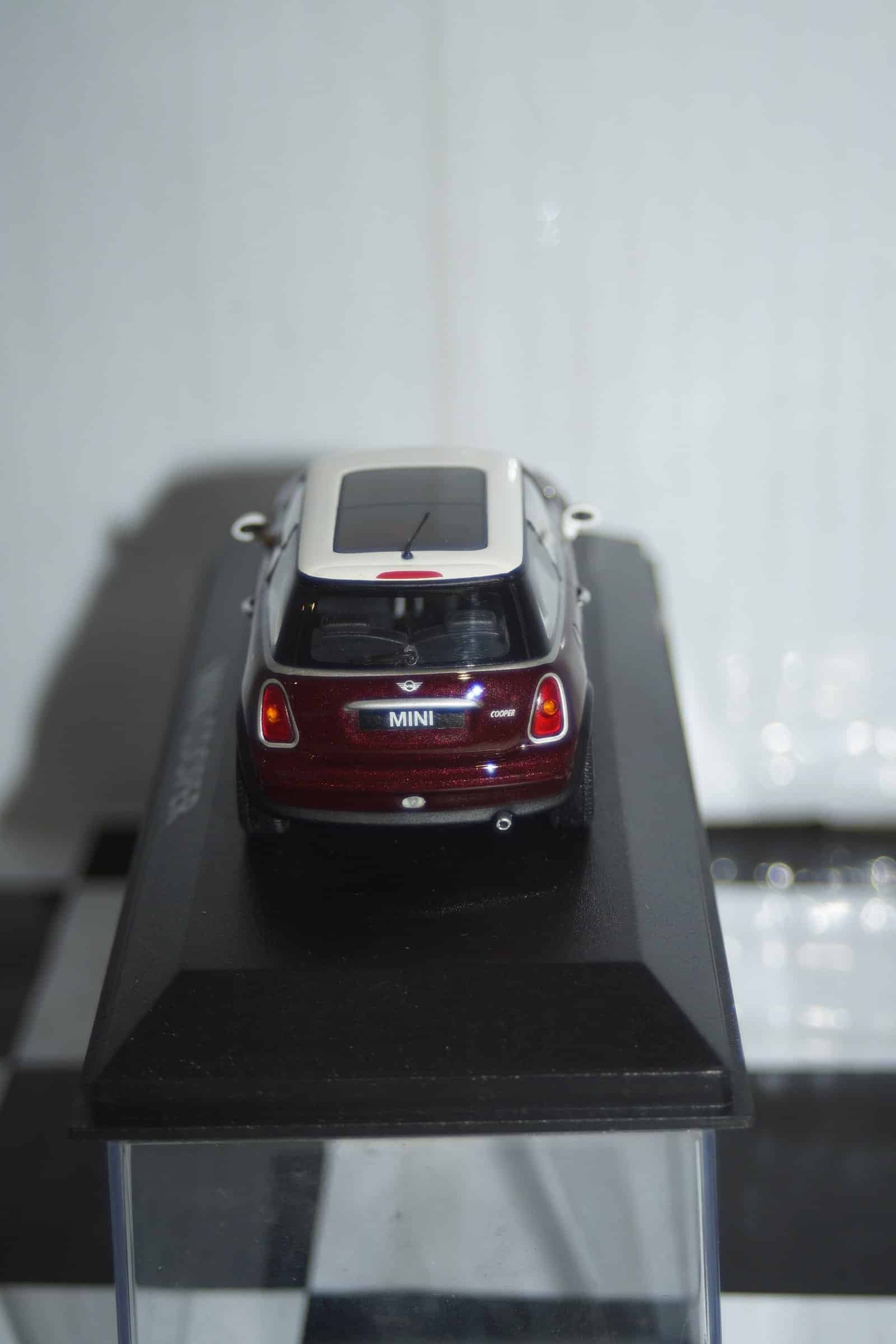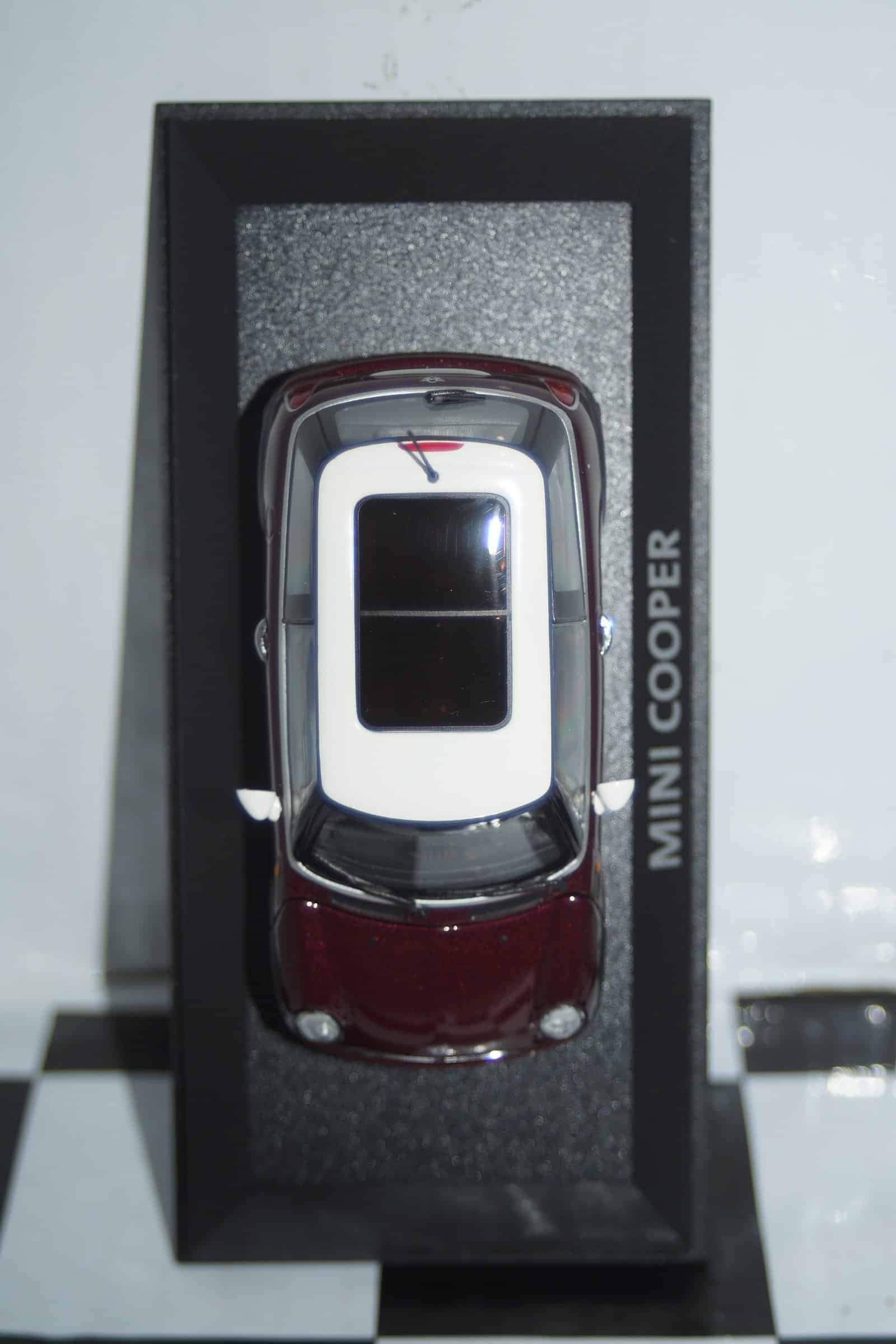 This Model Car is a collectors replica of an BMW Mini Cooper (dealer edition) in Burgundy Red