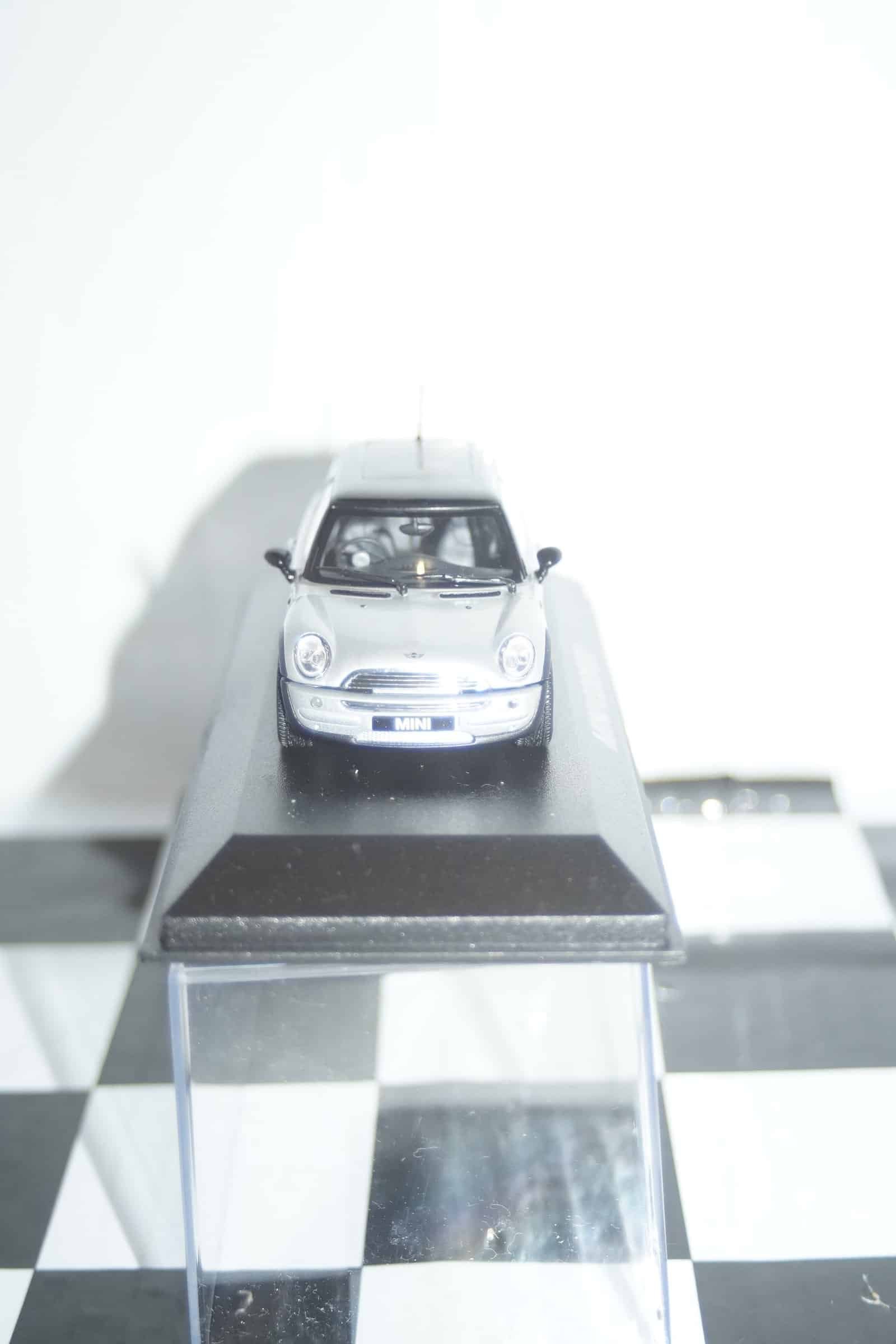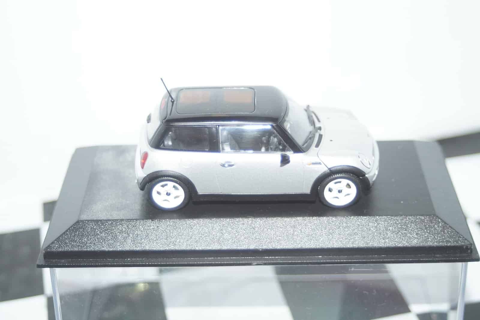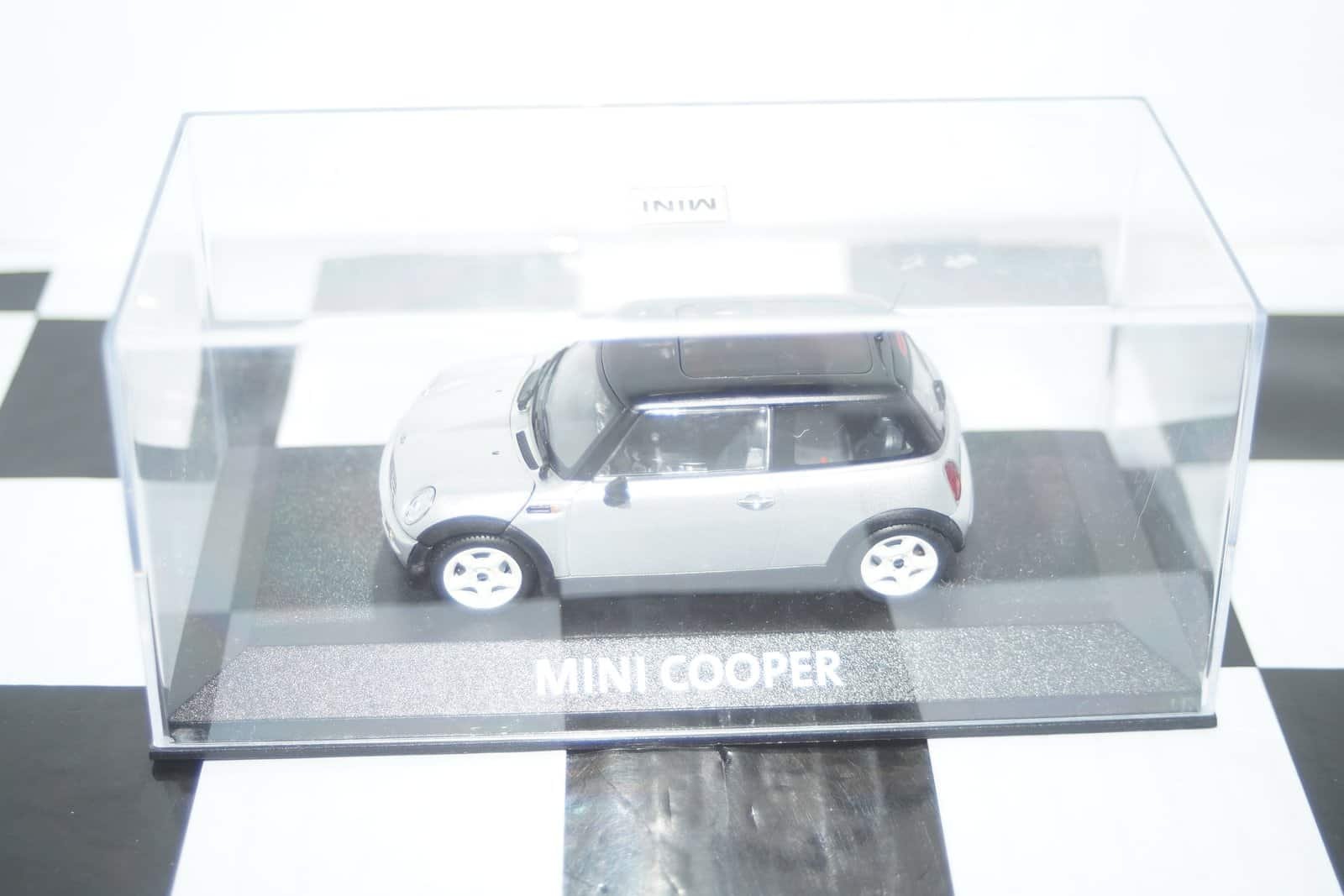 This Model Car is a collectors replica of an BMW Mini Cooper (dealer edition) in silver