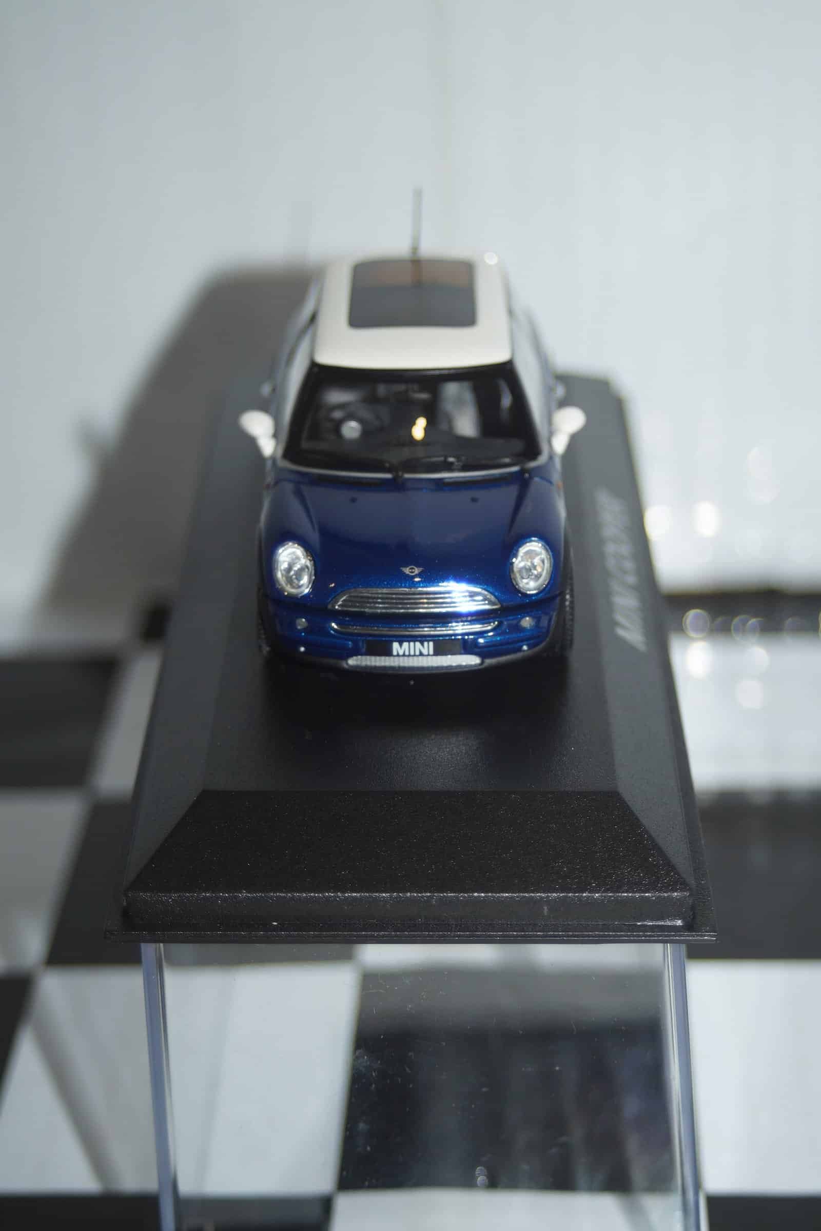 This Model Car is a collectors replica of an BMW Mini One (dealer edition) in navy blue