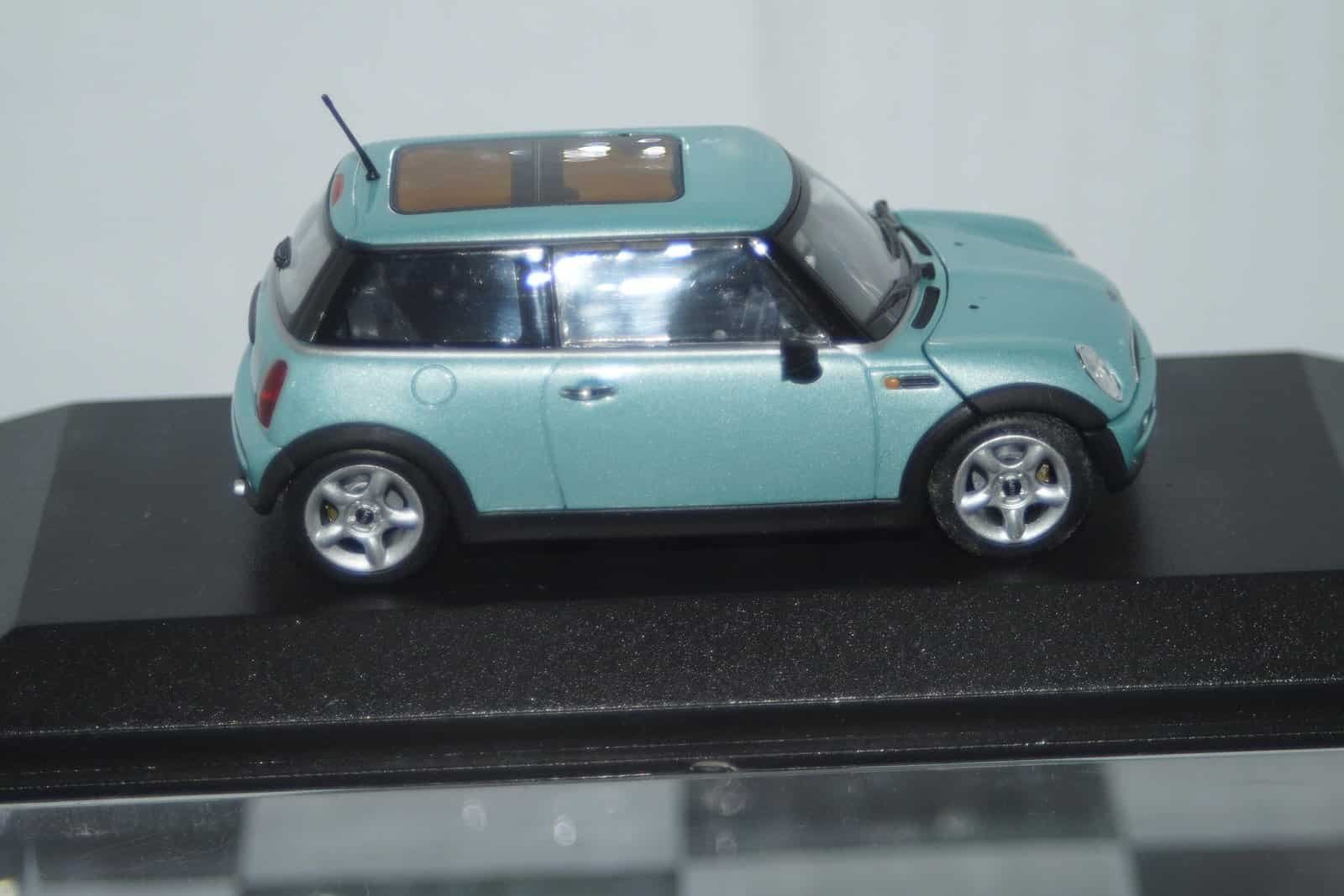 This Model Car is a collectors replica of an BMW Mini One (dealer edition) in Pearlescent Green/Blue