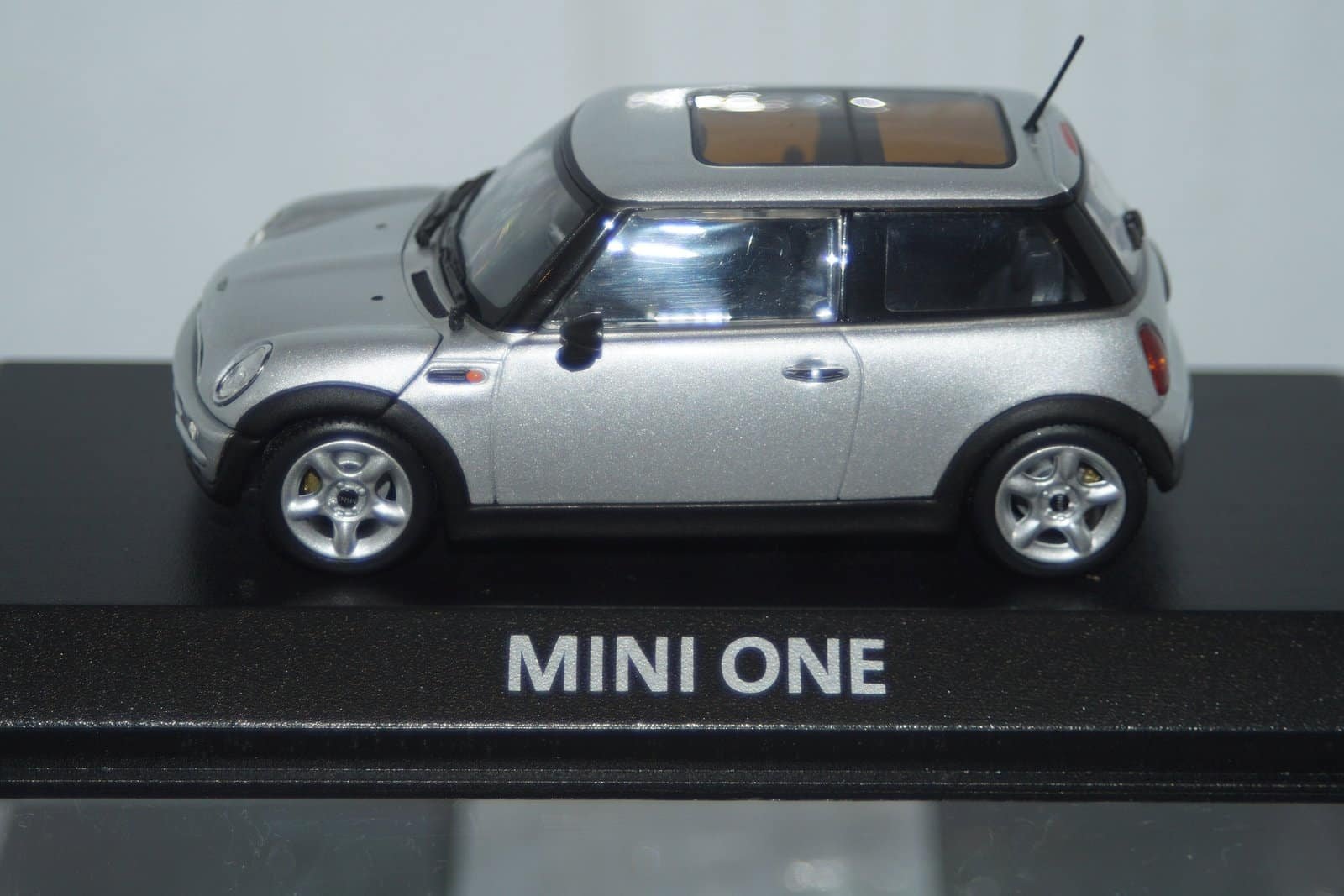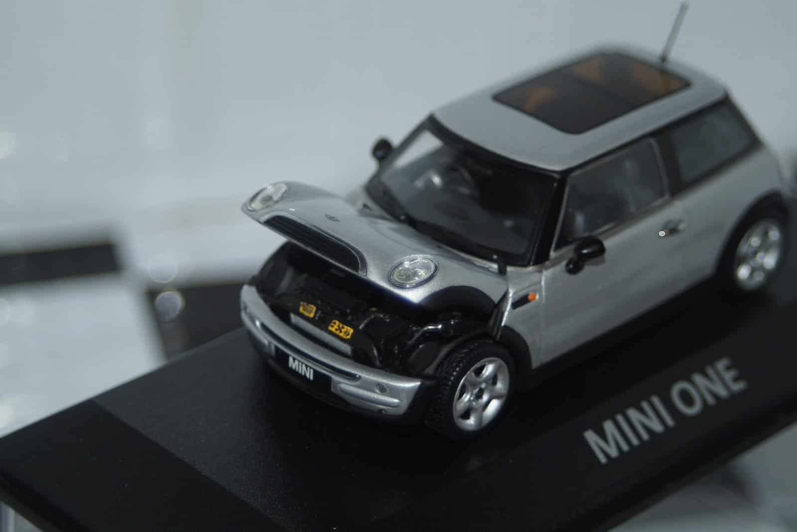 This Model Car is a collectors replica of an BMW Mini One (dealer edition) in silver