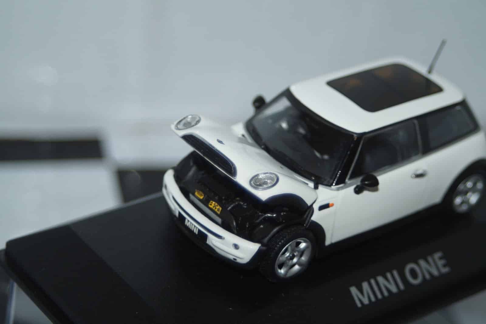 This Model Car is a collectors replica of an BMW Mini One (dealer edition) in white