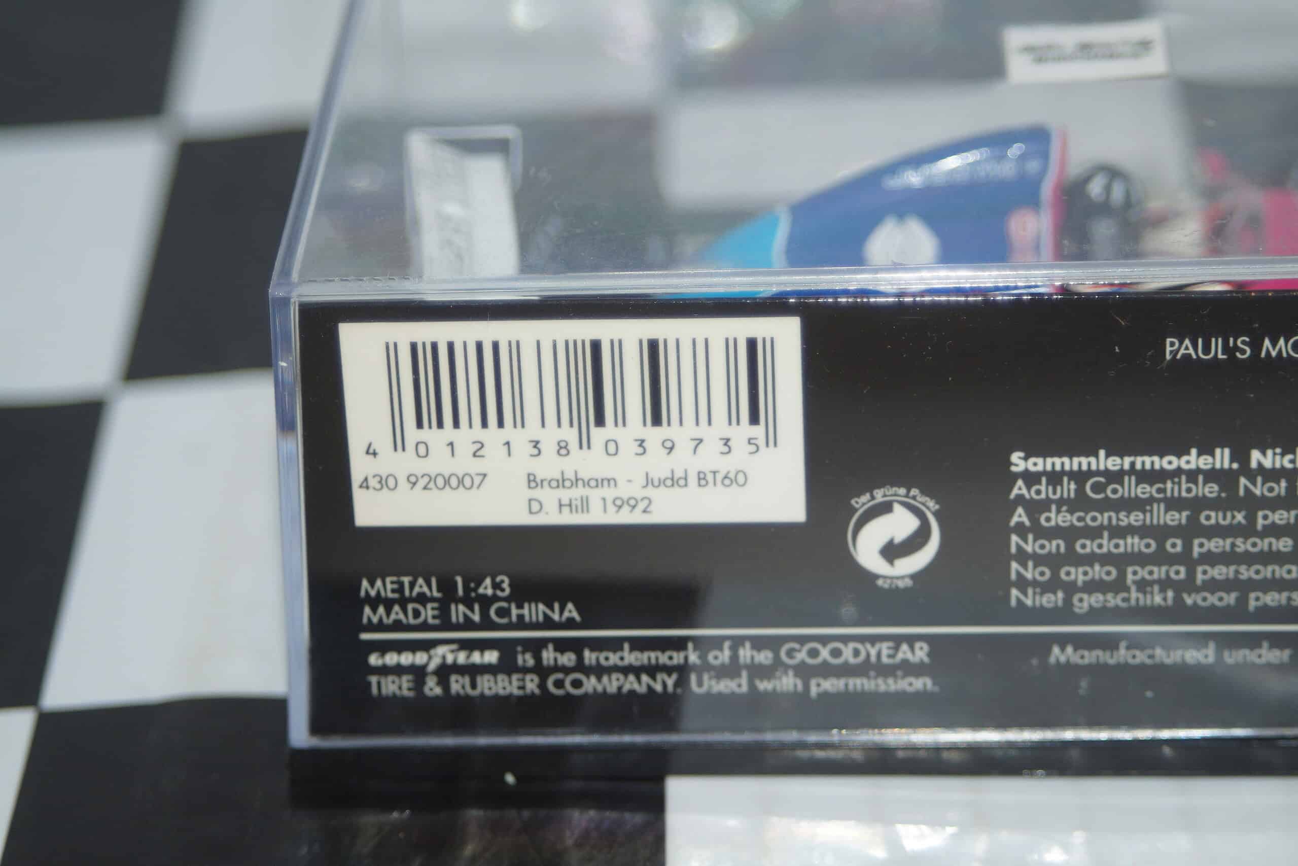 Minichamps Brabham Judd BT60 1992 D.Hill 430 920007 1:43