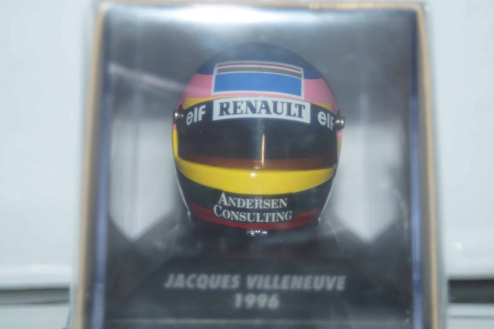 This Model Helmet is a collectors replica of an Helmet as used by JAQUES VILLENEUVE in 1996.