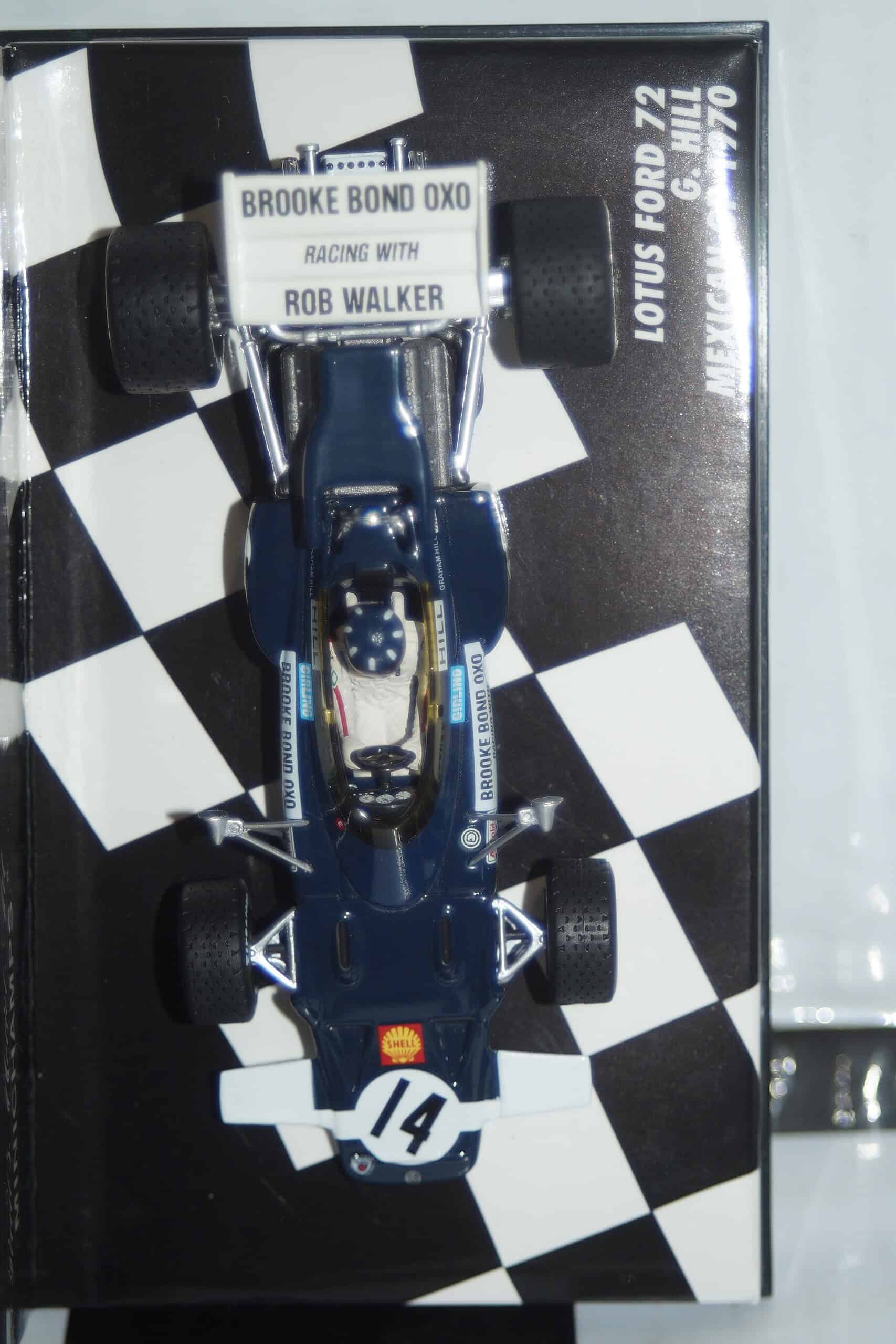 This Model Car is a collectors replica of a Lotus Ford 72 from the Mexican GP 1970 and driven by G.Hill