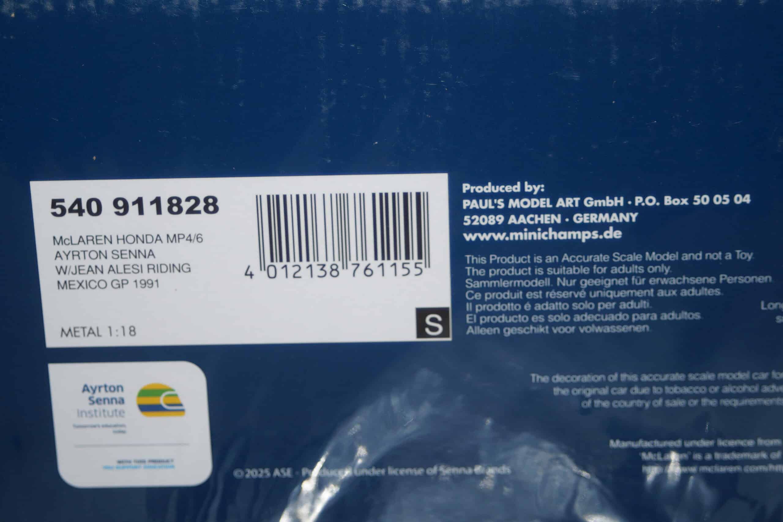 Minichamps McLaren Honda MP4-6 A.Senna Mexico GP 1991 Ref 540 911828 1:18