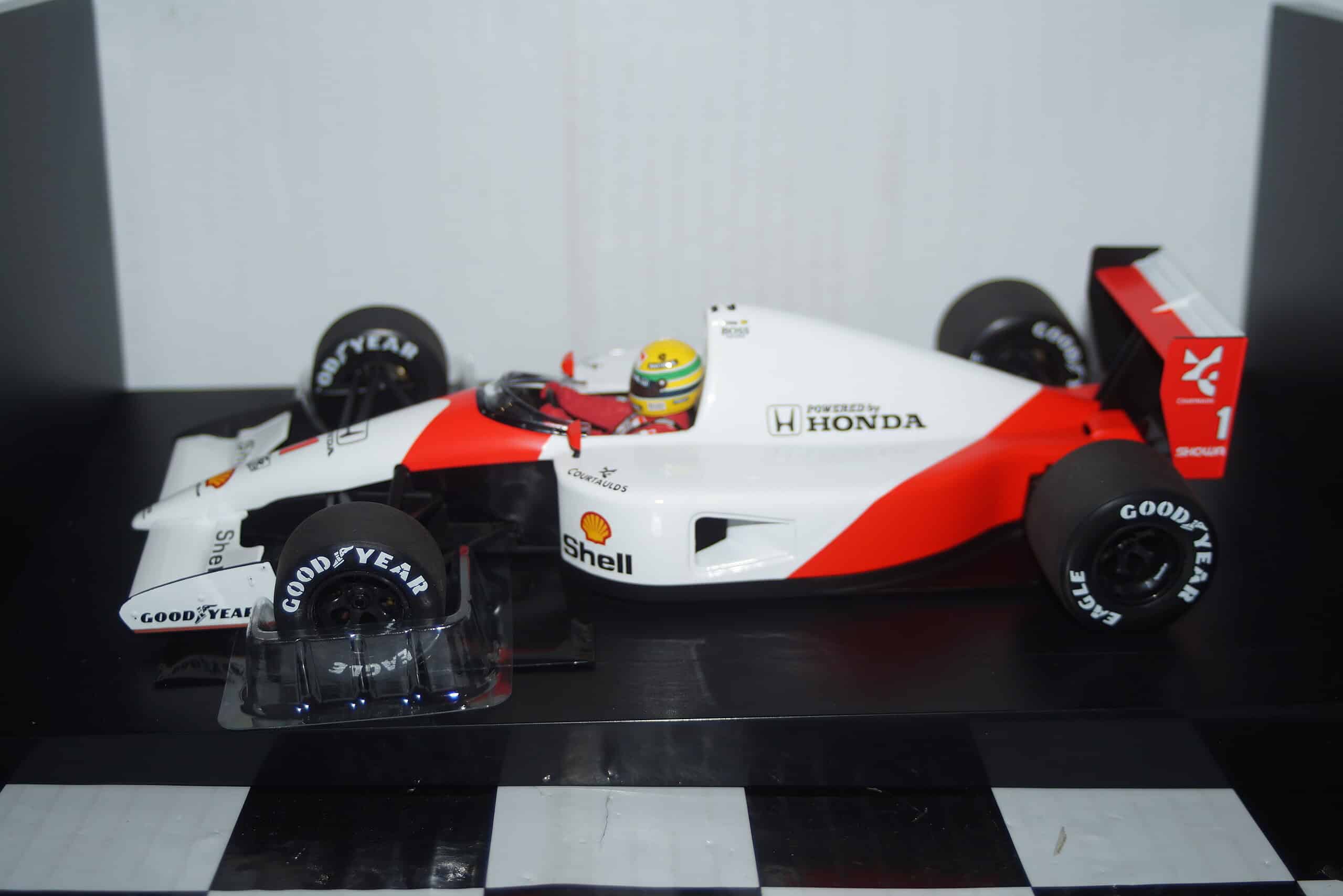 This Model car is a collectors Replica of the McLaren Honda MP4-6 Mexico GP 1991 #1 and Driven by A.Senna. The comes also with a J.Alessi sitting/riding figure