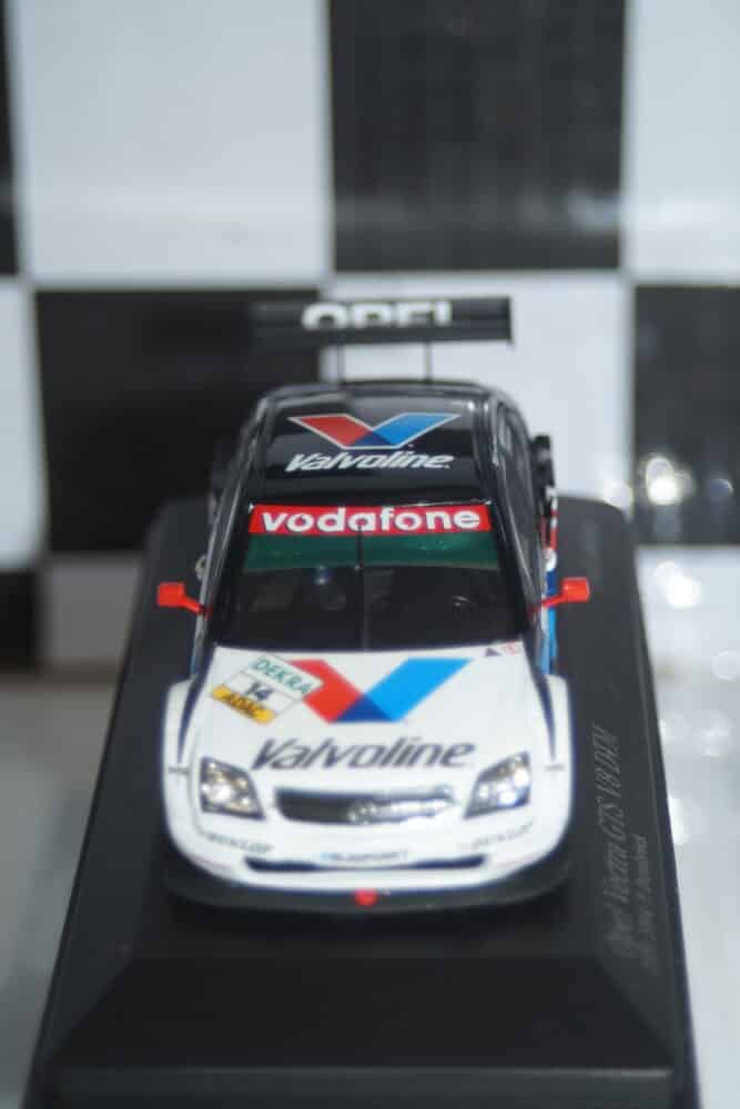 This Model Car is a collectors replica of an Opel Vectra GTS V8 DTM 2004 driven by P.Dumbreck,OPC Team Phoenix.This Manufacturer of this Diecast metal Model Car is Minichamps and the size is 1/43rd Scale. The Product No is 400 044414 and is a limited edition.