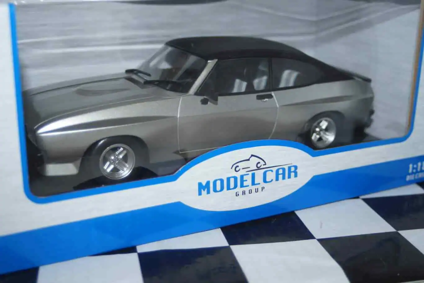 This Model Car is a collectors replica of an Ford Capri MK2 X-Pack in Silver/Black