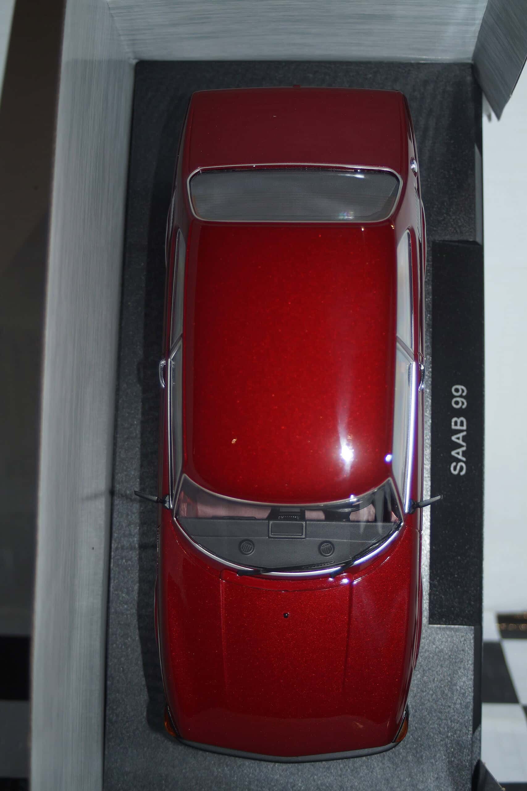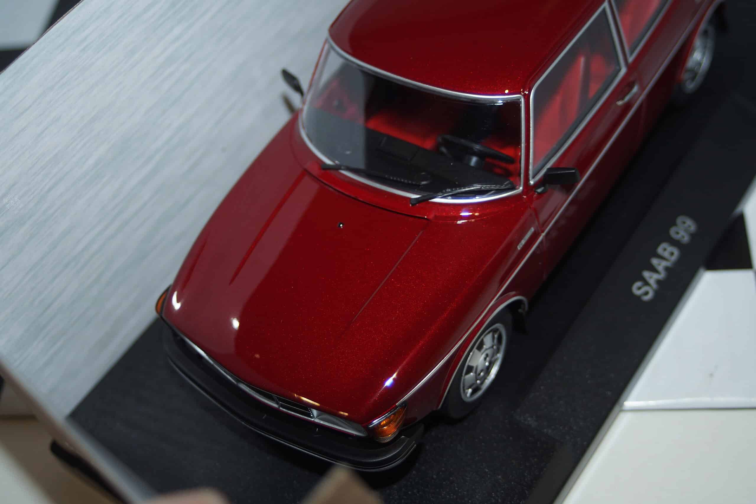This Model Car is a collectors replica of an SAAB 99 in metallic dark red