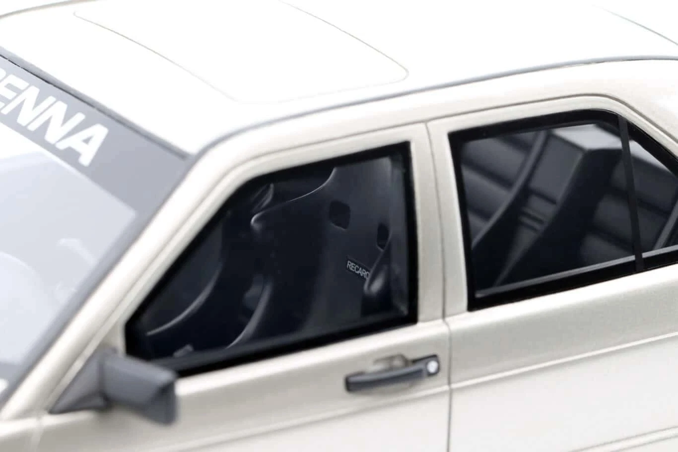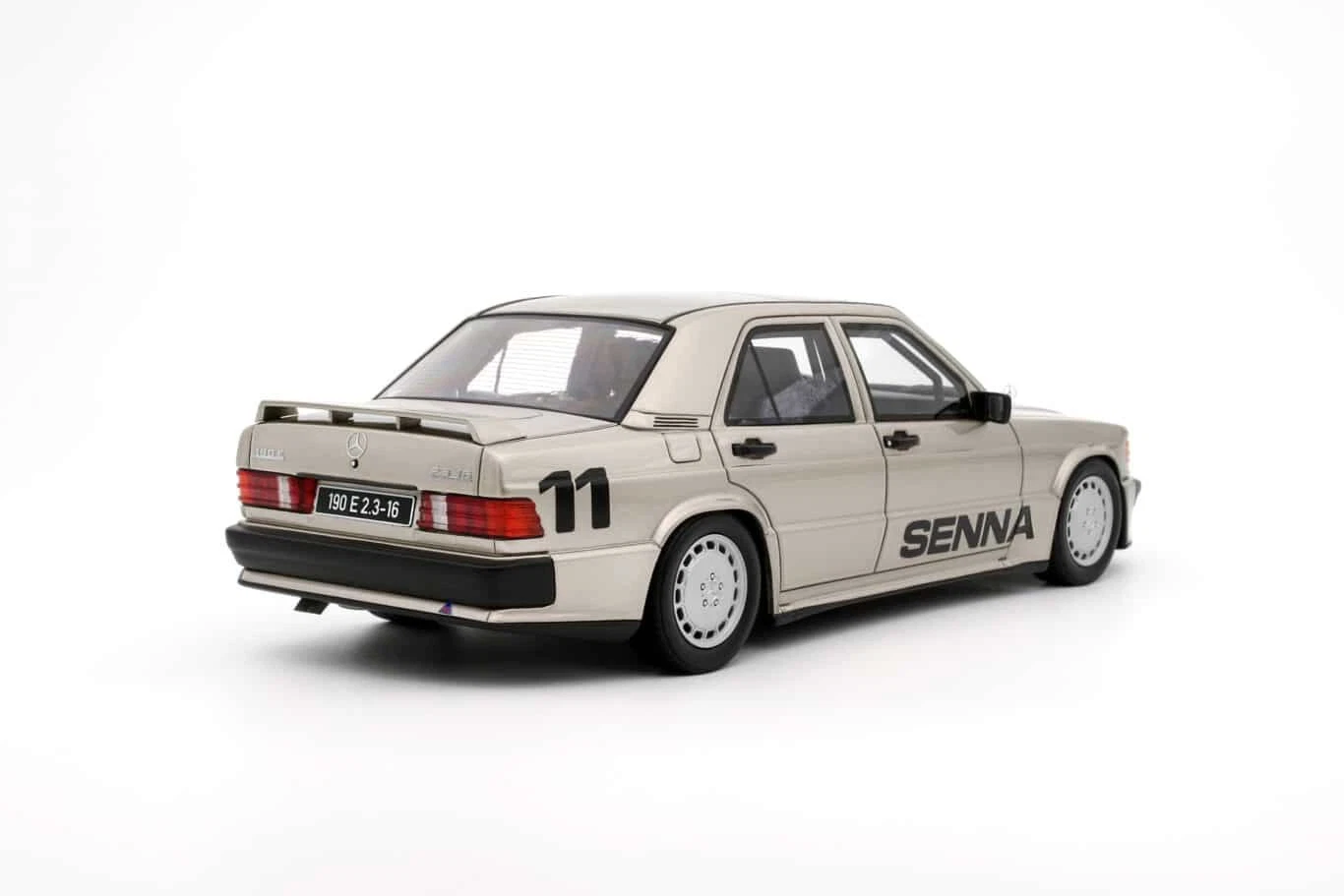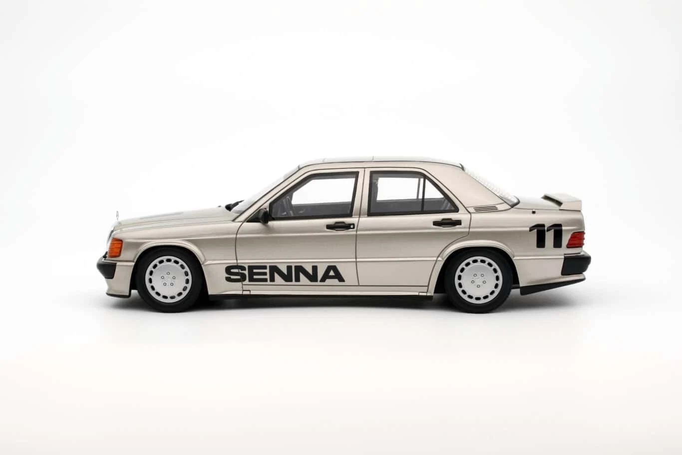 This Model Car is a collectors replica of a Mercedes Benz W201 190e 2.3 in Silver.Driven by A.SENNA in the Nurburgring Cup 1