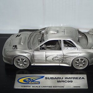 This Model Car is a collectors replica of a Subaru Impreza WRC 99 PEWTER Burns/Kankunen/Thiry