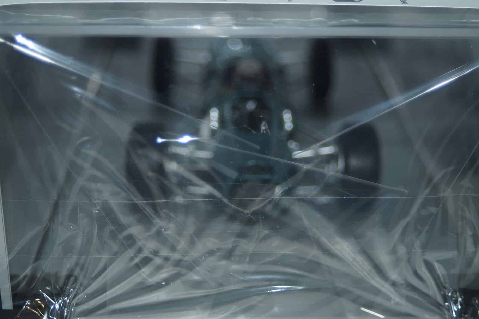 This model Car comes on a black plinth in a acryllic cover/case with a printed outer card