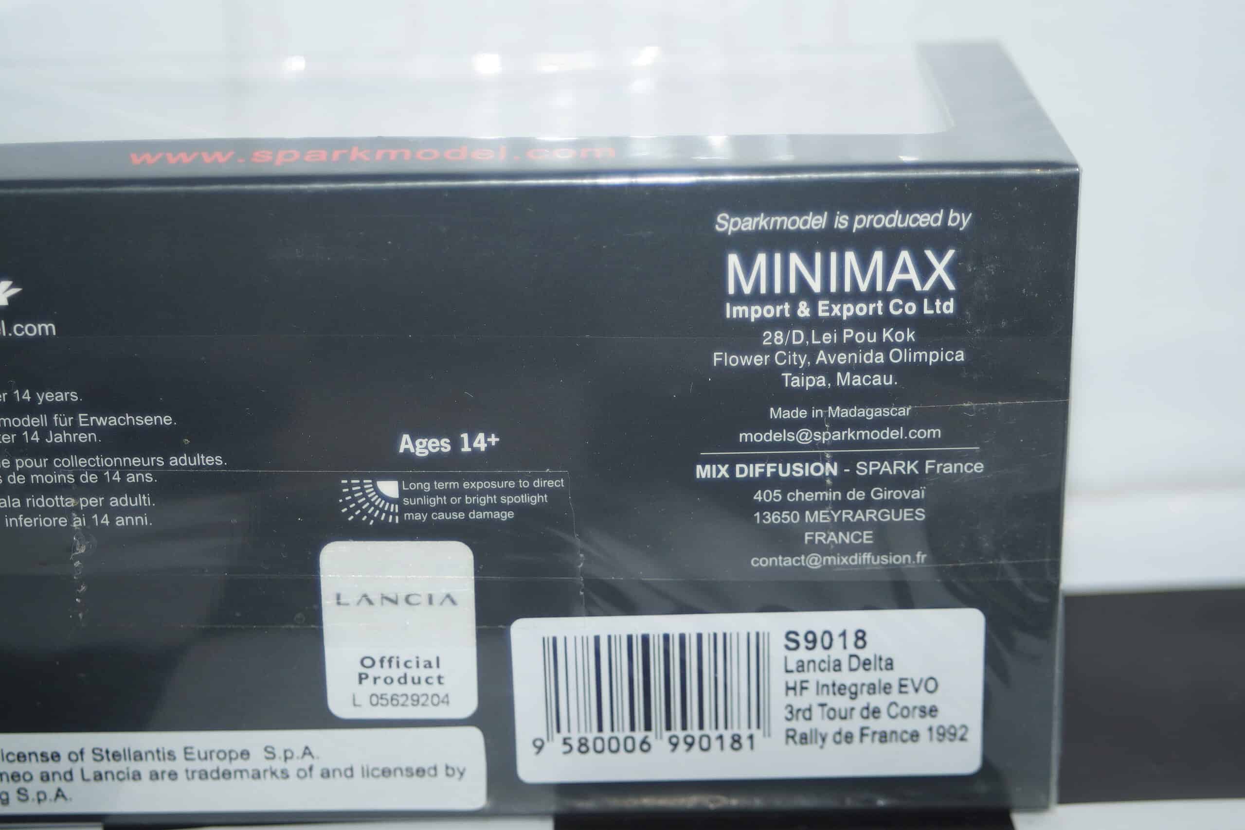 Spark Lancia Delta HF Integale EVO 3rd Tour De Corse France 1992 S9018