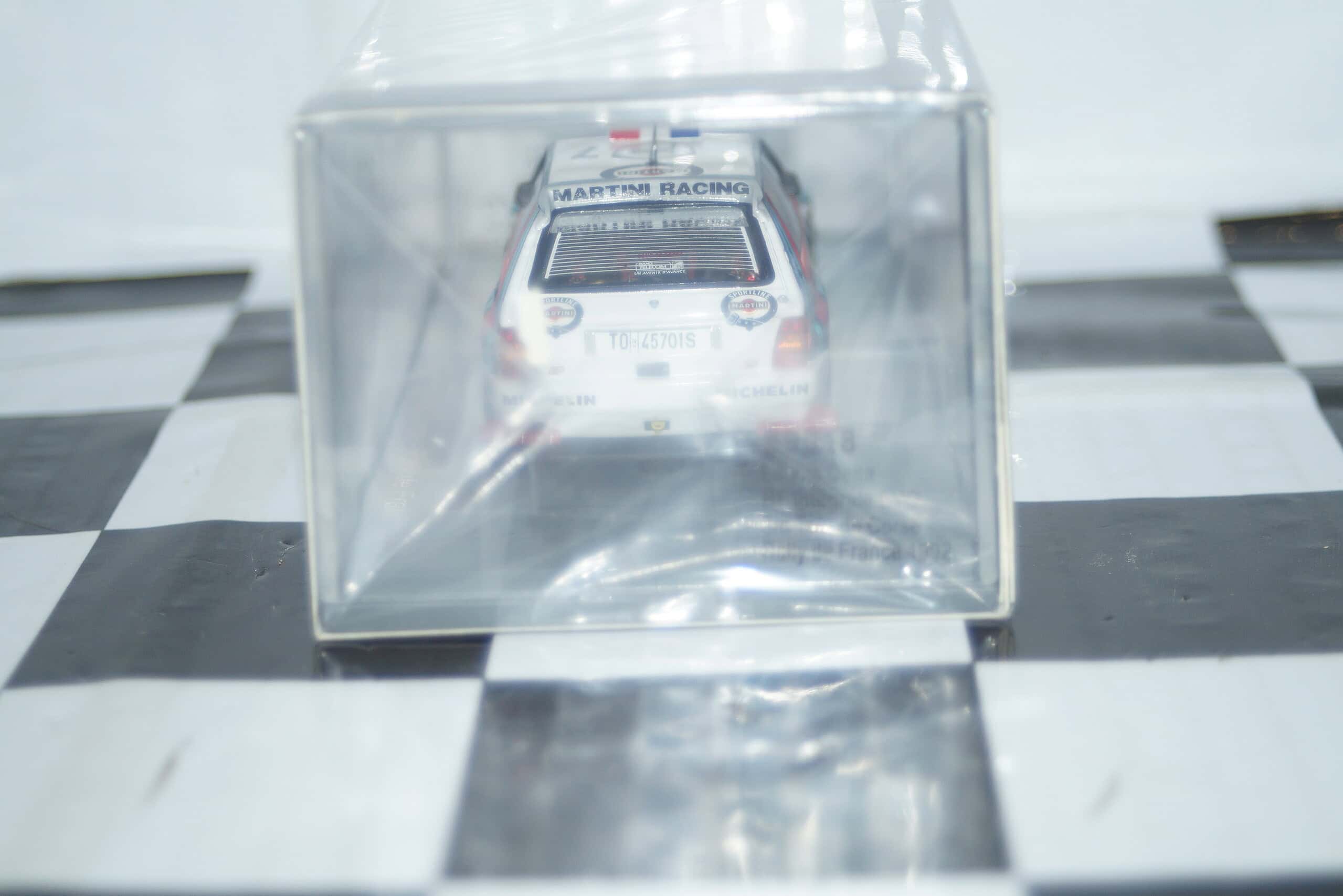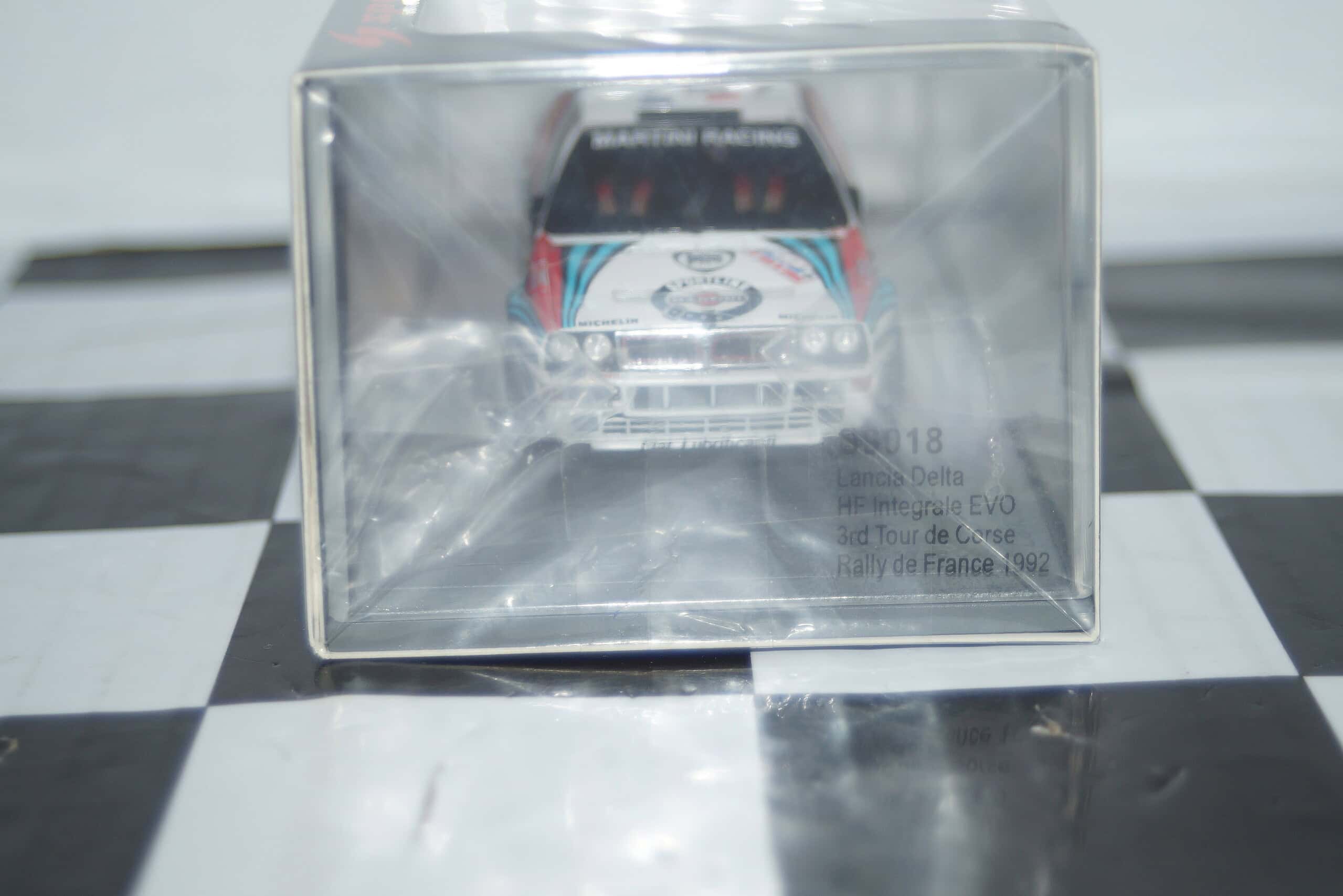 This Model Car is a collectors replica of a Lancia Delta HF Integale EVO 3rd Tour De Corse Rally de France 1992 #7 and driven by P.Bugalski and D.Giraudet