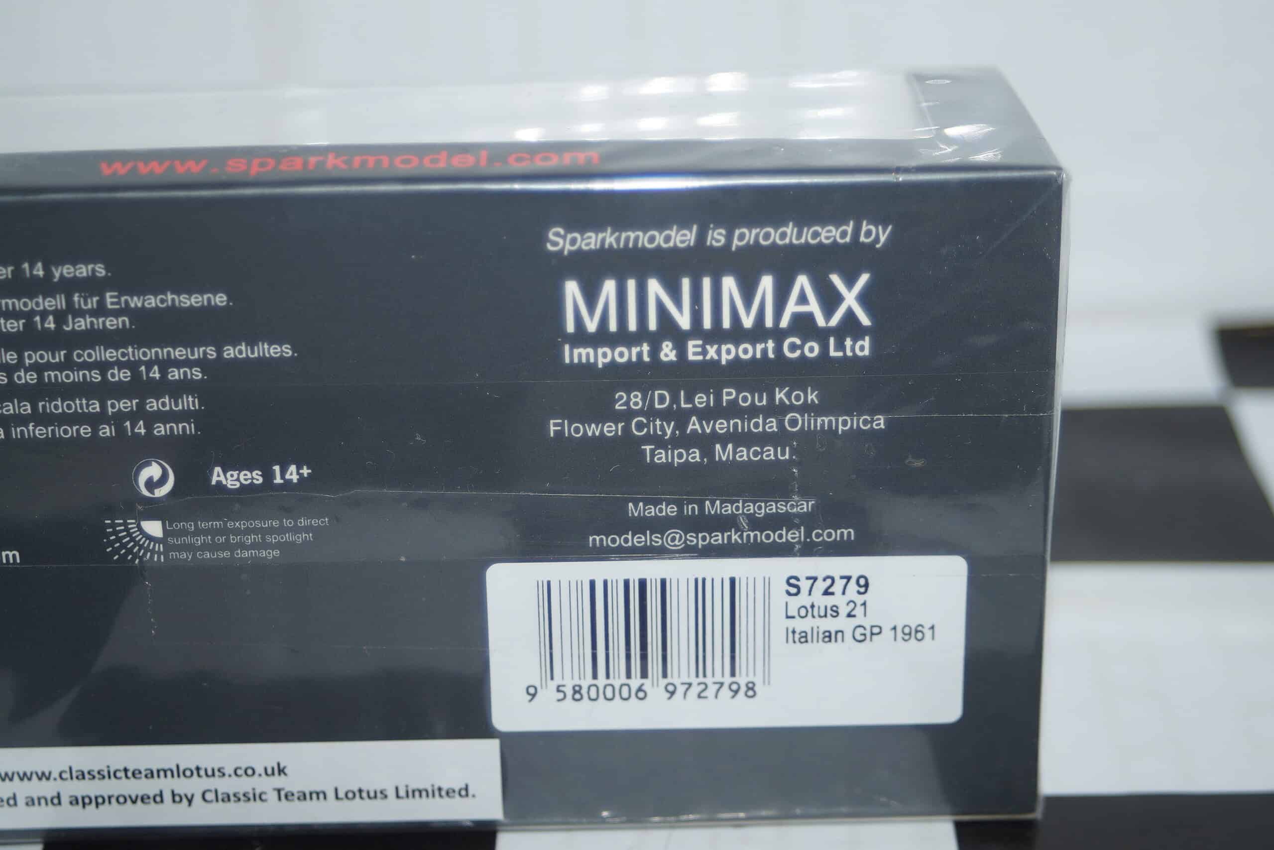 Spark Lotus 21 Italian GP 1961 STIRLING MOSS 1:43 Resin S7279