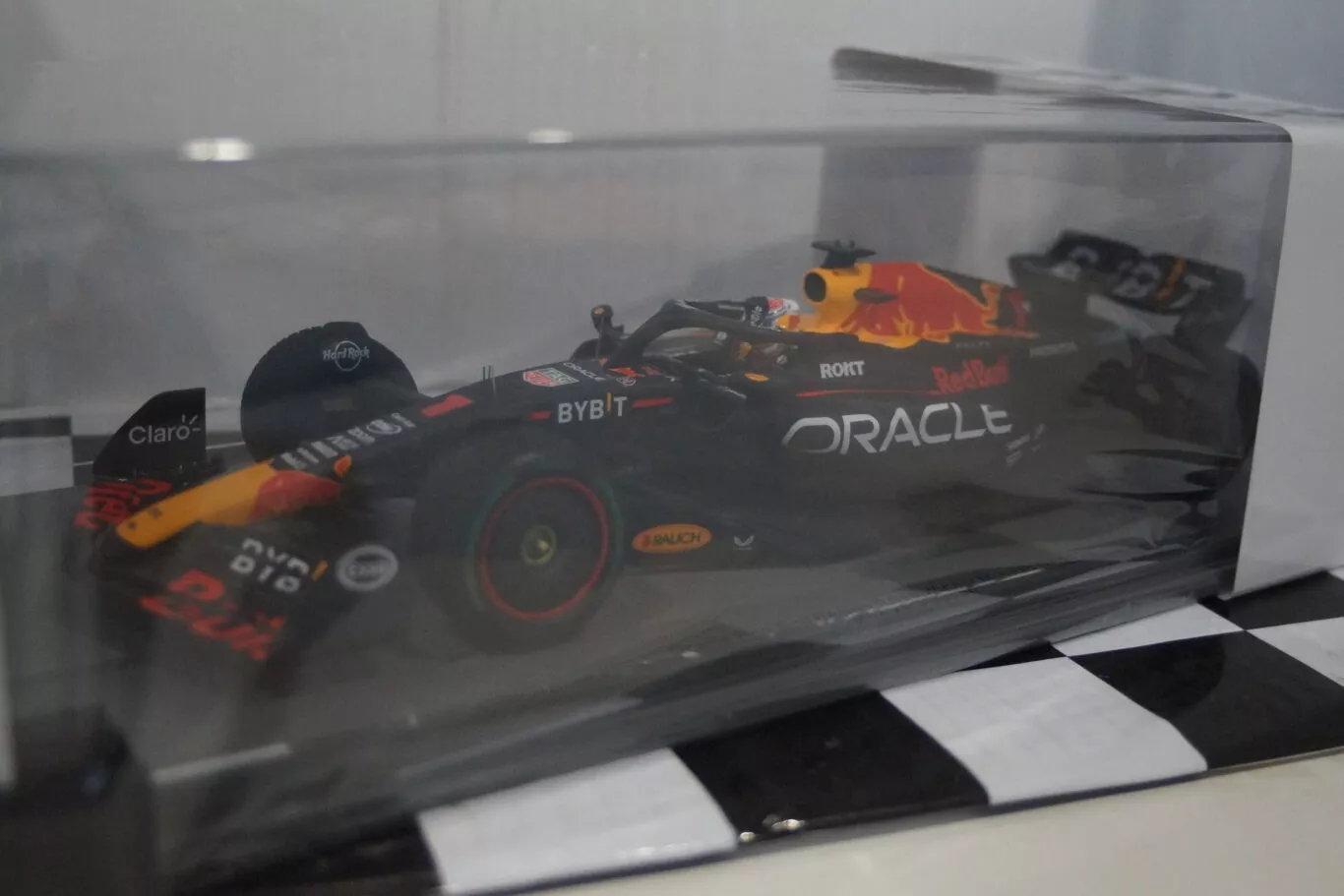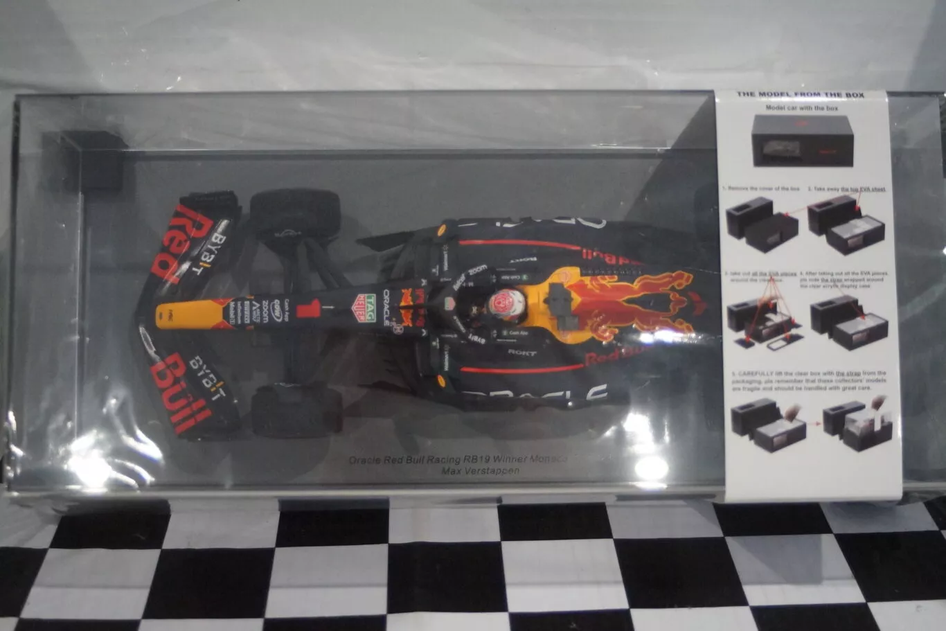 This Model Car is a collectors replica of an Oracle Red Bull Racing RB19 driven in the Monaco GP 2023 by Max Verstappen