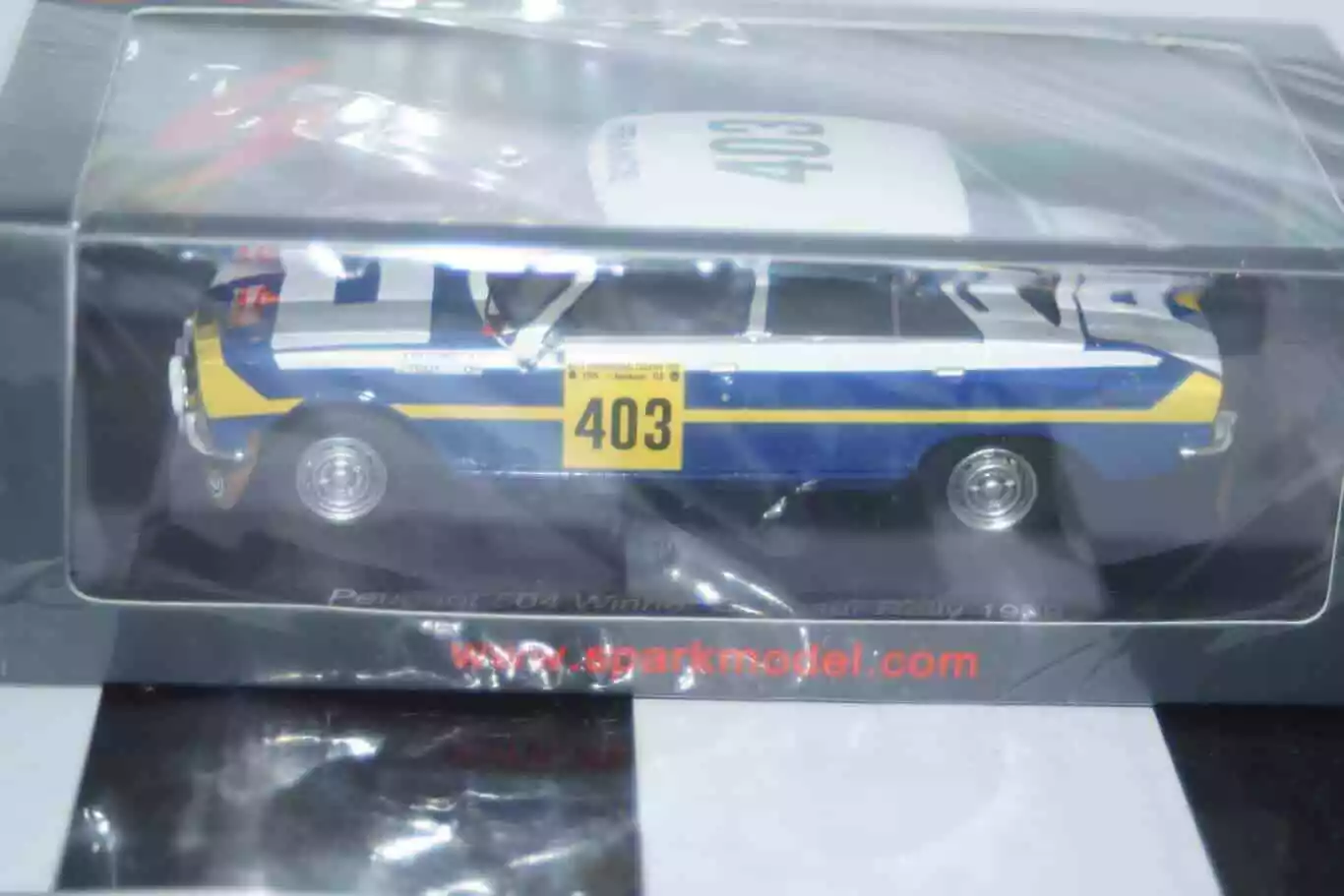 This Model Car is a collectors replica of a Spark Peugeot 504 Winner Codasur Rally #403 1979, Driven by J.Guichet / J.Todt