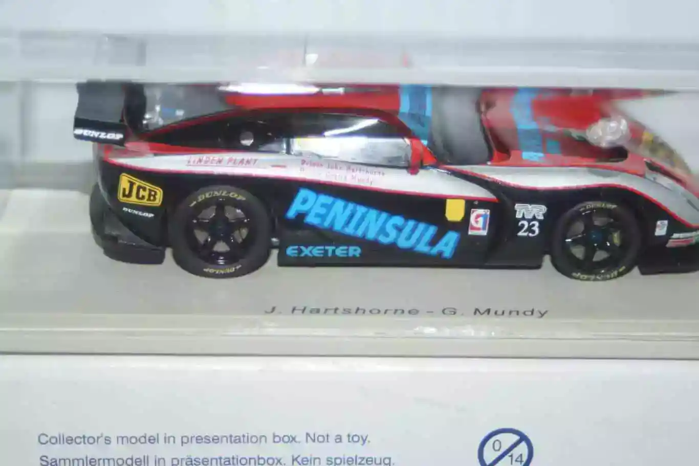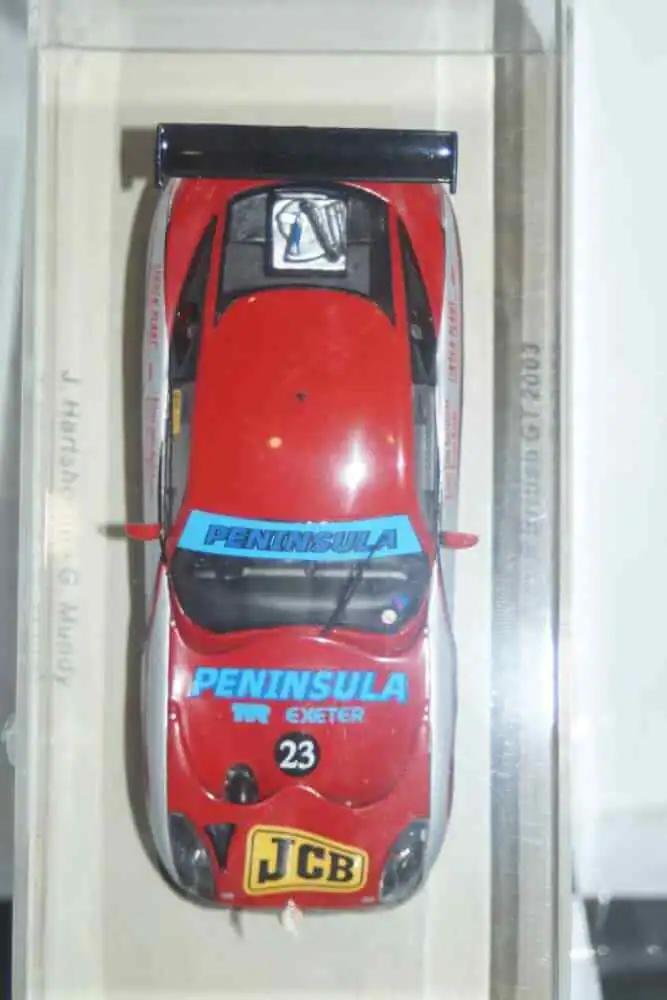 This Model Car is a collectors replica of a TVR TUSCAN R Peninsula #23 BRITISH GT 2003 driven by J.HARTSHORNE / G.MUNDY