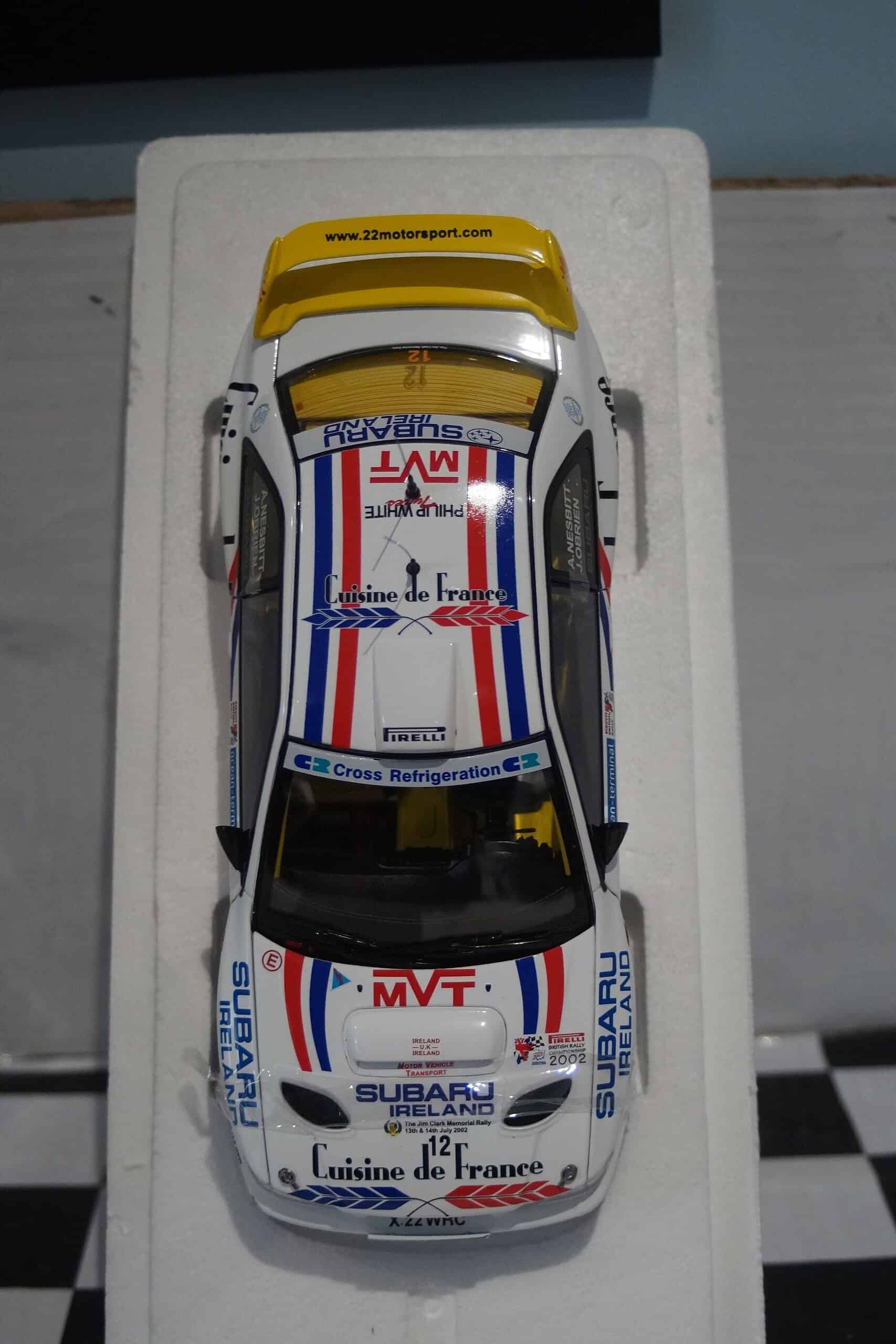 This Model Car is a collectors replica of Subaru Impreza S6 WRC ’00 #12 Winner Jim Clark Memorial Rally 2002, Driven by A.Nesbitt / R.J O’Brien