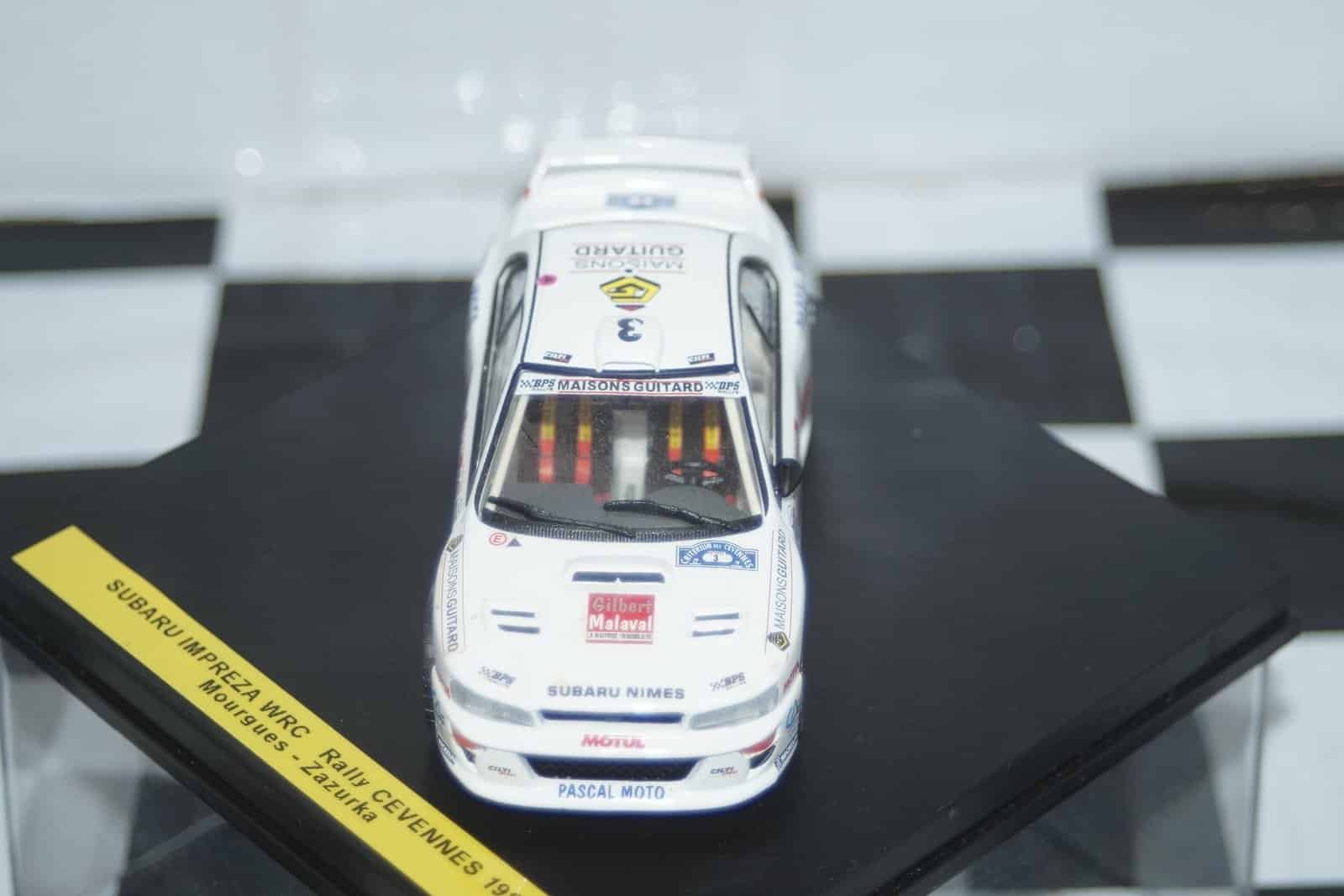 This Model Car is a collectors replica of a Subaru Impreza WRC CODE 3 Rally Cevannes 1999 #3 and driven by Mourgues / Zazurka