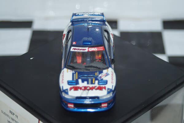 This Model Car is a collectors replica of a Subaru Impreza CODE 3 Vergokan Ypres Rally 99 and driven by P,Snijers #10