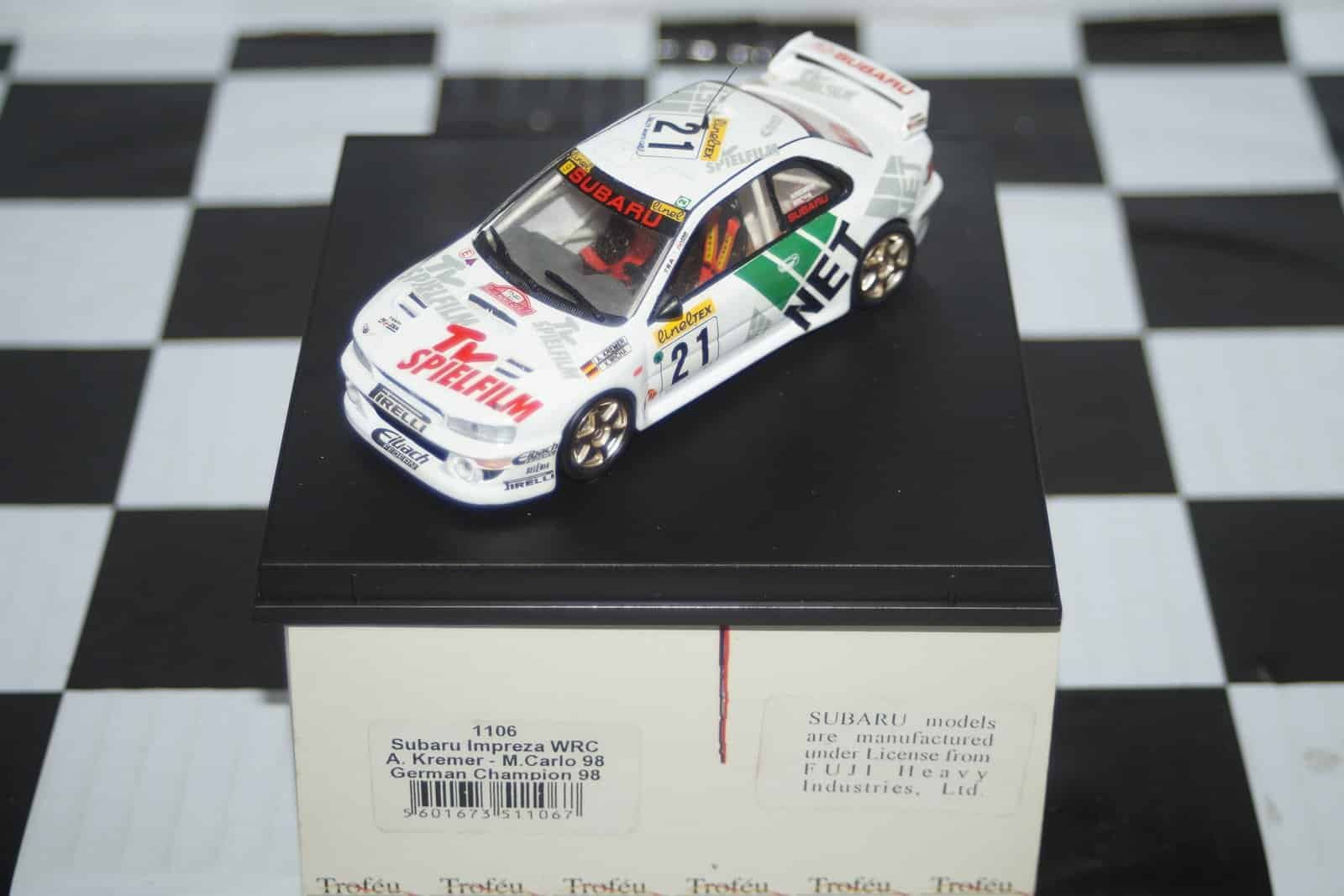 This Model Car is a collectors replica of a Subaru Impreza WRC M.Carlo 98,driven by German Champion A.Kremer