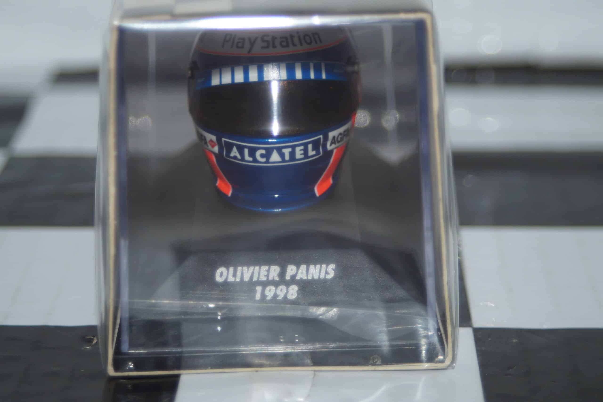 This Model Helmet is a collectors replica of an 1:8 Bleffe Helmet as used by Olivier Panis in 1998
