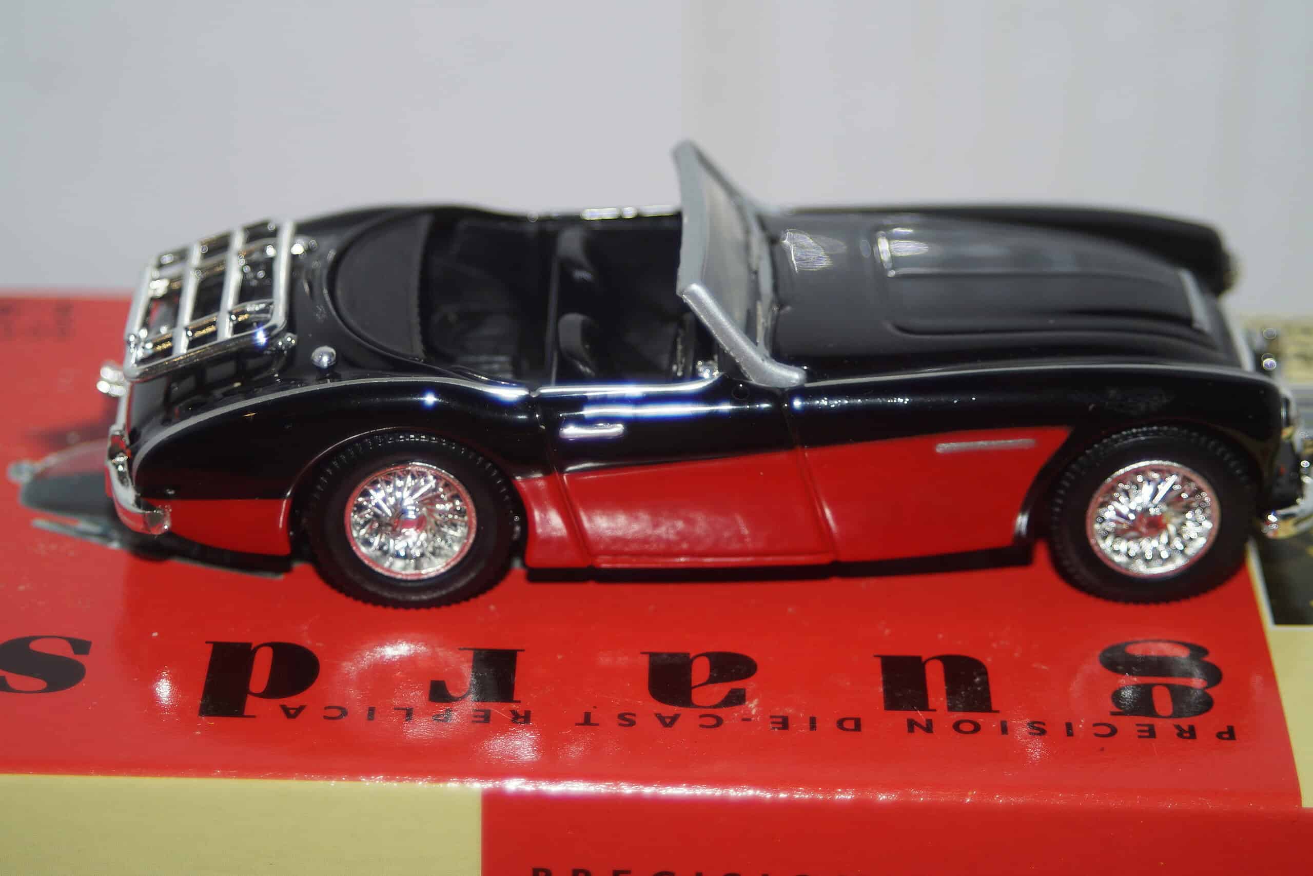 This Model Car is a collectors replica of a Vanguards Austin Healey in Black and Red