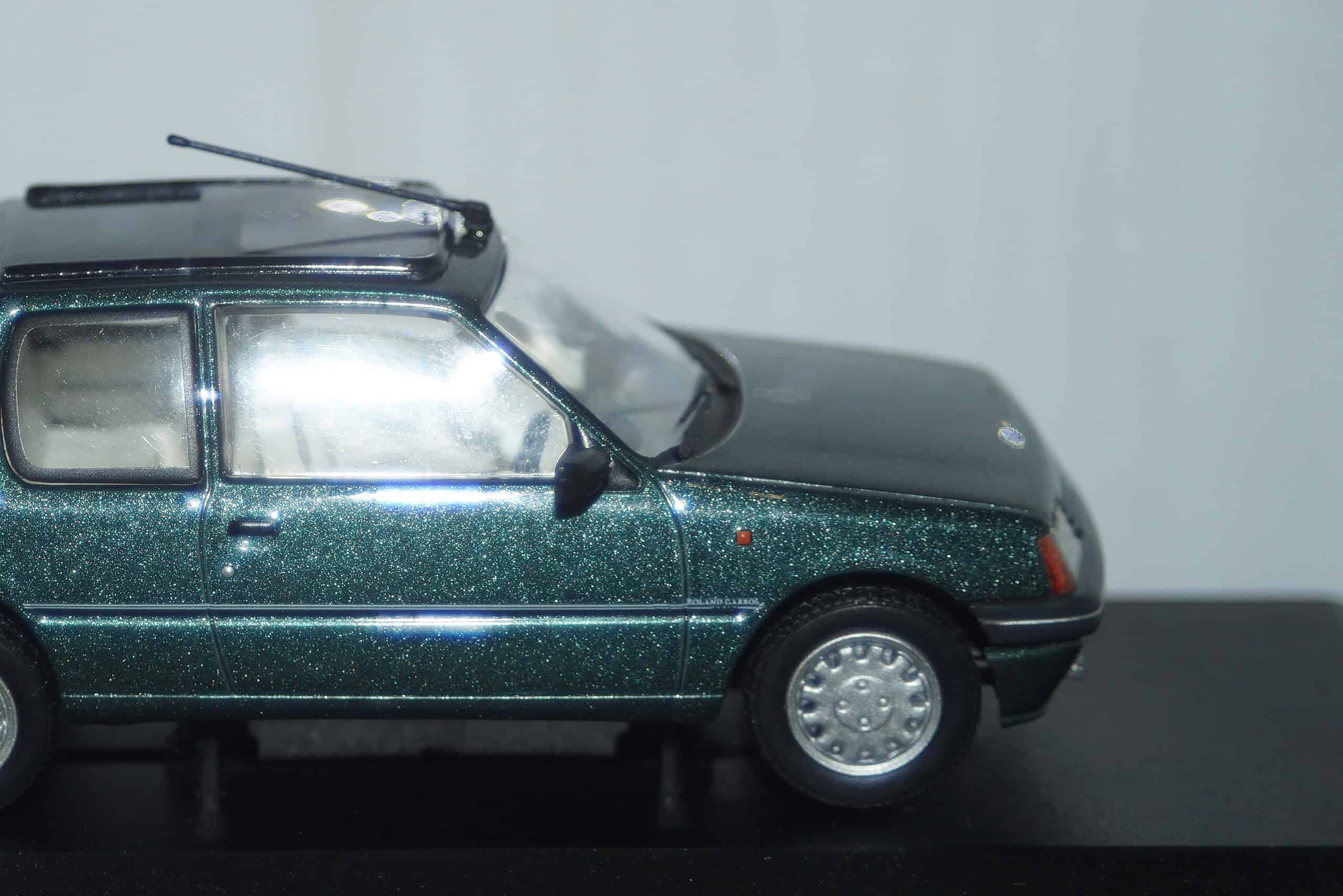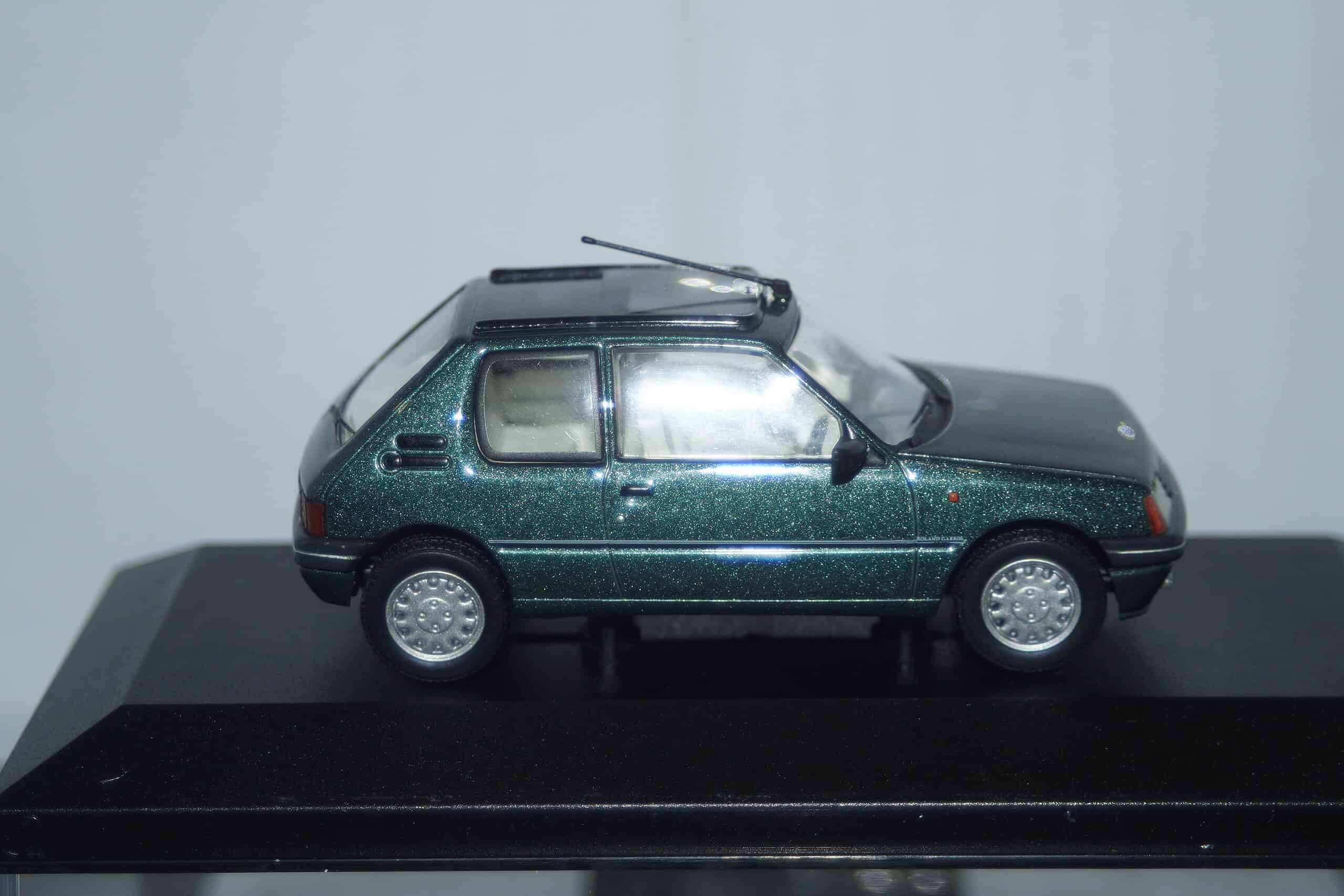This Model Car is a collectors replica of Peugeot 205 Roland Garros Green in RHD