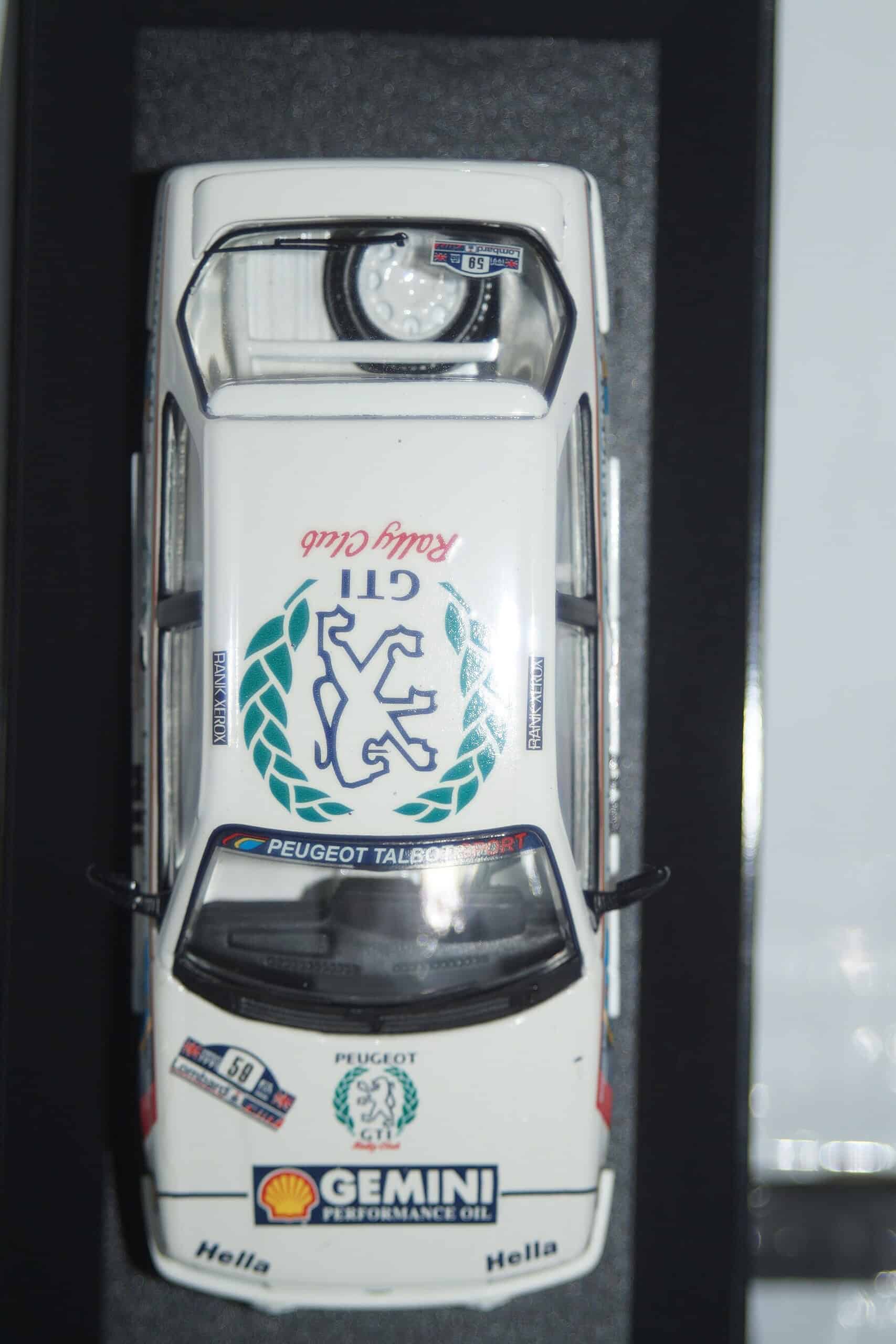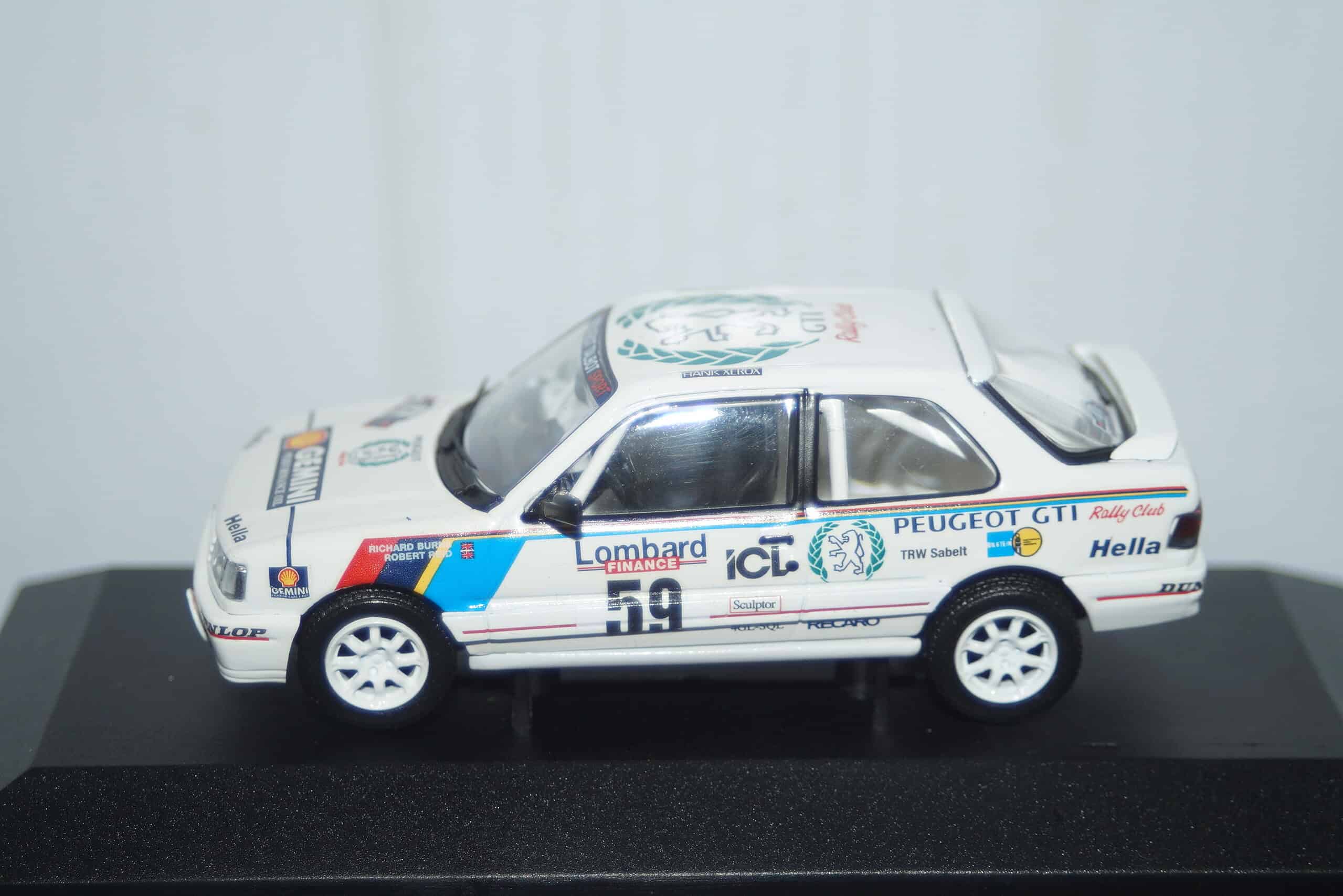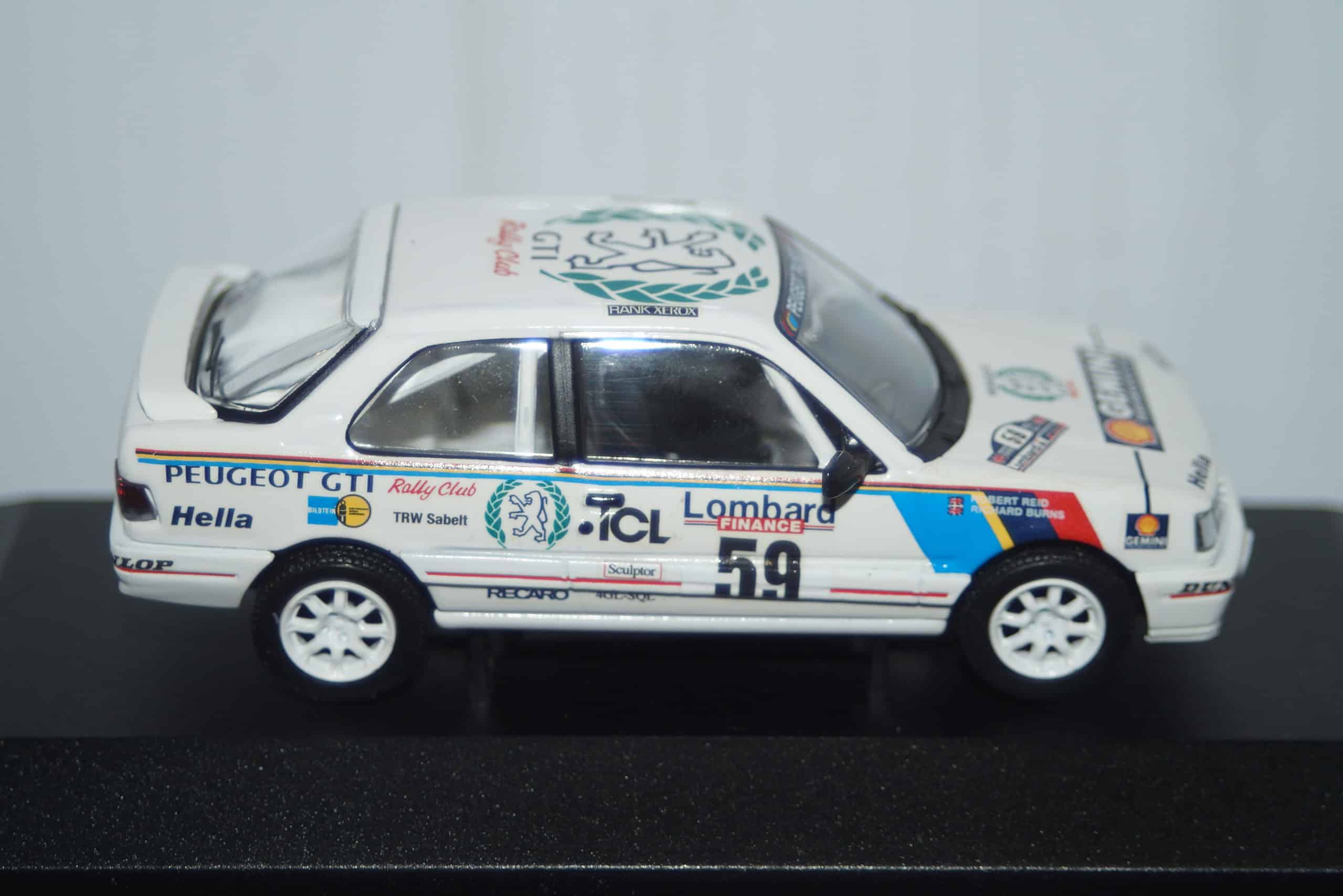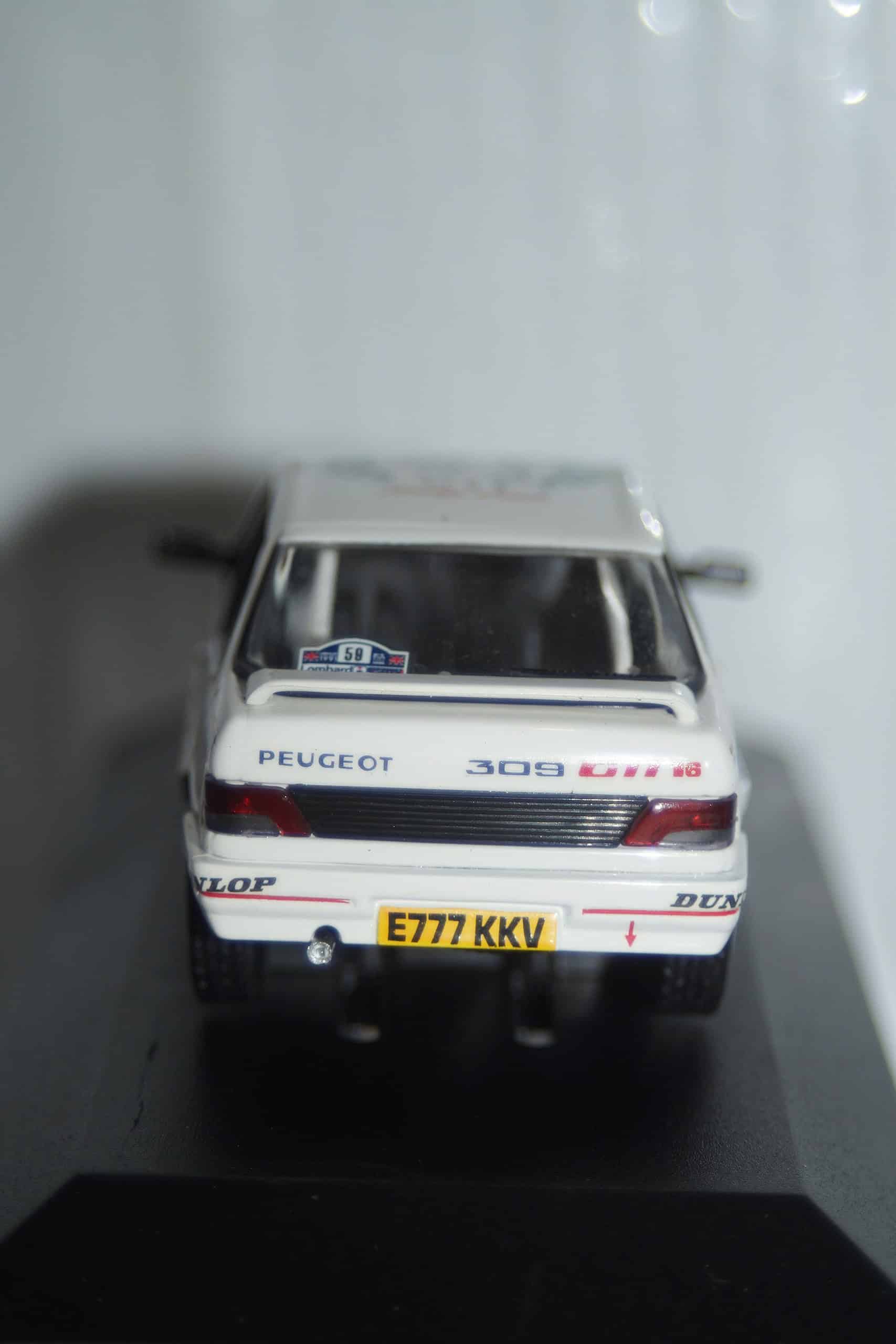 This Model Car is a collectors replica of Peugeot309 GTi 16V Lombard RAC Rally #59 and driven by R.Burns and R.Reid in 1991
