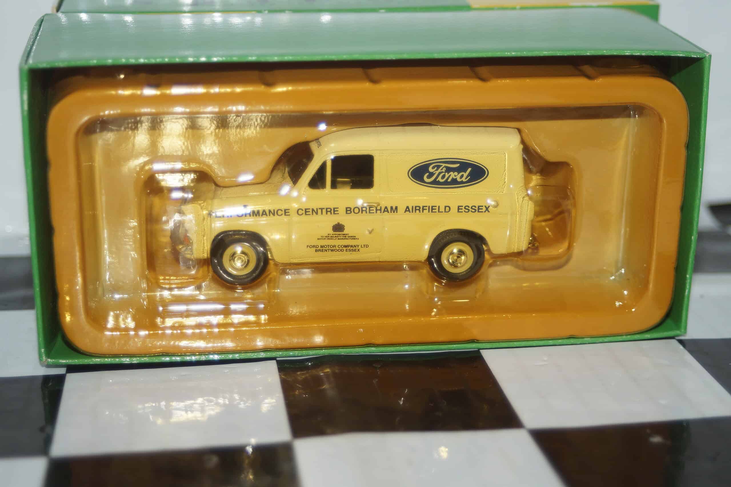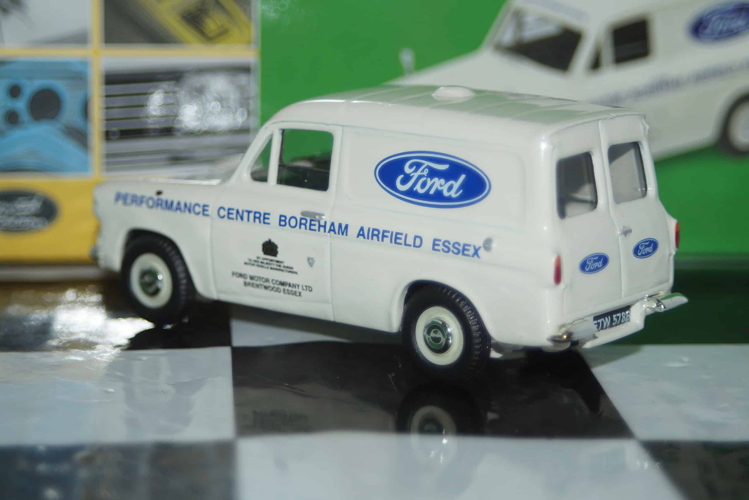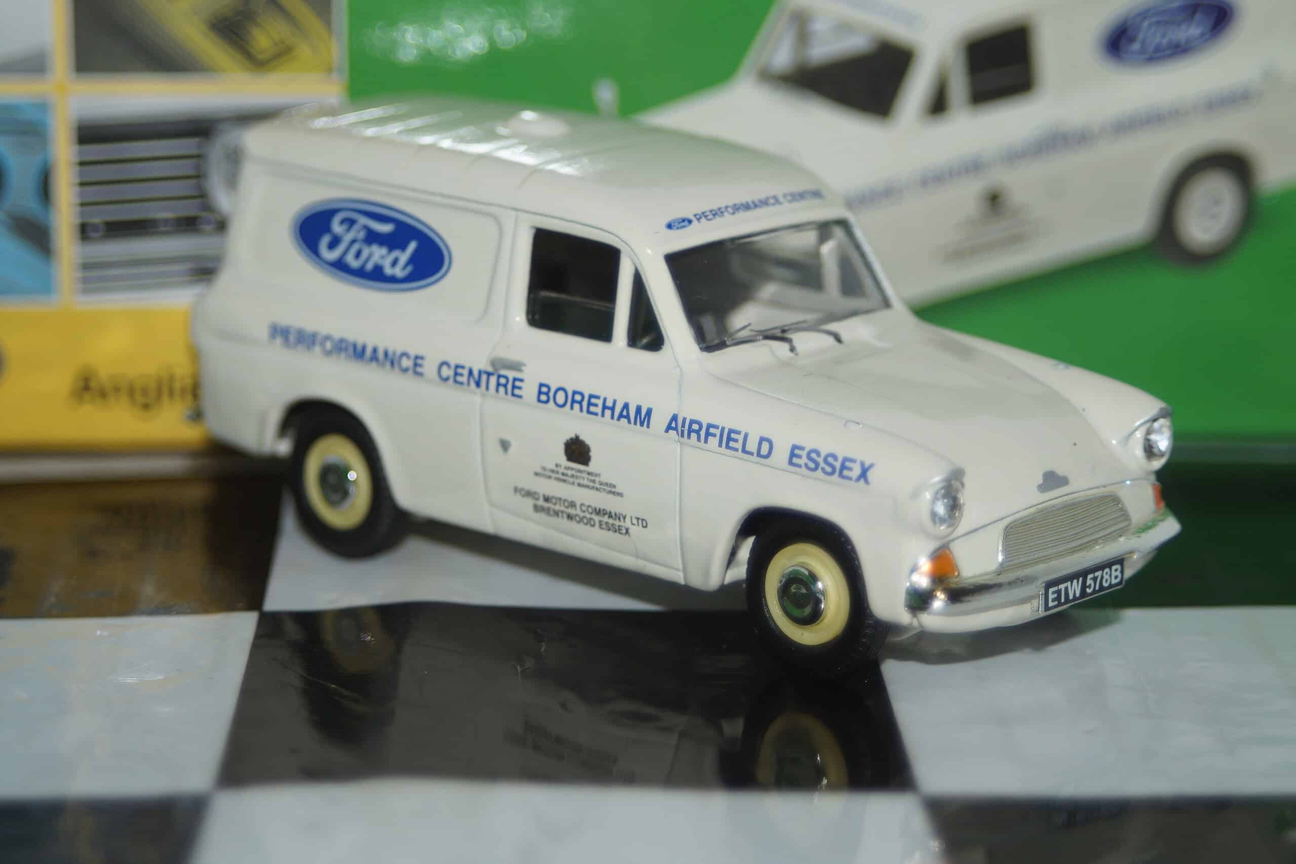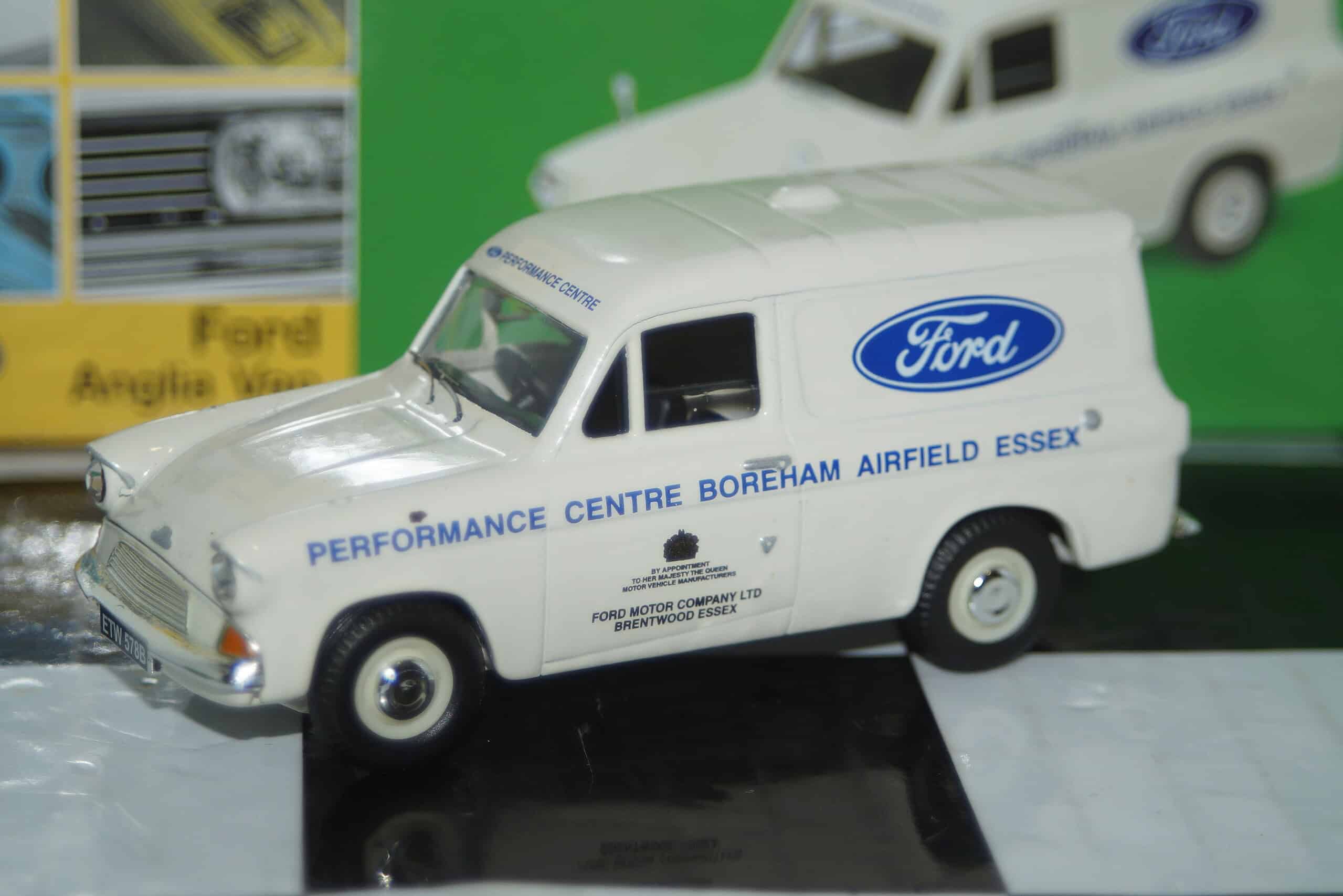This Model Car is a collectors replica of Ford Anglia Van Ford special products advertising Performance Centre Boreham Airfield Essex