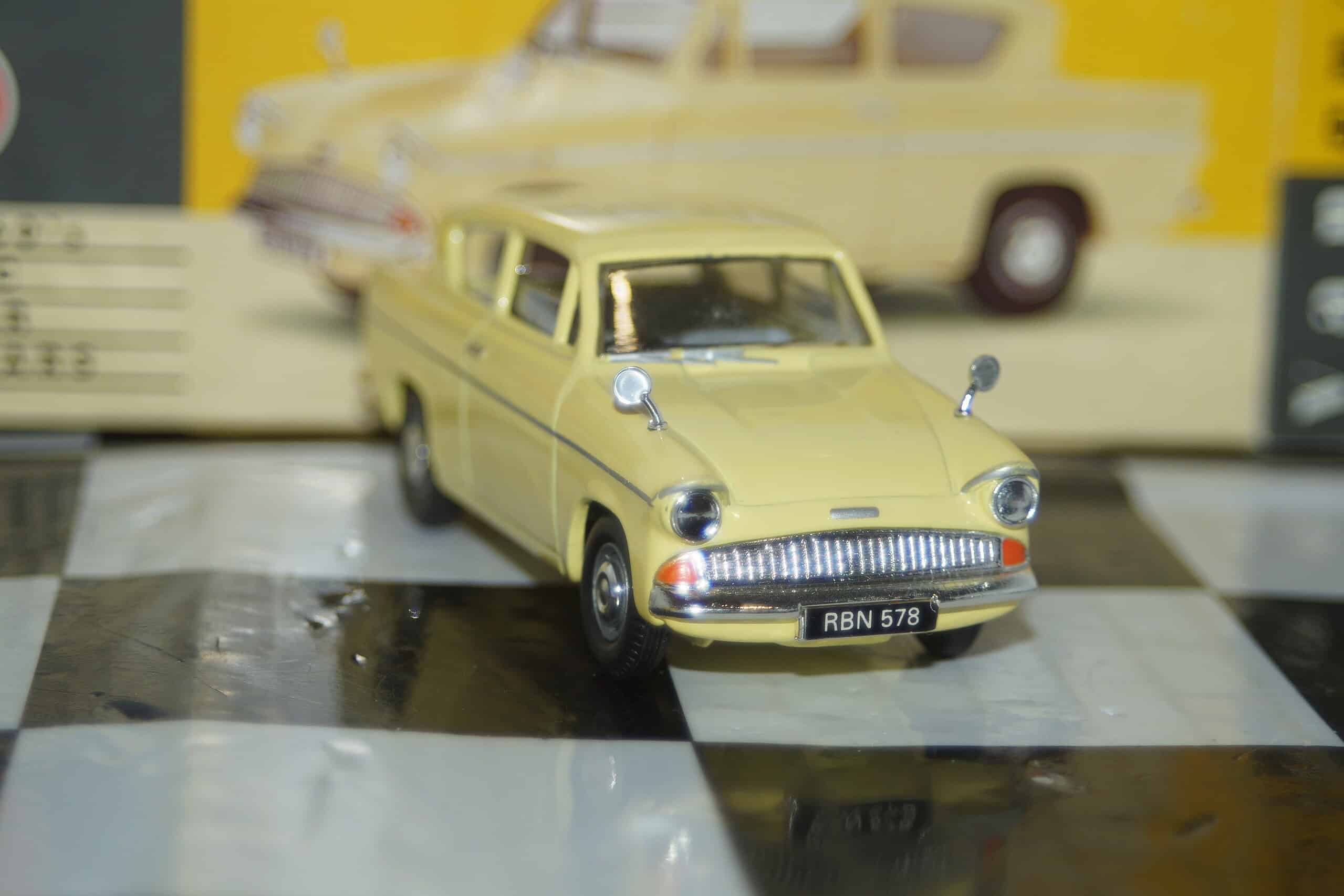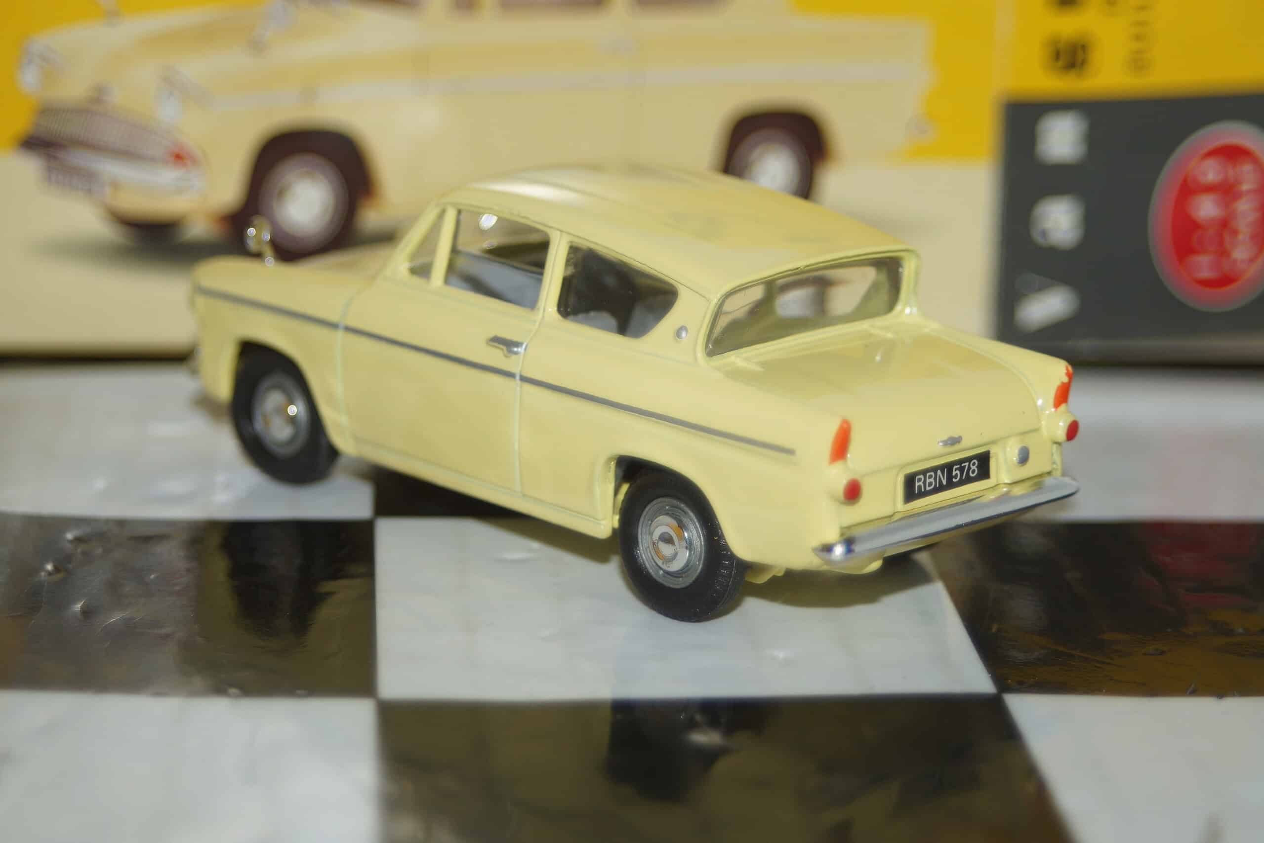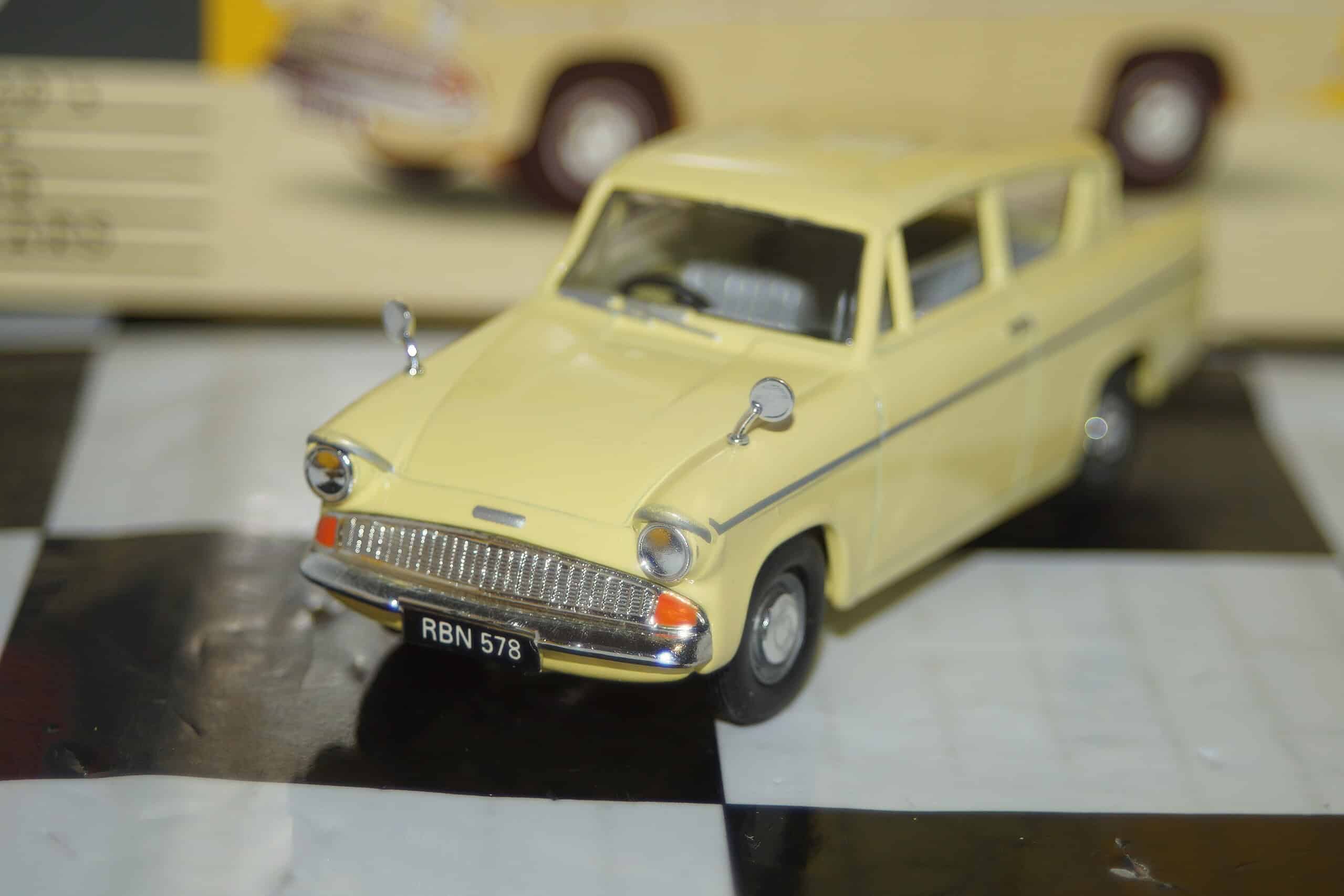 This Model Car is a collectors replica of Ford Anglia in Yellow