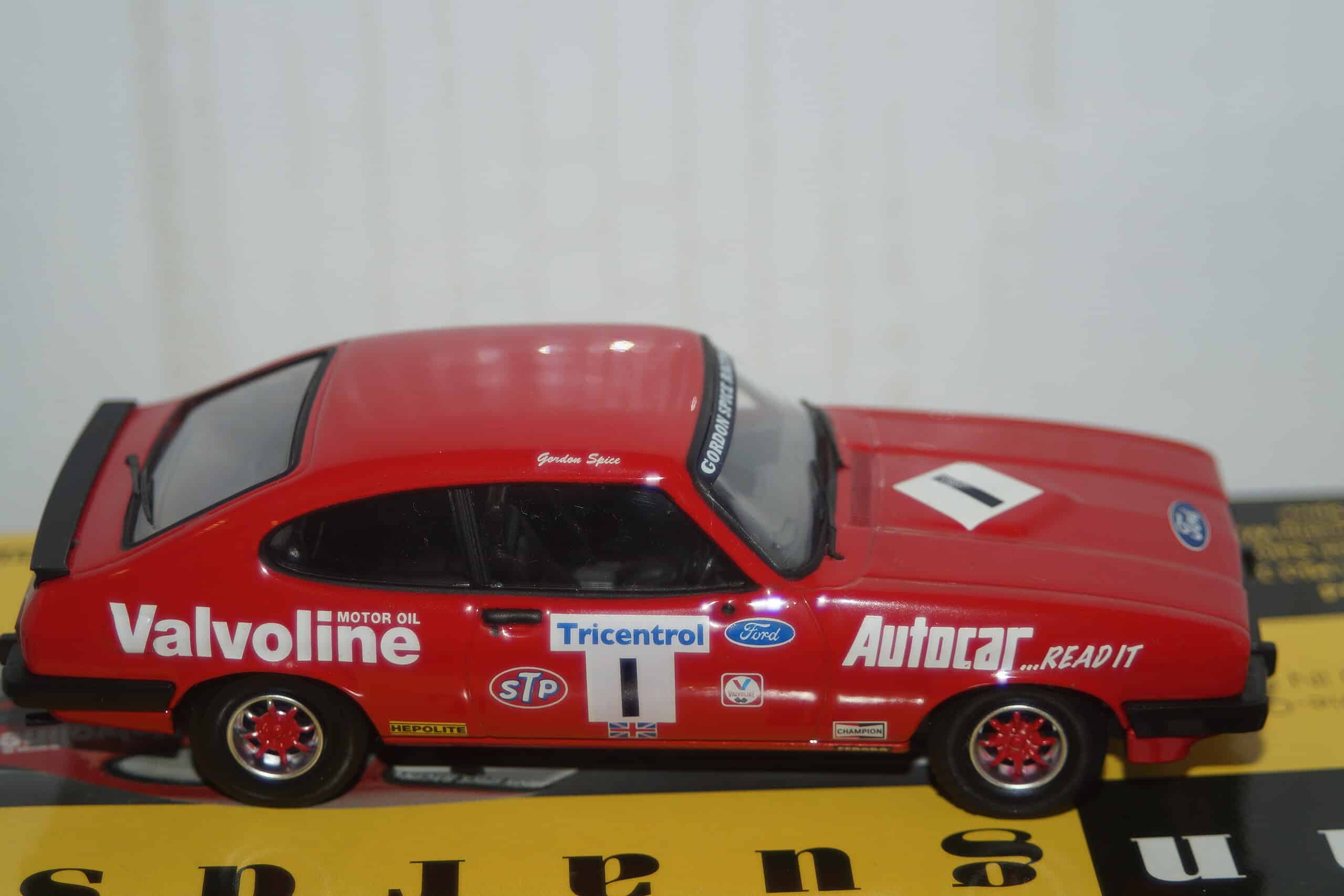 This Model Car is a collectors replica of a Ford Capri MK3 3.0s 1978 British Saloon Car Championship Winner 3 litre class and driven by G.Spice