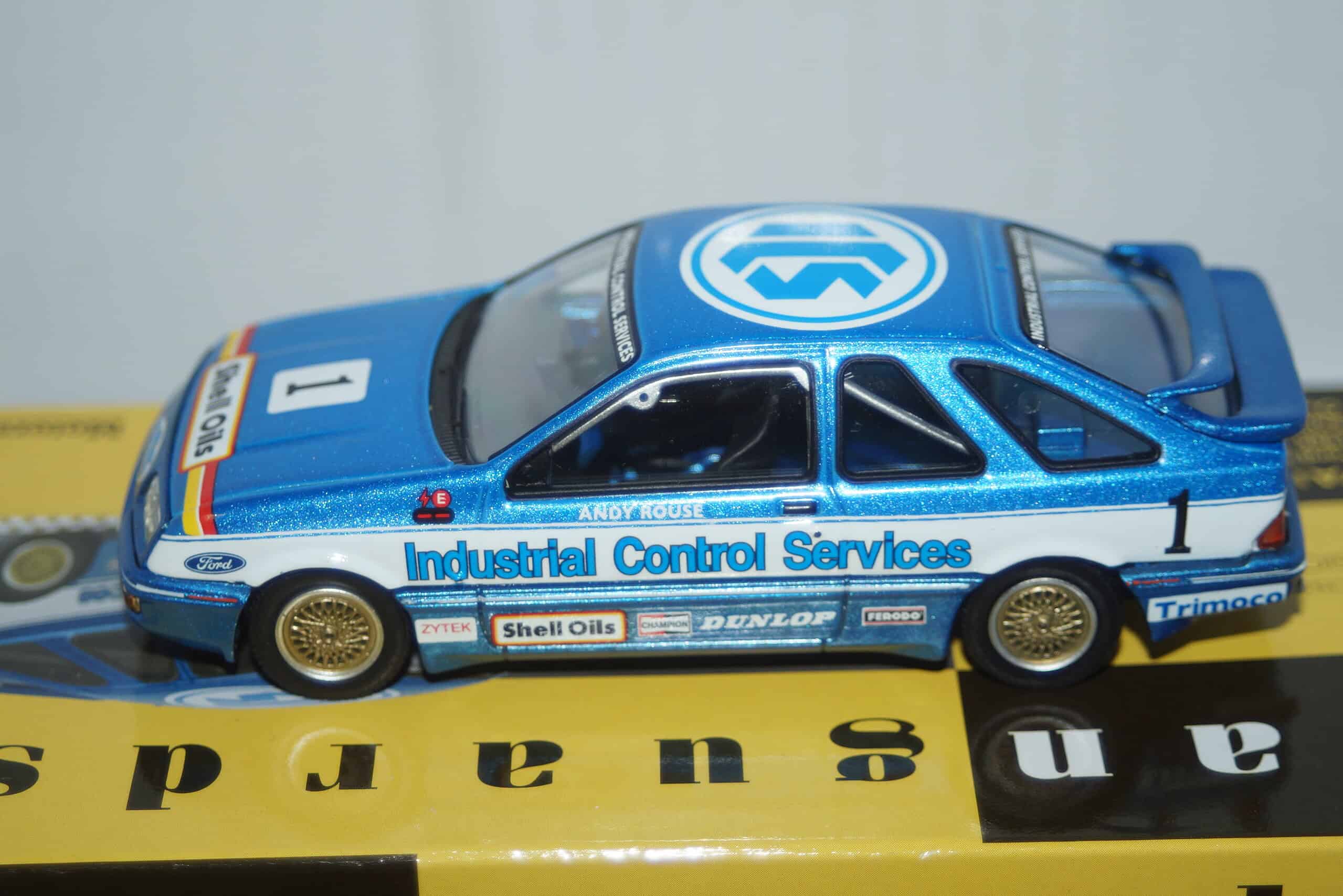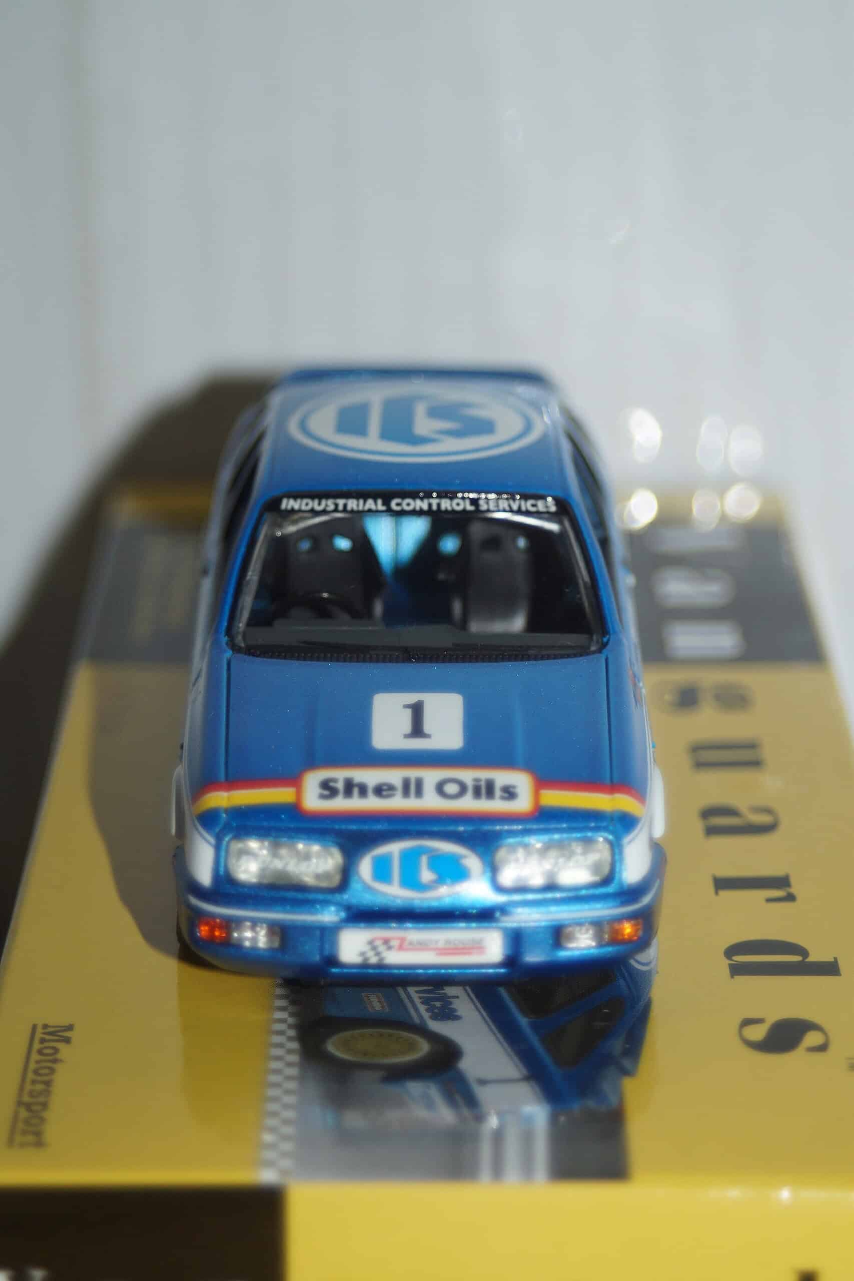 This Model Car is a collectors replica of a Ford Sierra XR4i Merkur 1985 Trimoco British Saloon Car Championship Overall Winner driven by A.Rouse