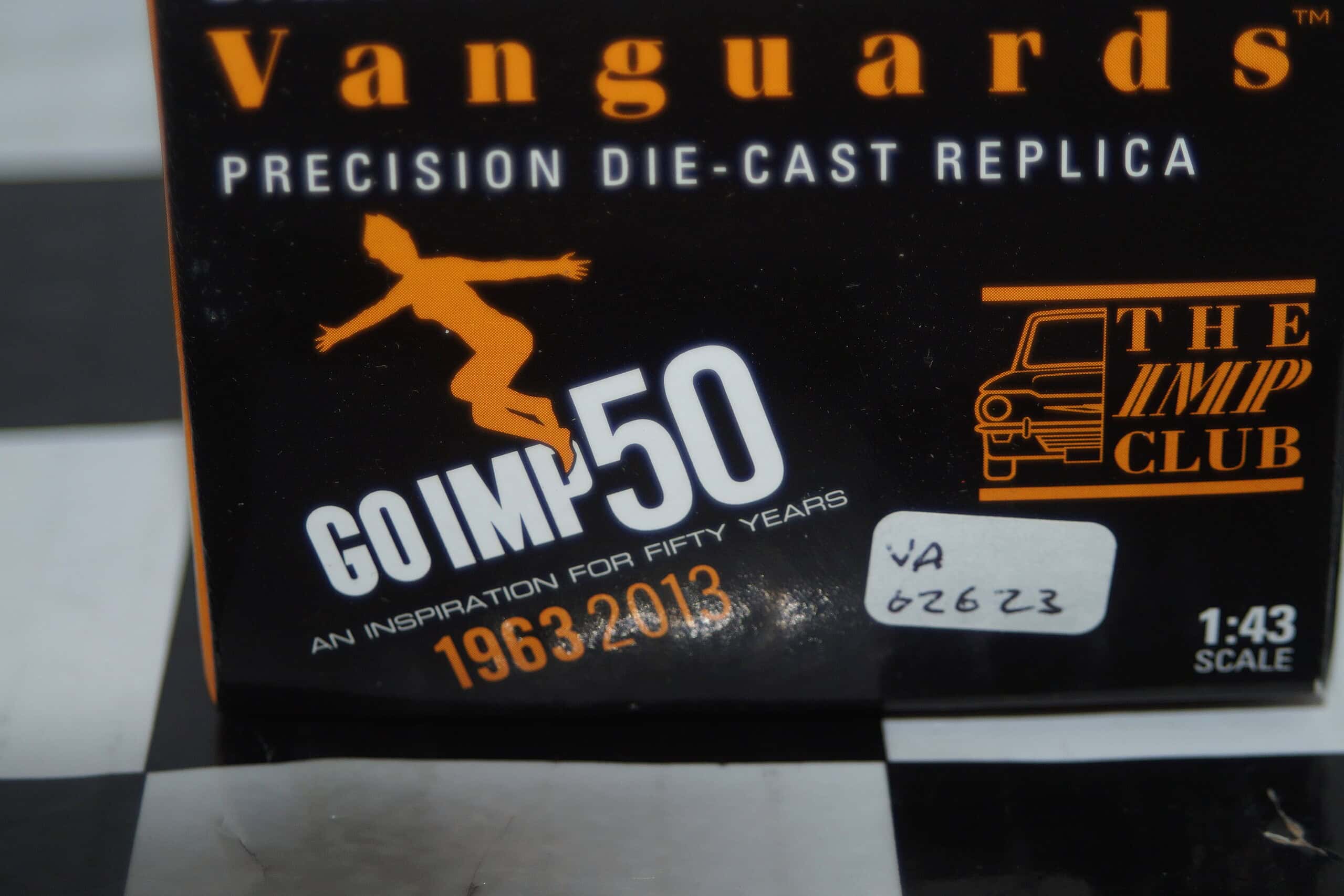 The Manufacturer of this Diecast metal Model car is Vanguards and the size is 1/43rd Scale. The Product No is VA02623 and is a limited edition produced of 1500 to commemorate fifty years 1963-2013 for the IMP CLUB